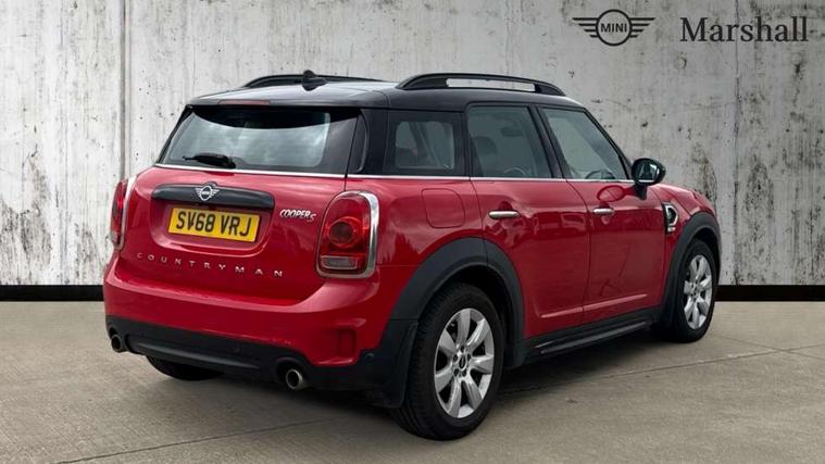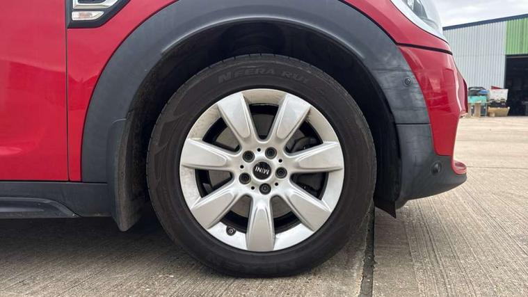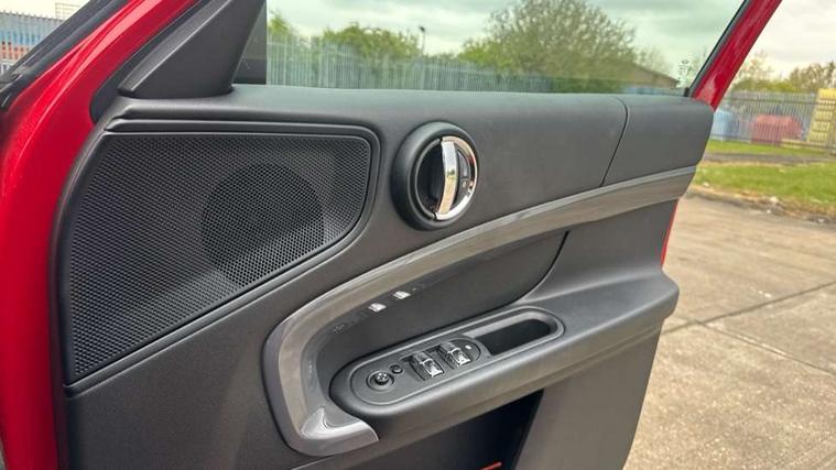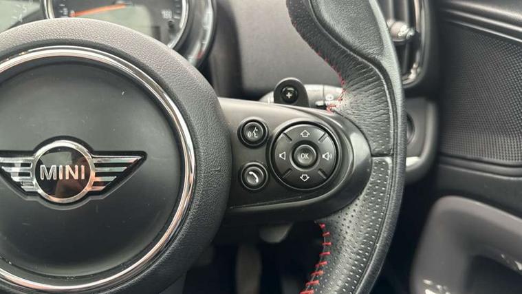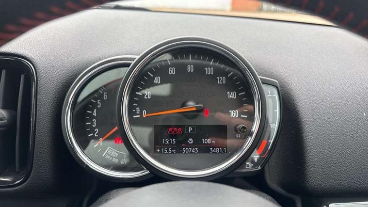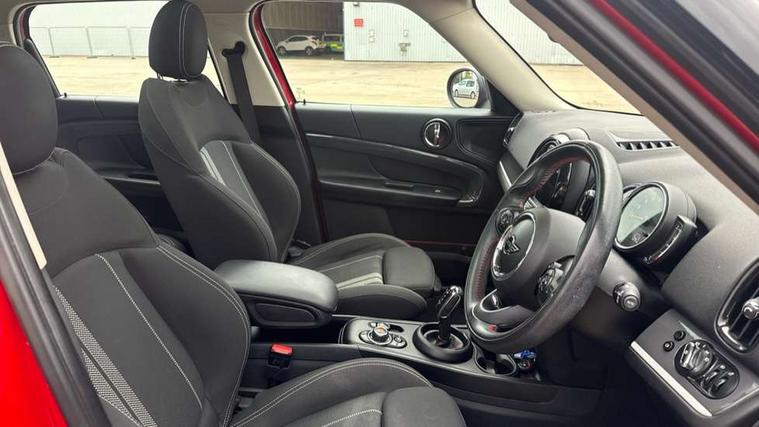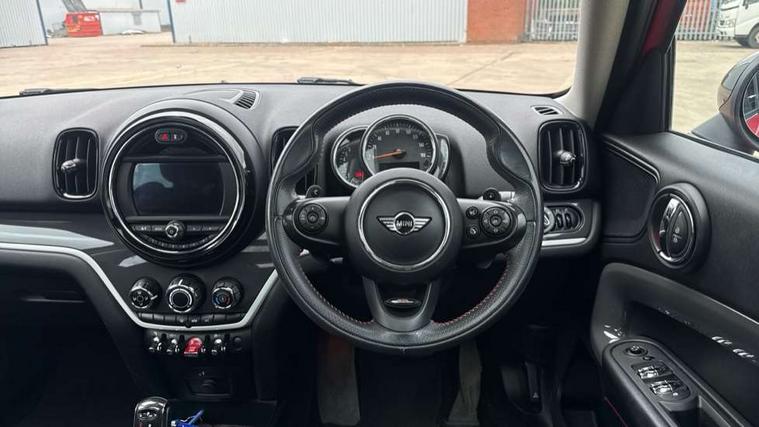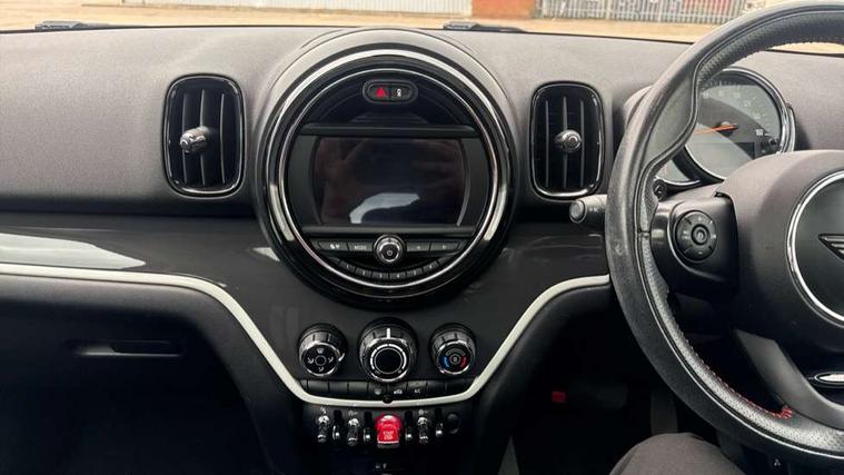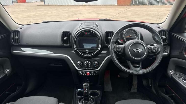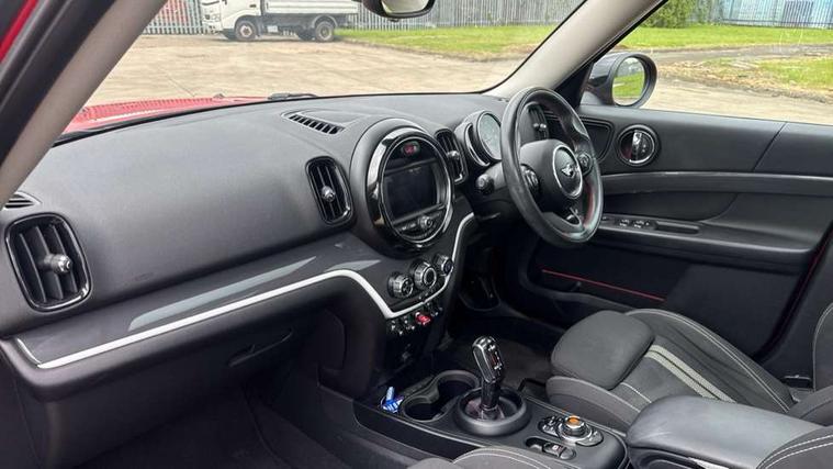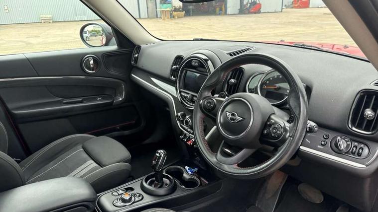 Apple CarPlay preparation, Brake pad wear indicator warning light, Central display with LED ring and 6.5" colour touch screen, Connected driver, DTC - Dynamic traction control, Exterior temperature gauge, Intelligent emergency call, MINI remote services, MINI TeleServices, Navigation system, On board computer, Personal Profile, Real time traffic information, Service interval indicator, Servotronic speed sensitive power steering, Electronic differential lock, Performance Control, Auxiliary input socket, DAB digital radio module, MP3 compatible radio/single CD player, Radio visual boost, Anti dazzle rear view mirror, Body colour scoop integrated into engine- compartment lid, Chrome door handles, Chrome headlight surround, Chrome plated radiator grille, Chrome side scuttle, Chrome window surround, Electric front windows + one touch + anti-pinch, Electrically adjustable door mirrors, Follow me home headlights, Green tinted glass, Heated door mirrors/heated windscreen washers, Heated rear window with automatic switch off, Metal look door sill finishers, Rain sensor including auto headlights activation, Rear wiper, Roof spoiler, Twin chrome exhaust tailpipes, White indicator lights, 12V power point front, 2 cupholders in front centre console, 4 lashing points to secure luggage, 40:20:40 split folding rear seats, Centre console storage box, Chrome interior door handles, Driver/passenger sunvisors, Front and rear headrests, Front interior light, Front passenger grab handle, Front seat backrest storage nets, Gearshift paddles, Heater with recirculation function, Height/reach adjust steering wheel, Isofix rear child seat preparation, Luggage compartment lighting, Multifunction steering wheel, Rear grab handles, Sensatec gearshift and handbrake, Sport front seats, Storage compartments in doors, Toolkit in luggage compartment, Interior lights pack - Countryman, MINI Excitement Pack - Countryman, 3 point automatic seatbelts, 3 point seatbelts on all rear seats, ABS, CBC - (Cornering brake control), Crash Sensor - activates hazard/interior lighting + unlocks doors, Driver and passenger airbags, Driver and passenger side airbags, DSC - Dynamic Stability Control, Electronic brake force distribution, Electronic parking brake, Front curtain airbags, Front passenger airbag deactivation, Fuel cut off safety device, Hill start assist, Pyrotechnically pre-tensioned front seatbelts, Tyre pressure warning, Automatic door locking, Keyless Start, Locking wheel bolts, RF remote control central locking, Second remote key, Thatcham category 1 alarm + immobiliser,