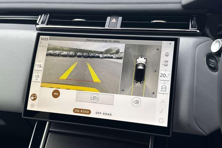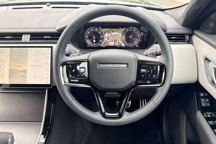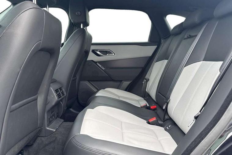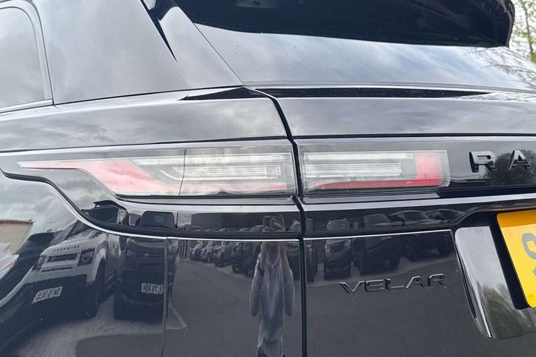3D surround camera includes forward traffic detection and vehicle guidance, Android Auto, Apple CarPlay, Blind spot assist, Bluetooth connectivity, Brake pad wear indicator warning light, Driver condition monitor, eCall emergency call system, Front and rear parking aid, InControl remote, Land Rover InControl apps, Lane keep assist, Pivi pro with connected navigation, Rear traffic monitor, Service indicator, Speed proportional electronic power assisted steering (EPAS), Traffic sign recognition with adaptive speed limiter, Trip computer, Voice control system, Wade Sensing, Wireless device charging, 8 speed automatic transmission, All terrain progress control, Coil suspension system, Open differential with torque vectoring by braking, Single speed transfer box, DAB radio, Steering wheel mounted controls, 3rd brake light, Acoustic laminated windscreen, Auto dimming interior rear view mirror, Auto high beam assist, Automatic headlamp levelling, Automatic headlights, Black roof rails, Body coloured bumpers, Boot protection plate, Electric windows with one touch open/close and anti trap, Flush deployable exterior door handles, Follow me home headlights, Heated rear window with timer, Heated washer jets, Heated windscreen, LED headlights with signature DRL, Metal front tread plates, Metal load space scuff plates, Power fold, auto-dimming, heated door mirrors with memory and approach lights, Rain sensor windscreen wipers, Rear animated directional indicators, Rear fog lights, Rear side wing doors, Rear wash/wipe, Tailgate/boot lid spoiler, Trailer stability assist, Velar badge, 14 way electrically adjustable front seats with driver's memory function, 3 seat bench in 2nd row, Ambient lighting, Bright metal pedals, Carpet mats, Driver/passenger sunvisors with illuminated vanity mirrors, Ebony morzine headlining, Electrically adjustable steering column, Heated steering wheel, Isofix system on outer rear seats, Loadspace cover, Overhead lighting console, Overhead stowage for sunglasses, Passive front headrests, Rear air vents, Rear centre headrest, Single front passenger seat, Twin front cupholders, Twin sliding front centre armrest, Online pack with data plan - Velar, Power socket pack 2 - Velar, 355mm Front and 325mm Rear brakes, 3x3 point rear seatbelts, Anti-lock braking system (ABS), Cornering brake control, Curtain airbags, Customer configurable autolock, Door side intrusion beams, Driver airbag, DSC - Dynamic Stability Control, Electronic brake force distribution, Electronic parking brake, Electronic traction control, Emergency braking, Front and rear seatbelt reminder, Hill descent control, Hill launch assist, Low traction launch, Passenger airbag, Power operated child locks, Rear airbags, Roll stability control, Side airbags, Tyre pressure monitoring system (TPMS), Global lock and unlock switch on driver door, Immobiliser, Intrusion sensor, Keyless entry, Lock only switch on front passenger door, Locking wheel nuts, Perimetric alarm, Remote central locking, All season tyres,