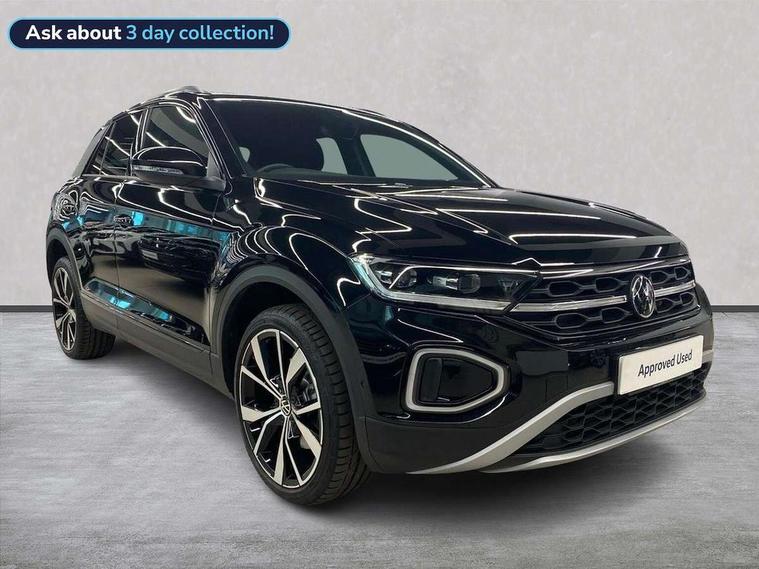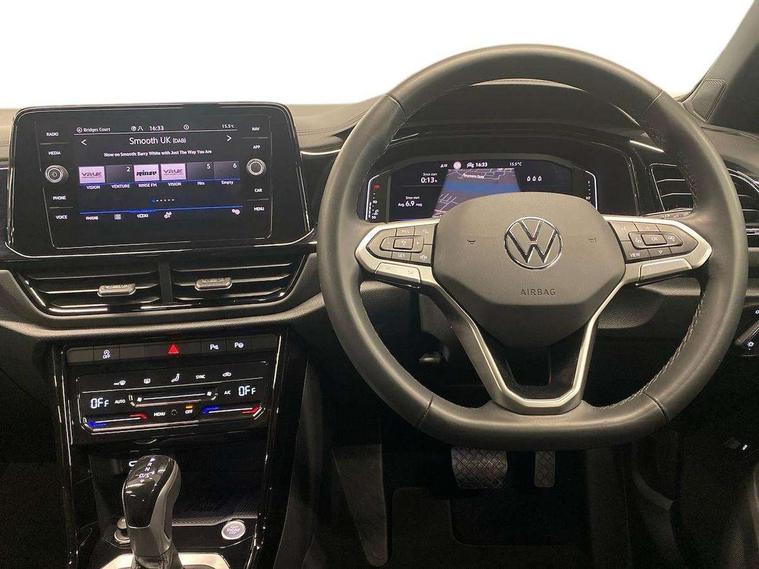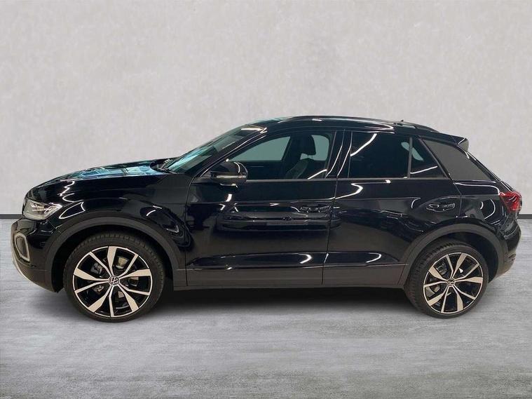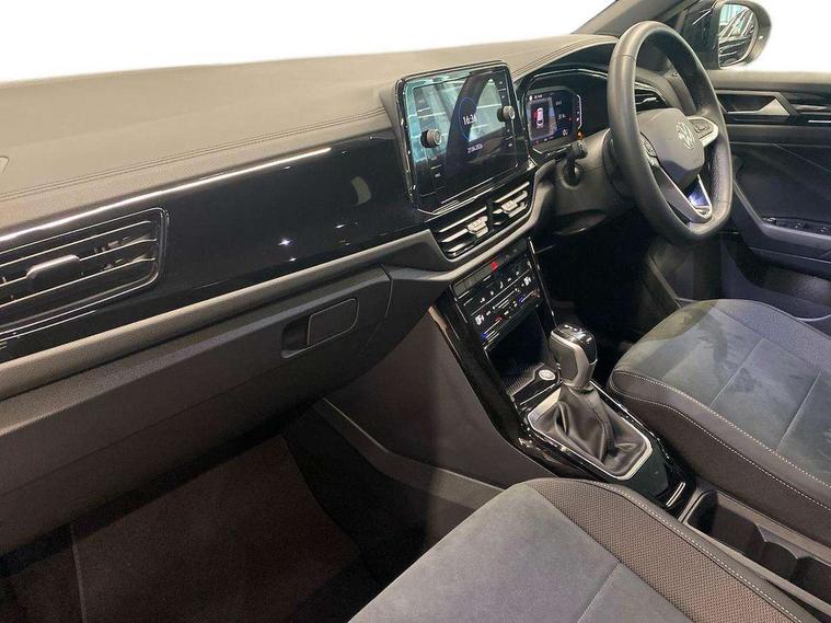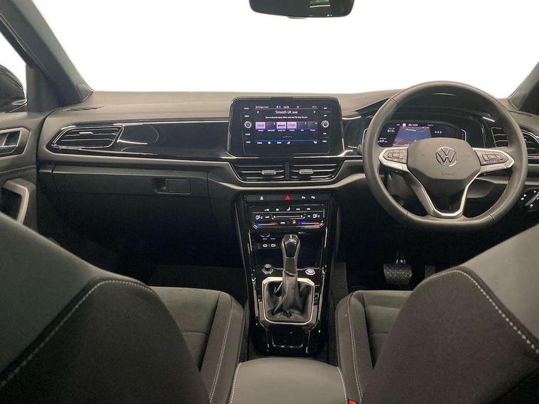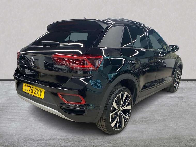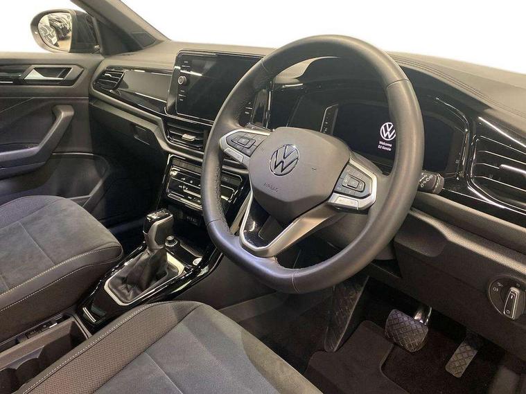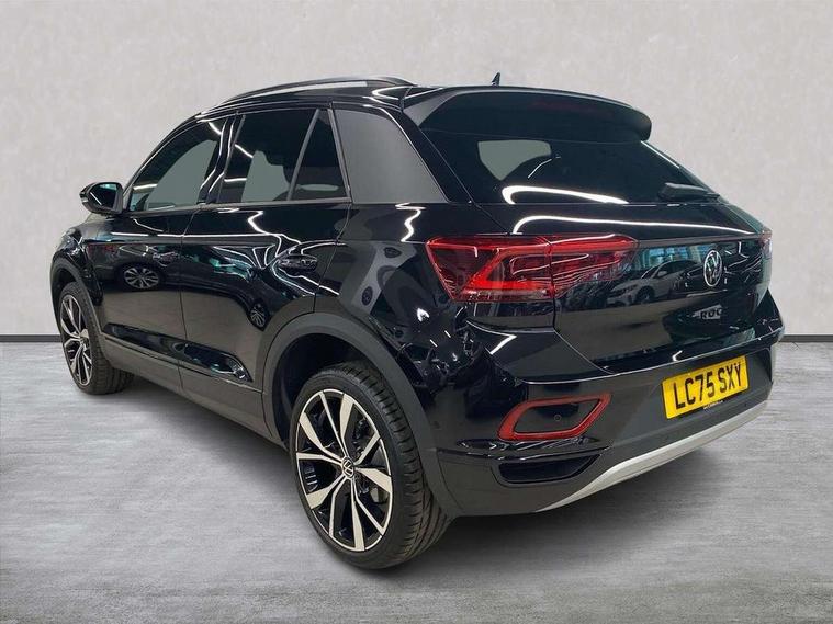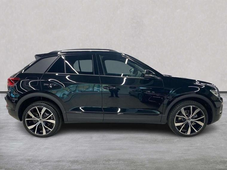 10.25" Digital cockpit pro, Advanced driver attention and drowsiness monitor, Dynamic road sign display, Emergency call service, Lane keeping system Lane Assist, Mobile phone interface, Modified key software - reduce switch off time for key status change to Long no motion, Online services, Park assist including front and rear parking sensors, Power assisted speed sensitive steering, Rear view camera, Service interval indicator, Tailgate/trunk lid release from outside, Think blue trainer driver tips and journey analysis, Warning sound and light for front seatbelts unfastened, Wireless app connect, Battery regeneration during braking, Front shock absorption, Rear shock absorption chassis with increased ride height, Start/stop function with battery regeneration, DAB Digital radio, Diversity antenna for FM reception, Music playback - MP3, WMA and AAC files, SD card slot, Simultaneous pairing of 2 compatible mobile devices, Title and cover art display, We Connect and We Connect Plus functionality, Adhesive film in carbon look on the C-pillars, Advanced dynamic light assist for LED matrix headlights, Auto dimming interior rear view mirror, Automatic hazard lights activation under emergency braking, Black roof rails, Body colour sports bumpers with silver metallic underbody fascia, Body coloured exterior mirror housings and door handles, Dynamic cornering light, Dynamic headlight range control with self adjusting whilst driving, Electrically adjustable and heated door mirrors, Extended roof spoiler, Exterior ambient lighting, Exterior mirrors aspherical on driver side, convex on front passenger side, External USB type C socket and charging sockets, Front windscreen wiper with intermittent wipe and 4 position delay, Heated rear window, Illuminated front grille, IQ LED matrix headlights, LED 3rd brake light, LED rear number plate lights, LED rear tail lights with dynamic turn signal, LED separate daytime running light, Light mode for poor weather, rain, fog or snow, Power windows with comfort operation and circuit breaker, Privacy glass for rear side windows and rear window, Rain sensor, Rear exhaust tailpipe, Rear fog light on one side and reversing lights on both sides, Rear side wing doors, Rear wash/wipe with intermittent wipe setting, Remote electrically foldable door mirrors, puddle lights and reverse activated passenger's door mirror, Tilting and sliding panoramic sunroof with rear panoramic sunroof, 12V power socket in centre console, 3 rear head restraints, 3 seat bench in 2nd row, 4 load lashing points in luggage compartment, Air care climatronic air conditoning system with active combination filter and 2-zone temperature control, Black roof lining, Chrome plated radiator grille inserts, air vent surrounds and light switch surrounds, Door and side trim panel with leatherette insert, Drawer under drivers seat, Front + rear carpet mats, Front centre armrest, Front comfort sports seats, Front cupholders x 2, Front footwell illumination, Front seat back storage pockets, Glove compartment door with light, Instrument lighting, white adjustable panel illumination, Interior ambient lighting and surround lighting, Interior light delay, Isofix child seat preparation, Leather gearshift handle, LED interior light with switch off delay/dimmer and 2 front/rear LED reading lights, Load-through provision with cup holder when folded down ('Unsplit rear seat bench, split folding backrest, with centre armrest), Luggage compartment lighting, Non-folding front passenger seat backrest, Single front passenger seat, Storage compartment in left and right luggage area, Storage compartment in rear doors, Storage compartments in driver and front passenger doors, Sunvisors with illuminated vanity mirrors, Variable boot floor, height adjustable and removable, Black design pack - T-Roc style design, Driver assistance pack without proactive passenger protection - T-Roc, Easy open package with safelock - T-Roc, 3 point height adj front seatbelts + pretensioners, 3 point seatbelts in outer rear with ECE label, ABS, Child locks on rear doors, City emergency braking and pedestrian monitoring, Driver and front passenger airbag with front passenger airbag deactivation, Driver and front passenger safety-optimised head restraints, Drivers seatbelt reminder, Electronic parking brake, Electronic Stability Control (ESC) inc EDL (Electronic Differential Lock) and ASR (Traction Control), Front and rear passengers curtain airbag system including front side airbags, Front disc brakes, Predictive pedestrian protection, Rear disc brakes, Two tone horn, Tyre pressure loss indicator, Volkswagen roadside assistance, Keyless locking and starting system keyless access with safelock, Black decorative trims, Piano black decorative inserts in dashboard and front door trim panels, Tool kit, Trims for alloy wheels, Tyre mobility kit including compressor and sealing foam,