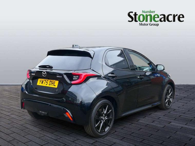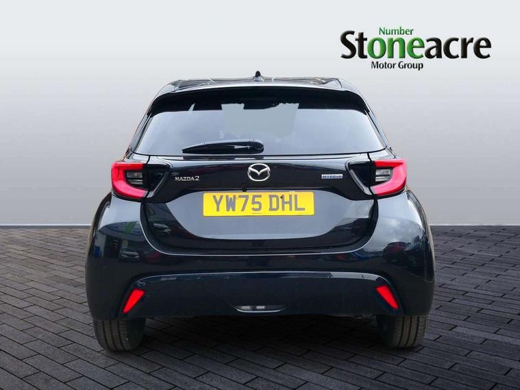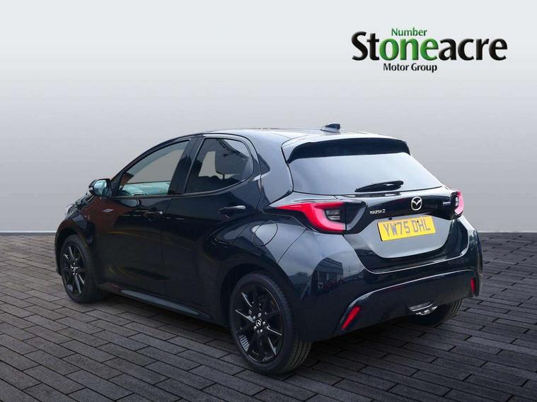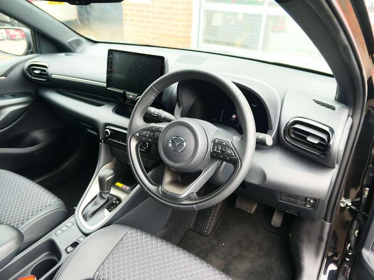 7" Digital instrument cluster with speedometer and hybrid system indicator, Adjustable speed limiter, Drive mode selector (Eco, Normal and Power), Driver attention alert system, Dynamic radar cruise control, E-call with GPS, EV drive mode, Front and rear parking sensors, Integrated bluetooth, Lane tracing assist includes Lane centering, Lane departure alert, Steering assist and Vehicle sway warning, Multi-information display, PAS, Push button start and stop, Qi wireless charging, Rear cross traffic alert with auto braking, Reversing camera, Road sign assist - RSA, Service indicator, Tailgate, Trip computer, Wireless Apple CarPlay and wired Android Auto, i-stop, 6 speaker audio system and 9" colour screen centre display, DAB Digital radio, Steering wheel mounted audio/bluetooth controls, USB type C port, Auto dimming rear view mirror, Auto folding door mirrors, Automatic high beam - AHB, Body coloured front bumper, Body coloured rear bumper with gloss black lower mouldings, Coming home function, Dusk sensing headlights, Front and rear electric windows, Gloss black electric adjustable/heated door mirrors, Gloss black front grille, Gloss black rear roof spoiler, Hybrid badge, LED front fog lights, LED headlights with manual headlight levelling and LED daytime running lights, LED rear combination light with LED turn signals, LED third brake light, Mazda unique tailgate garnish, Piano black lower window garnish, Privacy glass in rear side and rear windows, Rain sensing front wipers with adjustable sensitivity and speed, Rear side wing doors, Rear wash wiper, Shark fin antenna, Welcome lighting, 12V power outlet, 3 seat bench in 2nd row, 60/40 split fold down rear seats, Ambient lighting, Black roof lining in pillar and ceiling, Cloth/Synthetic leather upholstery, Driver, front passenger and two rear door storage, Driver, Front passenger and two rear grab handles with coathooks, Drivers seat manual slide recline and height adjustment, Drivers/front passengers with covered vanity mirrors and light, Dual zone climate control, Front centre armrest with console storage, Front head restraints, Front passenger seat manual slide, recline and height adjust, Front sport seats, Glovebox, Interior courtesy light with LED illumination, ISOFIX child seat anchorage points attached on outer rear seats, Leather handbrake, Leather wrapped gearshift, Leather wrapped steering wheel with telescopic and tilt adjustment, Luggage compartment light, Seatback pocket at rear of the front passenger seat, Single front passenger seat, Three height adjustable rear head restraints, 2x3 point front seatbelts with pre-tensioners, 3 point seatbelts on all rear seats, Airbags - driver and front passenger, Anti-lock braking system (ABS), Blind spot monitoring with rear cross parking support brake function, Collision mitigation braking system, Driver and passenger central airbags, Dynamic stability control + Traction control, Electronic parking brake with auto-hold and auto-disengage function, Emergency brake light signal (EBS), ESP, Front and rear curtain airbags, Front passenger airbag cut-off switch, Front side airbags, Hill start assist control (HAC), Manual child lock in rear doors, Pre-crash safety system - PCS, Rear parking support brake, Regenerative braking system, Seatbelt reminder audible warning, Tyre pressure monitoring system, Deadlocking system, Remote central locking, Smart keyless entry, Thatcham approved immobiliser and alarm, 17" Alloy wheels, Emergency tyre repair kit,