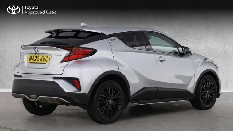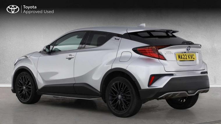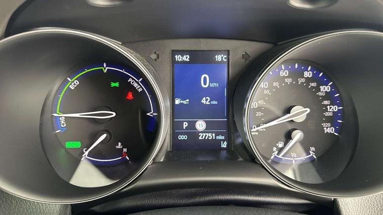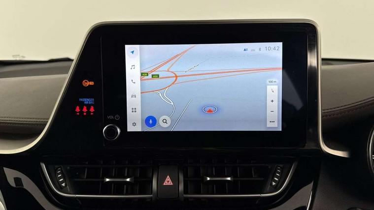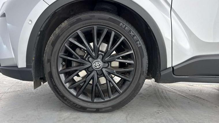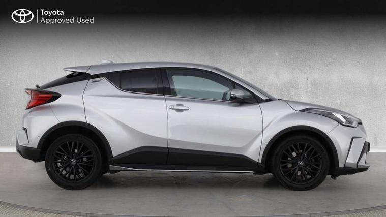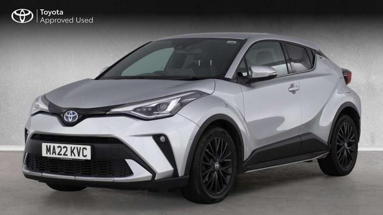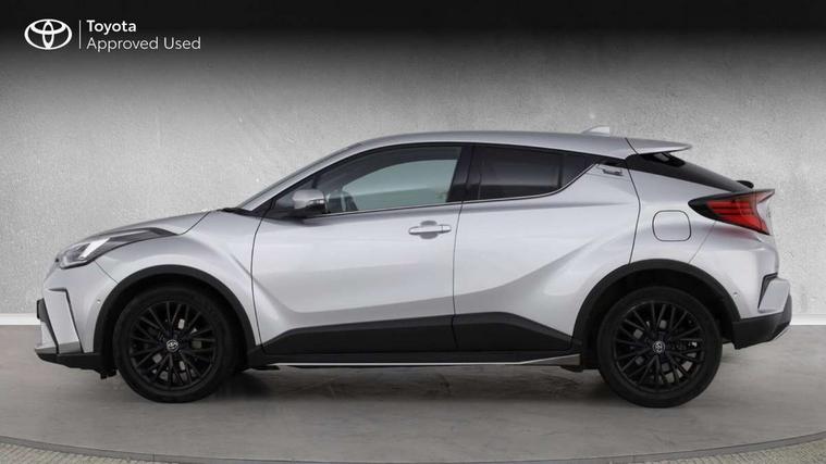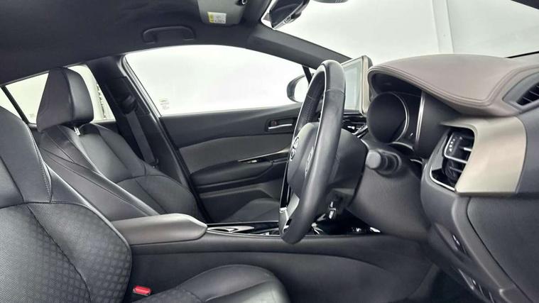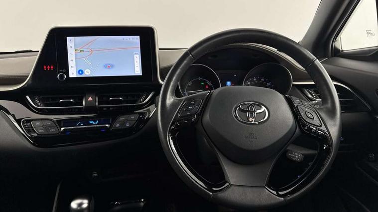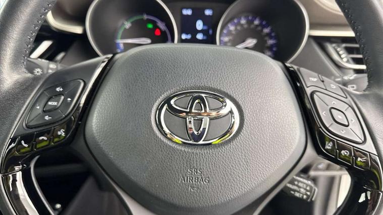 4.2" coloured TFT screen for multi-information display, Adaptive cruise control, Bluetooth connectivity, E-call, Electric power steering, Hybrid system indicator, Lane departure alert with steering control, Remote boot door release in cabin, Remote boot door release in key, Reversing camera, Road sign assist - RSA, Simple Intelligent parking assist, Touch 2 Go navigation system, Trip computer, Voice recognition, Vehicle Stability Control (VSC), 6 speakers, AM/FM radio, DAB Radio (Digital Audio Broadcasting), Toyota touch 2 multimedia system with 8" display, USB connector, Wi-fi connectivity, Adaptive front light system, Adaptive LED Headlights, Anti-jam protection on power windows, Auto high beam, Auto up and down function on all power windows, Automatic headlight levelling, Automatic headlights, Automatic headlights cut-off, Black and body coloured rear bumper, Black upper front grille, Body colour door handles, Body colour door mirrors, Body colour front spoiler lip, Body coloured front bumper, Boot door release with push button, Electric heated door mirrors, Follow me home headlights, Front and rear power windows, Honeycomb lower front grille, LED daytime running lights, LED fog lights, LED front light guide, LED High mounted stop light, LED rear brake lights, LED rear combination lights, Noise reduction layer on front windows and windscreen, Power adjustable door mirrors, Privacy glass, Rain sensor, Rear sequential indicators, Rear side wing doors, Rear spoiler, Rear tailgate, Rear window defogger, Rear window wiper, Shark fin antenna, UV-filter on driver and passenger windows, UV-filter on rear windows, 12v power outlet - front, 3 rear headrests, 3 seat bench in 2nd row, 3 spoke leather steering wheel, 60/40 split folding rear seat, Adjustable rear headrests, Adjustable speed limiter switch on steering wheel, Assist grips front and centre pillar, Audio and telephone switches on steering wheel, Black front door assist grips, Blue ambient lighting on front cup holders, Blue ambient lighting on front doors, Boot light, Chrome interior door handles, Driver and front passenger personal light, Driver and front passenger Whiplash Injury Lessening seats, Driver and passenger seatback pockets, Dual zone automatic air conditioning, Floor mats, Front cupholders, Front head restraints, Front sports seats, Glovebox with internal light, Hard tonneau cover, Heated driver and front passenger seats, Heated steering wheel, Hooks for luggage holding net, Humidifying Nanoe air purifier, Illuminated entry system, Isofix attachments on outer rear seats, Leather gearshift, Light on driver sun visor, Light on passenger sun visor, Manual telescopic steering wheel, Manual tilt steering wheel, Microphone on front personal light, Mirror on driver sun visor, Mirror on passenger sun visor, Multimedia switches on steering wheel, Pollen filter, Power adjustable lumbar support on driver seat, Power tilting cushion on driver seat, Shopping bag hooks, Single front passenger seat, Slow opening on lower glovebox, Voice recognition switch on steering wheel, Leather pack - C-HR, Tech with parking sensor pack - C-HR, 16 Disk front wheel brake, 3x3 point rear seatbelts, ABS+EBD+Brake assist, Electronic parking brake, Front and rear seatbelt reminder, Front passenger airbag on/off switch, Hill start assist control (HAC), Pre collision system with pedestrian detection, Pre-tensioners and force limiters, Rear door child safety locks, SRS Airbags - Driver + Front passenger, front side, front and rear curtain and driver's knee airbags, Toyota safety sense, Tyre pressure monitoring system, Acoustic vehicle alert system (AVAS), Glass-breaking alarm sensors, Immobiliser, Intrusion alarm, Intrusion sensor, Motion sensor alarm, Power door locks, Power passenger window lock, Remote central locking, Black lower dashboard, Dark brown upper dashboard, Piano black console, Silver deco line on upper dashboard, Tyre repair kit,