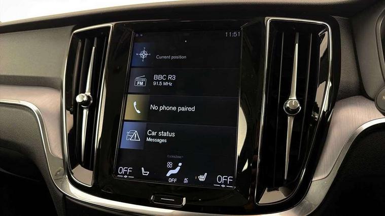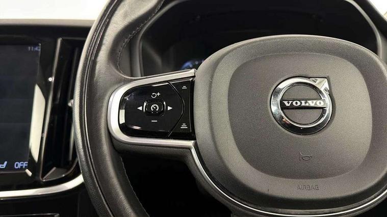 Iron ore inlays, Anti-theft alarm including immobiliser/volume sensor + level sensor, Fuel flap with deadlocking system, Key integrated remote control central locking, Keyless drive, Locking wheel nuts, Private locking, DAB Digital radio, Steering wheel mounted remote controls, 5 x 3 point seatbelts, ABS + EBD + EBA, City safety braking system, DSTC-Dynamic Stability and Traction Control, Dual stage Driver/Passenger Airbags, Electronic parking brake with auto hold, First aid kit, Hill start assist, Inflatable curtain, Passenger airbag deactivate switch, Rear seatbelt warning indicator, Road sign information display, Run off Road Mitigation, Run off Road Protection, Seatbelt pretensioners, SIPS airbags, Tyre pressure monitoring system, Warning triangle, Active bending headlights, Adaptive brake lights, Aluminium tread plates, Body colour bumpers, Body colour door mirrors, Electric adjustable/heated/folding door mirrors, Electric front+rear windows, Headlamp cleaning system, Headlamp levelling, Heated aqua blades, Home safe and approach lighting, LED front fog lights with static cornering light function, LED Headlights + Active high beam incorporating LED daytime running lights, Piano black front grille with chrome surround, Rain sensor windscreen wipers, Rear wiper, Roof antenna, Roof spoiler, Single exhaust pipes with chrome finishers, 12V socket in front + rear tunnel console, 3 spoke leather steering wheel with chrome trim, A-pillar parking ticket holder, B Pillar ventilation, Bright metal luggage threshold, Electric drivers seat with memory + mirrors memory, Floor mats, Front centre armrest with storage compartment and cupholders, Front footwell illumination, Front head restraints, Front reading lights, Glovebox illumination, Heated front seats, Heated steering wheel, Height/reach adjustable steering column, Illuminated driver/passenger vanity mirrors, Isofix attachments on rear seats, Leather gear knob, Leather upholstery, Load cover, Lockable load floor, Luggage load hooks, Pollen filter, Rear armrest with storage + cupholders, Theatre dimming interior lights, Ticket holder, Underfloor stowage compartment, WHIPS - Whiplash Protection System, 12.3" Active TFT crystal driver's instrument display, Adjustable steering wheel force, Bluetooth hands free telephone kit, Drive mode selector, Hands free power tailgate, Information centre, Lane keep assist with driver alert control, Oncoming Lane Mitigation, Sensus navigation system, Service interval indicator, Speed limiter, Speed sensitive steering, Touch screen display, Trip computer, Voice control system, Volvo on call, Dynamic chassis,