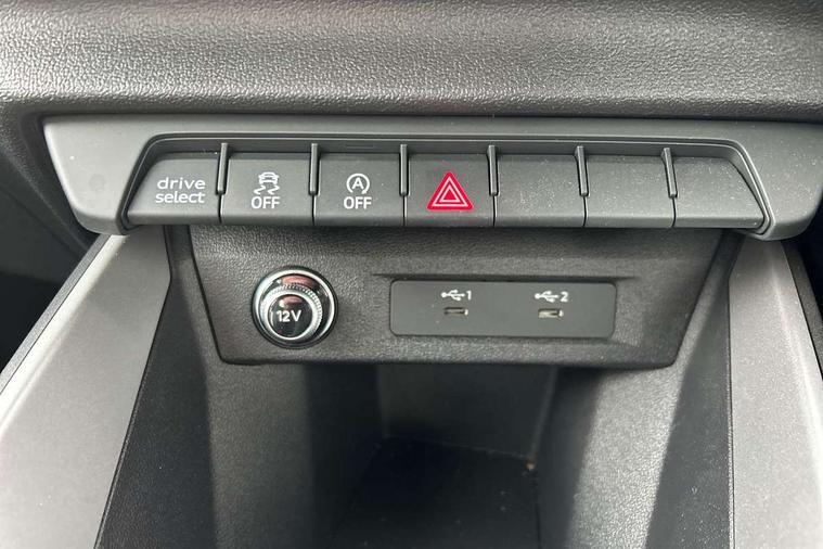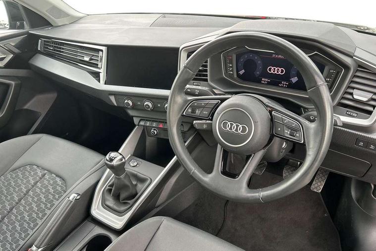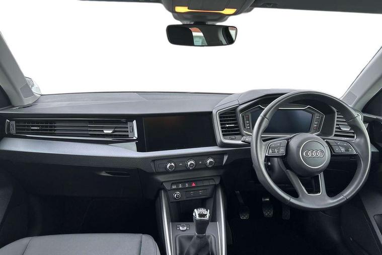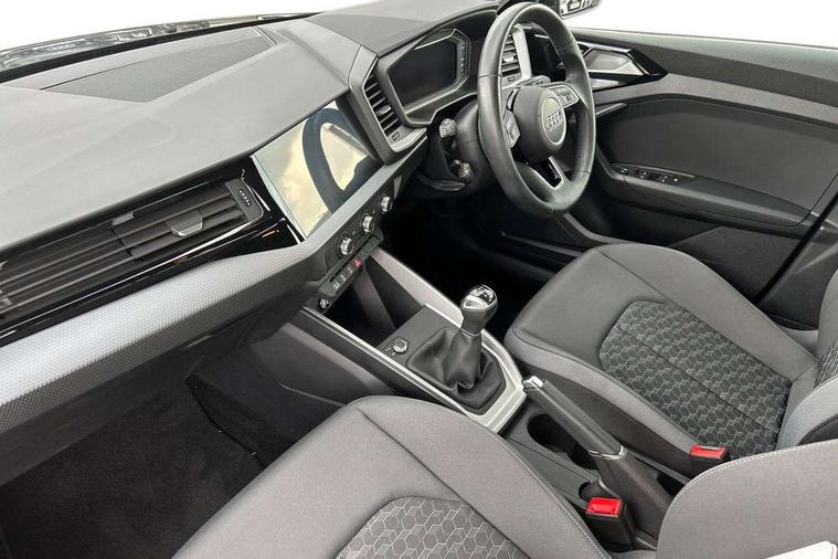 10.25" Digital instrument cluster display classis style instrument dials + speed, odometer, time, outside temperature, telephone menu + fuel level warning, Audi drive select - power steering assistance + engine, Audi smartphone interface with connect compatible smartphone via USB directly MMI display + Nav, music, third party apps controlled via MMI controller, Automatic start/stop system, Bluetooth interface, Cruise control, Driver's information system, Electromechanical power steering, Emergency e-call, Lane departure warning system, Rear parking sensor, Service interval indicator, Speed limiter, Voice control system, Washer fluid level indicator, Dynamic suspension, 2 x USB type C connection points, 6 passive loudspeakers, DAB Digital radio, MMI radio plus with 10.1" colour MMI display screen and MMI touch, Auto dimming rear view mirror, Body coloured bumpers, Body coloured door mirrors, Electric front and rear windows, Electrically adjustable, heated, folding door mirrors with integrated LED side indicator, Front side air inlets in grained matt black and C frame in anthracite black, Heat insulating glass windscreen and side windows, Heated rear windscreen, High level LED brake light, LED headlights with LED rear lights + dynamic rear indicators + headlight adjustment and high beam, turning light + LED daytime running lights, Radiator grille and rear diffuser in matt anthracite black, Radiator protective grille frame in matt aluminium silver, Rain and light sensors, Rear fog lights, Rear side wing doors, Rear wiper, Side front spoiler lips in grained matt black, 12V socket in centre console with two cup holders, 3 rear seats with headrests, 3 seat bench in 2nd row, 3 spoke leather multifunction plus steering wheel, 40:60 Split folding rear seat or folded fully, Black front and rear floor mats, Door sill trims with aluminium inlay, Driver and passenger seat with manual height adjust with forward and backwards adjustment, Front head restraints, Front passenger seat, Grey cloth headlining, Height and reach adjustable steering wheel, ISOFIX child seat mounting for front passenger and outer rear seats including top tether attachment point of outer rear seats, Leather gear knob with aluminium trim, Leatherette handbrake grip, Luggage compartment light with front and rear reading lights, Manual air conditioning, Manually adjustable lumbar support in front seats, Novum cloth upholstery with front sport seats, Luggage compartment pack - A1, 3x3 point rear seatbelts, Audi pre-sense front with pedestrain and cyclist recognition, Brake assist function, Driver and front passenger airbag with front side and head airbags, Electronic Stability Control including ABS, EBD, ASR and EDL, Front passenger airbag deactivation switch, Hill hold assist, Manual rear child locks, Seatbelt height adjustment for front seats, Seatbelt monitoring, Tyre pressure warning light, Warning triangle and first aid kit, Anti theft alarm, Anti theft wheel bolts and loose wheel warning, Immobiliser, Remote central locking with 2 foldaway keys, Aluminium trim for control switches, air vents and digital instrument cluster, Black dashboard, Silver grey accent areas including air vents, door handle recesses and centre console in diamond paint finish, Slate grey inlays polygon structure in fine paint finish,