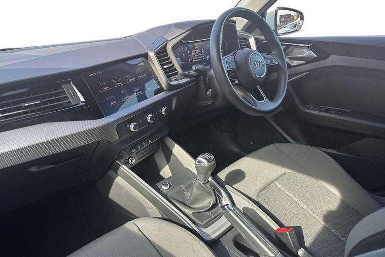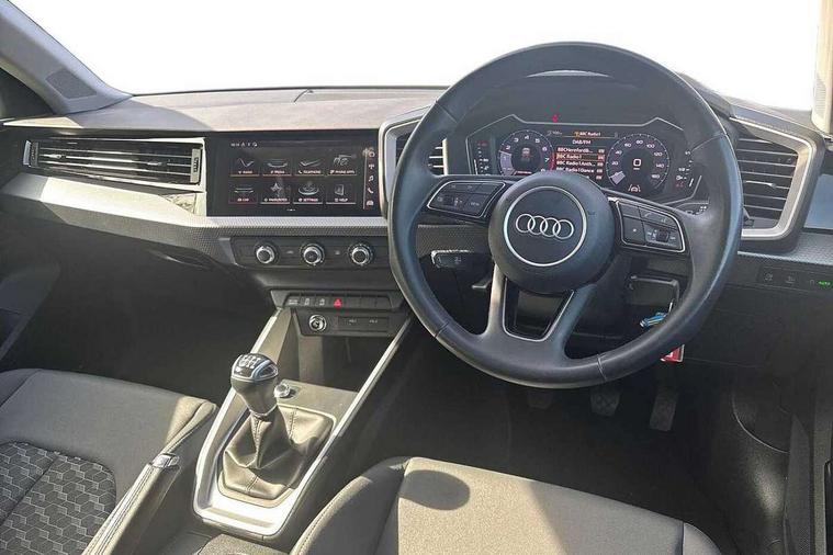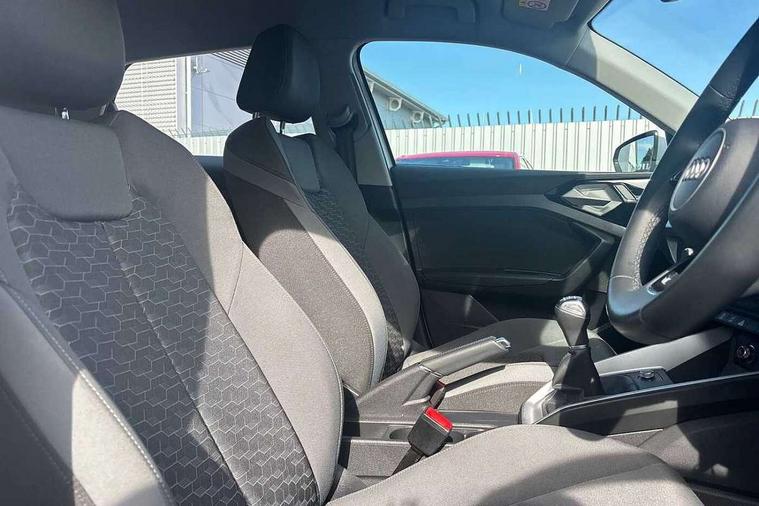 10.25" Digital instrument cluster display classis style instrument dials + speed, odometer, time, outside temperature, telephone menu + fuel level warning, Audi drive select - power steering assistance + engine, Audi smartphone interface with connect compatible smartphone via USB directly MMI display + Nav, music, third party apps controlled via MMI controller, Automatic start/stop system, Bluetooth interface, Cruise control, Driver's information system, Electromechanical power steering, Emergency e-call, Lane departure warning system, Rear parking sensor, Service interval indicator, Speed limiter, Voice control system, Washer fluid level indicator, Dynamic suspension, 2 x USB type C connection points, 6 passive loudspeakers, DAB Digital radio, MMI radio plus with 10.1" colour MMI display screen and MMI touch, Auto dimming rear view mirror, Body coloured bumpers, Body coloured door mirrors, Electric front and rear windows, Electrically adjustable, heated, folding door mirrors with integrated LED side indicator, Front side air inlets in grained matt black and C frame in anthracite black, Heat insulating glass windscreen and side windows, Heated rear windscreen, High level LED brake light, LED headlights with LED rear lights + dynamic rear indicators + headlight adjustment and high beam, turning light + LED daytime running lights, Radiator grille and rear diffuser in matt anthracite black, Radiator protective grille frame in matt aluminium silver, Rain and light sensors, Rear fog lights, Rear side wing doors, Rear wiper, Side front spoiler lips in grained matt black, 12V socket in centre console with two cup holders, 3 rear seats with headrests, 3 seat bench in 2nd row, 3 spoke leather multifunction plus steering wheel, 40:60 Split folding rear seat or folded fully, Black front and rear floor mats, Door sill trims with aluminium inlay, Driver and passenger seat with manual height adjust with forward and backwards adjustment, Front head restraints, Front passenger seat, Grey cloth headlining, Height and reach adjustable steering wheel, ISOFIX child seat mounting for front passenger and outer rear seats including top tether attachment point of outer rear seats, Leather gear knob with aluminium trim, Leatherette handbrake grip, Luggage compartment light with front and rear reading lights, Manual air conditioning, Manually adjustable lumbar support in front seats, Novum cloth upholstery with front sport seats, Luggage compartment pack - A1, 3x3 point rear seatbelts, Audi pre-sense front with pedestrain and cyclist recognition, Brake assist function, Driver and front passenger airbag with front side and head airbags, Electronic Stability Control including ABS, EBD, ASR and EDL, Front passenger airbag deactivation switch, Hill hold assist, Manual rear child locks, Seatbelt height adjustment for front seats, Seatbelt monitoring, Tyre pressure warning light, Warning triangle and first aid kit, Anti theft alarm, Anti theft wheel bolts and loose wheel warning, Immobiliser, Remote central locking with 2 foldaway keys, Aluminium trim for control switches, air vents and digital instrument cluster, Black dashboard, Silver grey accent areas including air vents, door handle recesses and centre console in diamond paint finish, Slate grey inlays polygon structure in fine paint finish,