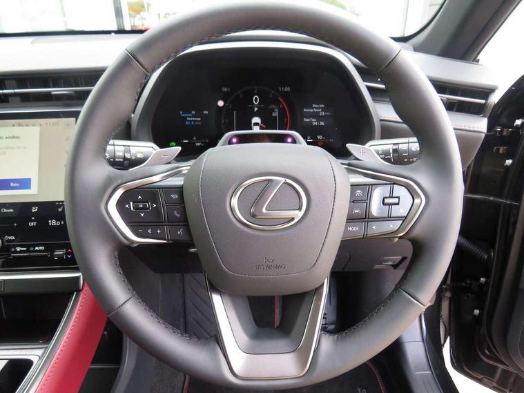 12.3" Digital instrument binnacle, Active Noise Control, Bluetooth connectivity, Cloud navigation, Digital speedometer with high-definition, e-Call (emergency call), Electric power steering, Emergency driving stop system, EV mode, Extended Lexus safety system+ 3 includes blind spot monitor, safe exit assist, camera washer and rear cross traffic alert, Front and rear parking sensors with intelligent clearance sensor, Front and rear smart entry, Lane change flasher function, Lexus link connected services, Lexus safety systems+ 3 includes dynamic radar cruise control, pre collision system day and night, lane tracing assist, road sign assist, Multi info display, Pre-collision system with driver monitor, Push button start, Rear pedestrian detection, Rear view camera, Tachometer/Hybrid system indicator, Tailgate electric lift and close, Tailgate height memory function, Trip meter, Wireless Apple CarPlay and wired Android Auto, Wireless Smartphone charger, Predictive efficient drive, Vehicle dynamic integrated management (VDIM), Vehicle Stability Control (VSC), 1 USB (Type-C) charging ports in bottom of the instrument panel, 1 USB (Type-C) multimedia communication ports in bottom of the instrument panel, 1 USB (Type-C) ports inside front console box, 2 USB (Type-C) ports for charging in rear, 6 speaker audio system, AM/FM and DAB radio, Lexus Link Connect with 9.8" Touchscreen, Rear side monitor, Steering wheel mounted controls, Acoustic glass windscreen, Active brake lights, Auto dimming interior rear view mirror, Auto headlights, Automatic rear flashing hazard lights, Black film door belt moulding, Black outer mirror cover with black ornament, Black resin rocker panel, Black stainless steel moulding side windows frame, Black wheel arches, Chrome plated rear badge LBX, Electric adjustable/heated/auto folding door mirrors, Front and rear electric windows, Full body colour bumpers, Glass breaking sensor, Jet Black bumper and grille garnish, LED 3rd brake light, LED daytime running lights, LED front indicators, LED rear fog light, LED rear lights, Manual levelling headlights, Metallic paint, One touch electric front/rear windows, Power back door without kick function, Privacy UV glass, rear doors and tailgate, Rain sensing wipers, Rear bumper with hidden exhaust, Rear side wing doors, Rear wiper, Roof spoiler, Shark fin antenna, Side indicator lights integrated into door mirrors, Silver plated unified grille, Single bulb LED headlights with auto high beam, Trailer sway control, Wet arm wipers, 12V accessory connector in front console box, 12V socket in front and rear, 2 way manually adjustable front headrests, 2 way manually adjustable rear headrests, 3 bench rear seats in 2nd row, 3 rear headrests, 3 spoke leather trimmed steering wheel, 6 way adjustable front passenger seat, 60/40 split folding rear seat, 8 way electrically adjustable front seats, Aluminium scuff plates, Armrest with sliding cup holder, Automatic air recirculation control, Black roof lining, Black steering wheel and gearshift knob, Centre armrest with storage, Clean air filter with pollen removal and deodoriser, Cup holder in centre console, Driver and passenger door pocket, Driver's lumbar support, Driving position memory for 3 users (seat, steering wheel & door mirrors), Dual zone automatic air conditioning, Front centre console in Wood grain finish, Front headrests, Glovebox, Heated front seats, Humidity sensor for climate control, Illuminated entry system (cabin, footwell, console and door handles), Leather gear lever, LED light in luggage compartment, Luggage cover manually folding, Manually multi adjustable steering column, Memory function for driver seat, Multi colour ambient lighting, Nanoe-X Technology, Organ type accelerator pedal, Red interior accents, Remote climate control, Semi-aniline leather upholstery, Sequential shift and paddles, Single passenger seat, Sport front seats, Storage tray under audio panel and lower tray, Synthetic leather steering wheel, Tahara door panel finish, Tahara upholstered knee pads on front centre console, Touch Sensor Buttons on Steering Wheel, Tsuyasumi interior ornamentaion, Under deck storage, Vibrant edition floor mats, 2 x Isofix child rear seat restraints, 3 point ELR (Emergency Locking Retractor) front seat belt with pretensioners, 3x3 point rear seat belts, ABS/EBD, Active Traction Control (TRC), Adjustable seatbelt anchor points, AVAS - Acoustic Vehicle Alerting System, Dark rose seatbelt, Driver and front passenger side airbags, Driver and front passenger single stage airbags, Driver and passenger seatbelt not fastened - visual and audible warning, Driver knee airbag, E-Latch electric door release, Electronic parking brake, Electronically controlled braking regeneration, ESP, Front and rear curtain shield airbags, Front centre airbag, Front wheel brake - 15inch discs, Hill assist control, Manual rear child locks, Passenger airbag cut-off switch, Rear wheel brake - 15inch discs, Tyre pressure monitoring system, Alarm/anti-theft (with siren and 2 sensors), Auto door locking when driving, Double door lock, E-latch door lock system, Engine immobiliser, Intrusion sensor, Smart keyless entry, Thatcham approved locking wheel nuts, Tilt sensors, Two motion door lock with double lock, VIN etching, Wireless door lock, Double line Tatami stitch door trim ornament, Double line Tatami stitch with double stitch on bolsters, Rear quarter panel in Vibrant edition film, Satin paint door inlays, 18" Matt black alloy wheels, Tyre repair kit,