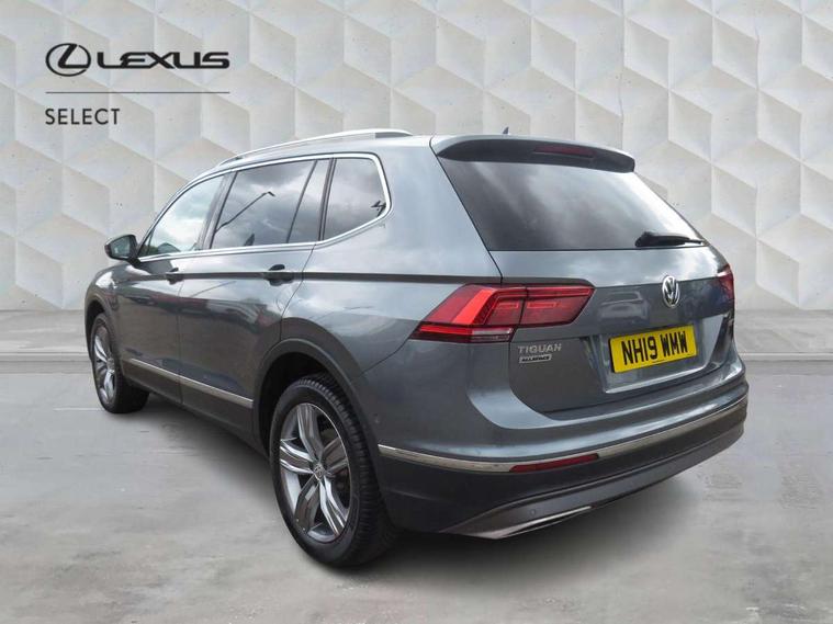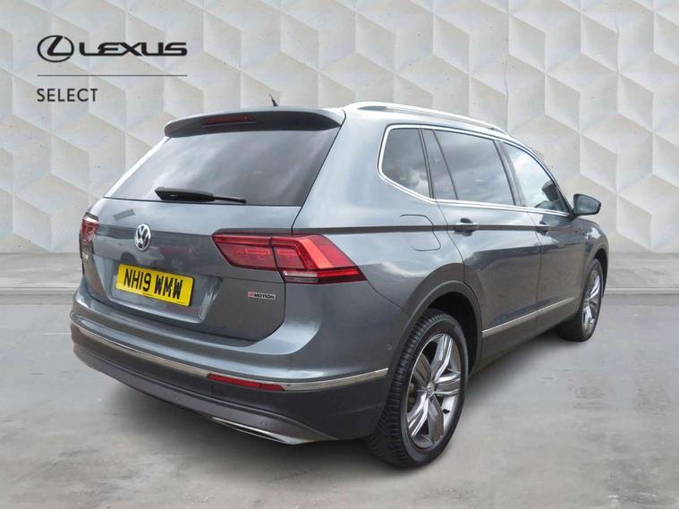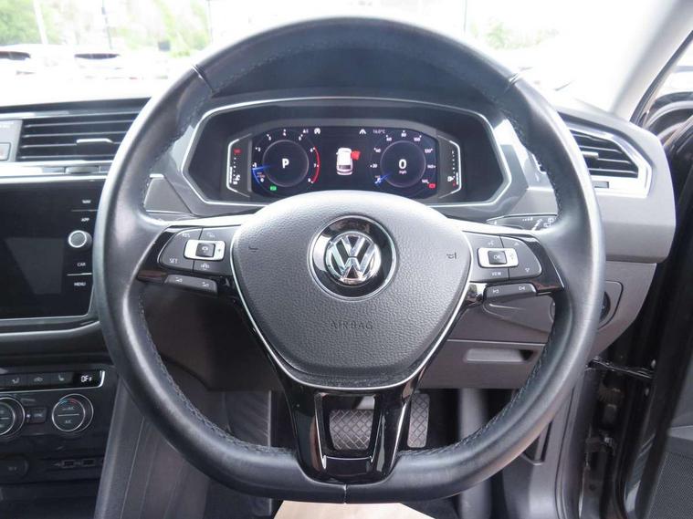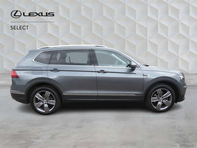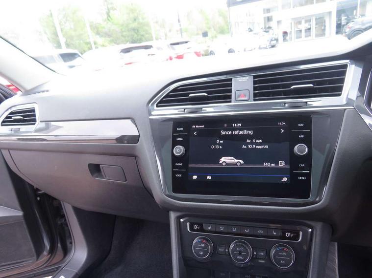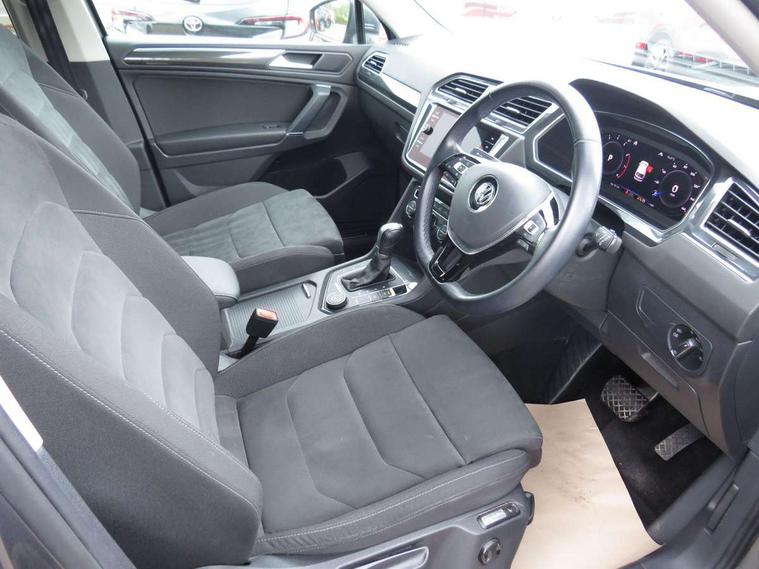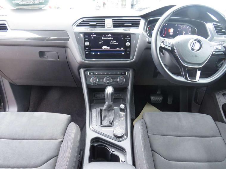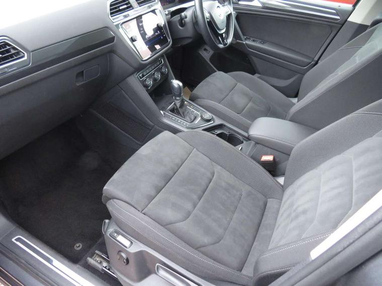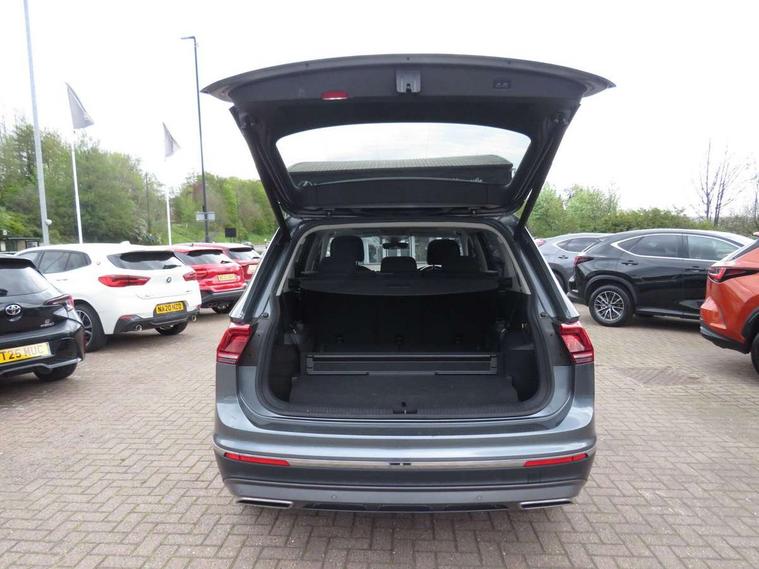 Active information display, Adaptive cruise control, App-Connect, Bluetooth phone integration system, Car-Net Security and Service, Coasting function, Drive mode selector, Driver alert system, Driver profile selection, Fatigue detection system, Front assist, radar sensor controlled distance monitor, city emergency braking + predictive pedestrian protection, Fully electric tailgate + keyless entry and start, Instrument cluster, Lane assist, Low washer fluid warning light, Outside temperature display, Service interval indicator, Speed limiter, Start/Stop function, Warning sound and light for doors and tailgate open, Battery regeneration during braking, 2x USB sockets in front, 4 X 20 watt output, DAB Digital radio, Dynamic navigation based on TMC+, Music playback - MP3, WMA and AAC files, SD card slot, Simultaneous pairing of 2 compatible mobile devices, SMS Functionality, Three route options - Fast, Short, Eco, Title and cover art display, Volkswagen media control, 3D effect cherry red LED rear tail lights, Auto dimming interior mirror, Automatic activation of hazard warning lights, Black door protector with chrome inserts, Body colour door handles, Body colour door mirrors, Body coloured bumpers, Chrome side body trim, Chrome side window surrounds, Chrome trimmed radiator grille, Coming/leaving home lighting function, Door mirror puddle lights, Door sill protector, Dusk sensor + auto driving lights, Electric panoramic sunroof with sunblind, Electrically heated and foldable door mirrors, door mirror puddle lights and reverse activated kerb view adjustment on passenger's door mirror, Front air intake with chrome strip, Front and rear electric windows, Heated rear window, Heated windscreen washer jets, High level 3rd brake light, LED headlights with dynamic light assist daytime running lights and cornering front fog lights, LED rear number plate lights, Rain sensor windscreen wipers, Rear tinted windows from B pillar back, Rear windscreen washer and wiper with interval delay, Silver anodised roof rails, Silver rear diffuser trim, Twin trapezoid chrome exhaust pipes, Windscreen wipers/ intermittent wipe + 4 position delay, 12V socket in centre console storage area, 12V socket in luggage compartment, 12V socket on rear of front centre armrest, 2 cup holders in front, 2 head restraints in 3rd row, 2 individual 3rd row seats, 3 head restraints in 2nd row, 3 single seats foldable in 2nd row, 3 zone climate control, 4 load lashing points, Assymetric split folding rear bench seat and backrest with centre armrest, Bag hook in luggage compartment, Driver + front passenger lumbar support, Foldable front passenger seat backrest, Front + rear carpet mats, Front centre armrest with storage compartment, longitudinal and height adjustable and two rear air vents, Front seatback folding tables, Height/reach adjust steering wheel, Illuminated driver/passenger vanity mirrors, Illuminated scuff plates, Instrument lighting white adjustable panel illumination, Interior light with delay, Isofix Preparation 2 Rear child seats, Load through provision with 2 cupholders when folded, Lockable cooled glovebox, Luggage compartment lighting, Luggage compartment side storage, Map pockets on front seats, Passenger seat height adjuster, Rear cupholders, Removable luggage cover, Sliding/reclining rear seats, Storage compartment in driver's door, Storage compartment in passenger's door, Storage tray on dashboard, Sunglasses storage, Variable boot floor, Ambient lighting pack - Tiguan, 3 point seatbelts on all seats, ABS+EBD+Brake assist, Active bonnet, Active pedestrian safety system, Curtain airbags, Driver/Front Passenger airbags, Driver/Passenger whiplash optimised head restraints, Drivers knee airbag, Electronic parking brake with auto hold, ESC with EDL, ASR, EDTC and trailer stabilisation function, First aid kit, Front and rear brake disc, Front seat side impact airbags, Front side airbags, Front ventilated brake discs, Head airbag system, Height adjustable front 3 point seatbelts + pretensioners, Hill hold control, Passenger airbag deactivate switch, Passenger knee airbag, Pre crash system, Rear side airbags, Rigid safety cell with front and rear crumple zones, Seatbelt warning lamp and buzzer, Two tone horn, Volkswagen roadside assistance, Warning sound and light for front seat belts if unfastened, Warning triangle, Alarm with interior protection, Electronic engine immobiliser, Remote central locking with 2 remote folding keys, Chrome door trim inserts, Dark grey decorative inserts in dash and door panel, Piano black interior trim, Steel space saver spare wheel,