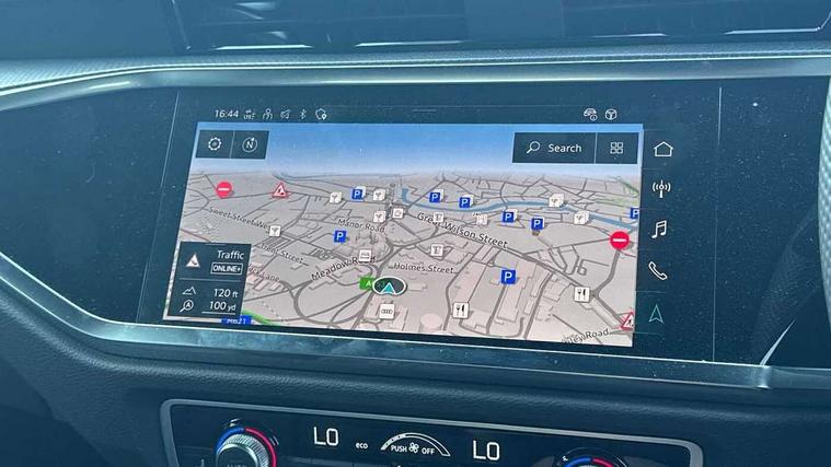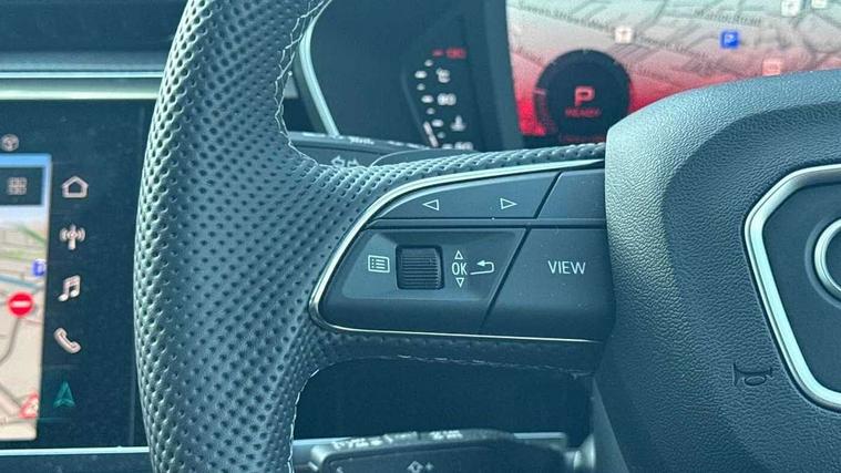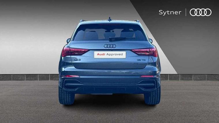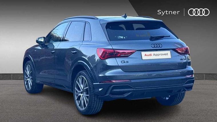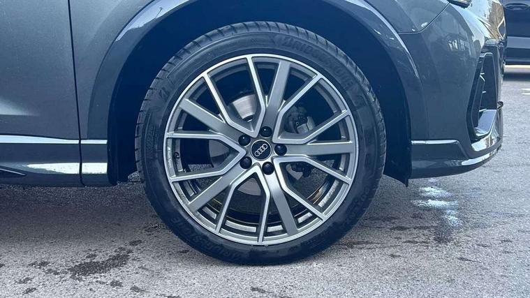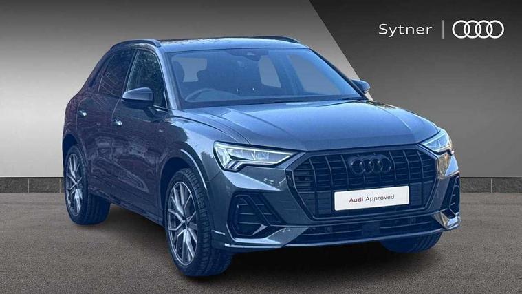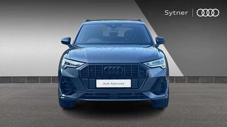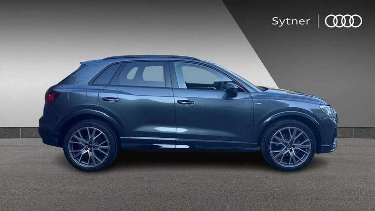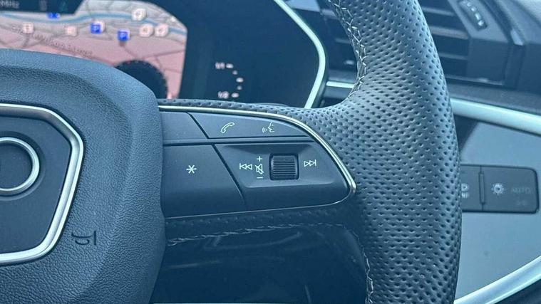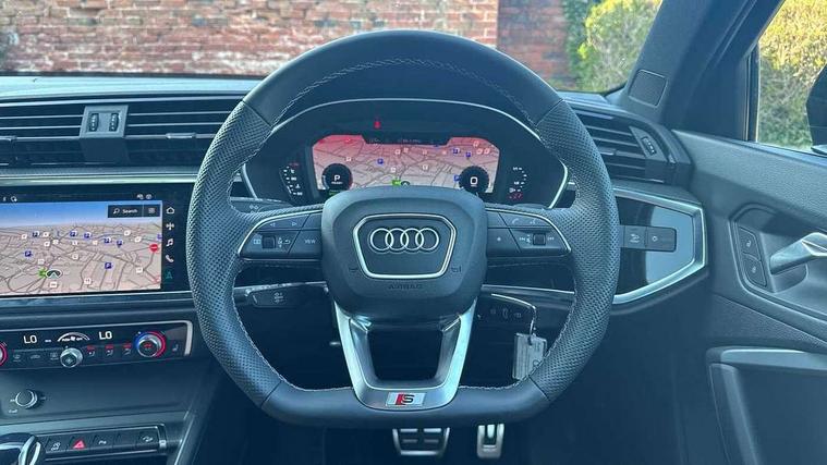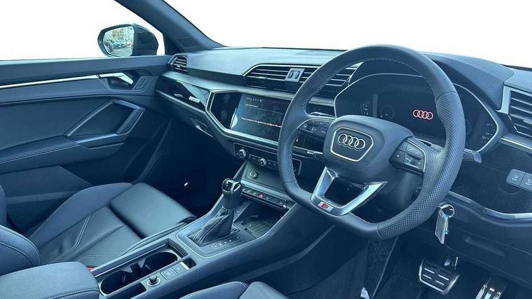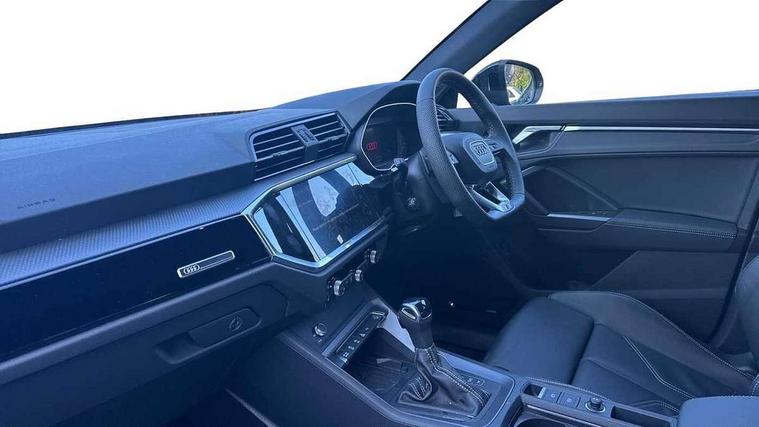 Amazon alexa Integration, Audi connect safety and service, Audi drive select, Audi lane departure warning, Audi Virtual Cockpit - 10.25" display, Bluetooth interface, Camera based traffic sign recognition, Distraction and Fatigue warning, Legal emergency call, MMI Navigation Plus with high resolution 10.1 inch touchscreen colour display, Power operated tailgate, Progressive steering, Service interval indicator, Smartphone interface includes wireless Apple carplay/Android Auto, Start stop system with recuperation, Voice control system with natural language interaction, Diesel particulate filter, Sports suspension, 2 USB-C ports with charge and data functions, 6 passive loudspeakers, DAB digital radio module, Acoustic windscreen, Anthracite black radiator grille, Audi Beam uses LEDs to project the Audi logo onto the ground as you exit your Q3, Auto dimming door mirrors, Auto dimming frameless rear view mirror, Black roof rails, Electrically folding, adjustable and heated door mirrors with integrated LED side indicators and kerb view function for passenger side, Front and rear electric windows, Front fog lights, Grille vertical bars in aluminium silver/Matt, High gloss black finish B and C pillars, LED Dynamic rear indicators, LED headlights with LED daytime running lights, LED rear lights, LED third brake light, Privacy glass dark tinted rear and rear-side windows (from B-pillar backwards), Rain and light sensors, Rear diffuser grille in grained matt black, Rear diffuser strip in matt anthracite black, Rear side wing doors, Rear wiper, S line bumpers in contrasting Manhattan grey, Variable front intermittent wipers, 12V socket in rear centre console, 3 seat bench in 2nd row, 40:20:40 folding with manual adjustment for 60:40 forwards/backwards position and backrest angle, Adjustable rear seat bench/backrest with centre armrest and cupholder, Black carpet mats, Black cloth headlining, Dual zone electronic climate control, Electric lumbar support, Front and rear black floor mats with contrast stitching in rock grey, Front and rear headrests, Front centre armrest, Height and reach adjustable steering wheel, Illuminated door sill trims with S logo, ISOFIX child seat mounting for front passenger with airbag deactivation and outer rear seat including top tether attachment point for outer rear seats, Luggage compartment sill protection in stainless steel, Manual front seats with height adjustment, Perforated leather gearknob, Single front passenger seat, Stainless steel pedals, Twin leather upholstery with front sport seats + S embossing, Black styling pack - Q3, Non smoking pack - Q3, 3x3 point rear seatbelts, 6 airbags - Driver, front passenger, curtain and side windows, Audi pre-sense front with pedestrain and cyclist recognition, Electrically operated child locks on rear doors, Electromechanical parking brake, Electronic stabilisation control including ABS, ASR and EDL, Front seatbelt reminder, Hill descent control, Hill hold assist, Pre sense basic, Seatbelt monitoring, Tyre pressure warning, Warning triangle and first aid kit, Anti theft wheel bolts, Immobiliser, Remote central locking, Thatcham approved category 1 anti theft alarm, Aluminium look interior elements, Detail dashboard around MMI touch colour display in glass look, black with surround in aluminium look, Leatherette door armrest, Piano black inlay,