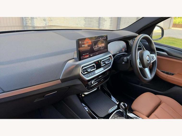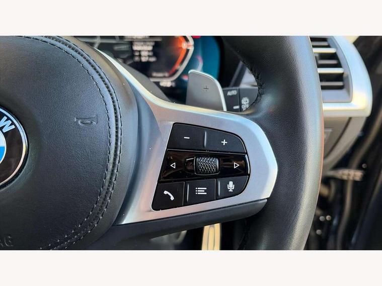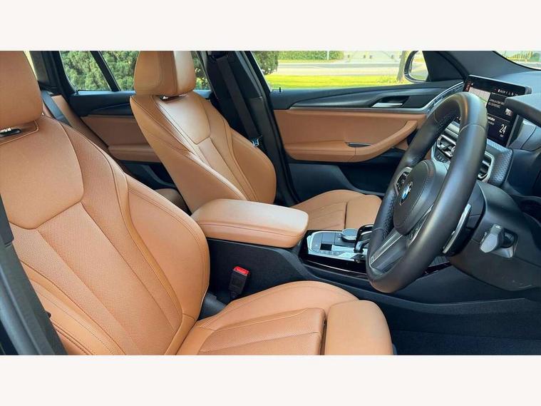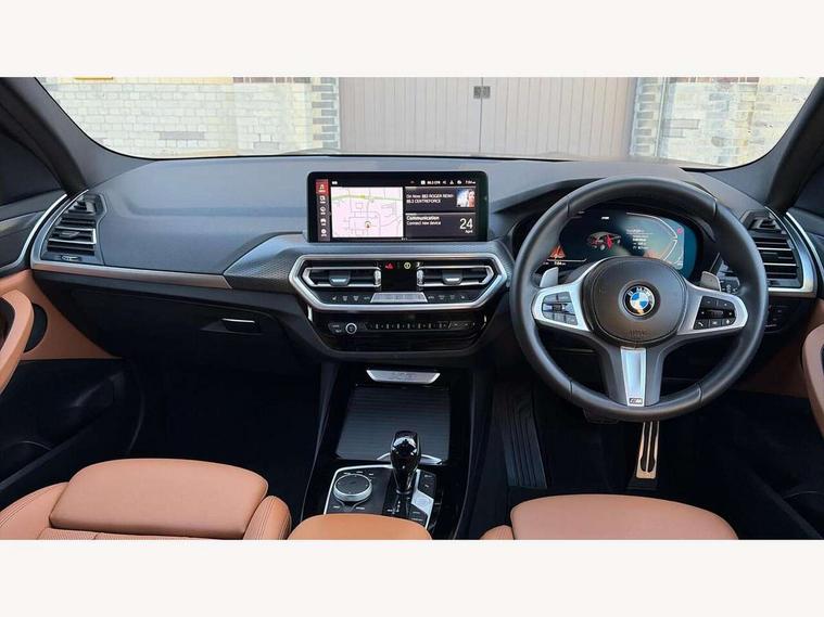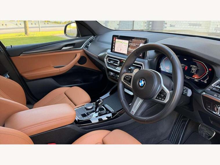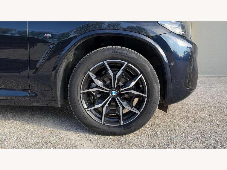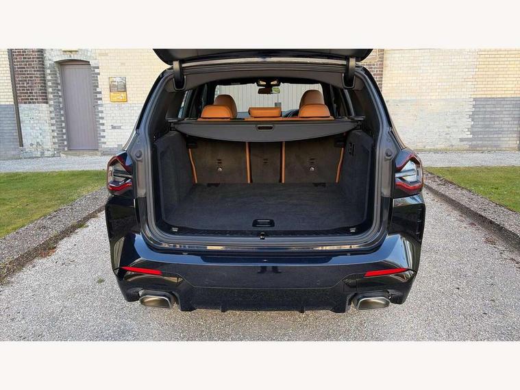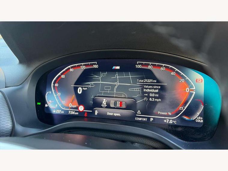 Active Guard, Attentiveness assist, BMW Live Cockpit Professional nav system including 12.3" instrument display + 12.3 high resolution control display, BMW Online services, BMW Teleservices, Brake pad wear indicator in front and rear, Check Control warning system for monitoring of lights and door/luggage compartment open warning, Condition based service - BMW service history, electronic service booklet, integrated owner's handbook, Connected drive services, Electric boot lid, Front/rear Parking distance control, iDrive touch controller with 8 favourite buttons, Instrument cluster with speedometer with mph readout, tachometer, fuel gauge and oil temperature gauge, Lights on warning by audio warning signal when ignition is switched off, Oil sensor for level and grade, warning by check control system, On board computer - average speed+fuel consumption, service interval, clock/date, odometer/trip meter, outside temperature display and ice warning, Optimum shift indicator, Personal Profile - automatic lock when driving away selectable, Run flat indicator, Stop/start system, Variable sports power steering with drive performance control Sport+ mode, Automatic transmission with gearshift paddles, Incorrect fuelling protection, M sport suspension, Multi-link rear suspension, BMW professional radio/CD/MP3, DAB tuner, Acoustic glazing, Automatic windscreen wipers and automatic headlight, Black finish on B pillars, Body colour door handles, Body colour electric adjust heated aspherical door mirrors, Body colour roof mouldings, Body coloured bumpers, Direction indicator, side repeaters, integrated in exterior mirrors, Dynamic brake lights, Exhaust tailpipes - dual, round, split left and right with chrome finisher, Fingertip control / anti-trap function on electric window, Folding wing mirrors with auto dimming, Follow me home headlights, Front and rear bumper system with replaceable deformation elements, Front and rear electric windows, Gloss chrome tailpipes finishers, Green tinted heat insulating glass, Heated windscreen washer jets, High beam assistant, High gloss black shadow line roof rails, High gloss shadowline exterior trim in decorative moulding side frame/recess cover/guide rail/B, C pillars/mirror frame and triangle with mirror base, High level 3rd brake light incorporating LED Technology, Interior rear view electrochromatic mirror with automatic anti dazzle function, LED tail lights, Lightweight engineering, M aerodynamic bodystyling, M Sport entry door sill strips, Model designation, Rain sensor, Rear side wing doors, Rear wing door, Rear wiper, Shark fin antenna, Side exterior M designation badges, Visible VIN plate, Welcome lighting, Windscreen wipers with adjustable interval, 12V power point in luggage area, 12V power socket in front centre console, 2 x USB Type C ports for charging and data transmission (front centre console) and 2 x USB Type C ports for charging (rear centre console), 3 rear headrests, 3 seat bench in 2nd row, 3 zone automatic air conditioning, 4 lashing points to secure luggage, 40:20:40 split folding rear seat with loading system, Ambient lighting, Anthracite headlining, Automatic interior light when door is opened/ignition switched off or via remote key, Floor mats in velour, Foldable storage floor with compartment, Four grab handles integrated in roof lining, Front and rear bottle holders integrated into door trim storage compartments, Front and rear side armrests integrated into door trim, Front centre armrest with storage compartment, Front footwell lights, Front head restraints, Front passenger seat, Front sports seats, Front/rear courtesy lights with soft on/off dimming, Front/rear reading lights, Heated front seats, Isofix rear child seat preparation, Leather gear knob, Lockable glove compartment, Luggage area underfloor compartment, Luggage compartment lighting, M sport leather steering wheel, Multifunction steering wheel, Parcel shelf removeable and storable under boot floor, Reach and rake adjustable steering column, Rear centre armrest with 2 cupholders, Removable / retractable luggage cover, Slope adjustable rear seats, Storage compartment in rear centre console and front/rear door trims, Sun visors with vanity mirrors and ticket pocket, Toolkit located in luggage compartment, Two front cupholders with removable oddments tray/lid, Connected pro pack - X3, ADB - Automatic Differential Brake, Anti-lock braking system (ABS) with brake assist, Automatic Stability Control (ASC), Battery safety cut-off, BMW emergency call, Brake drying, Brake energy regeneration, Braking pre-tensioning, Child locks on rear doors, Cornering brake control (CBC), Crash Sensor - activation of central locking release, hazard warning light and interior lighting, Deactivation of fuel pump in the event of a crash, Driver and front passenger front and side airbags with passenger deactivation and ITS front and rear head airbags, Driver and front passenger knee airbag, DSC+, Dynamic brake control, Dynamic Traction Control - DTC, Electromechanical parking brake, Hill descent control, Hill start assist, Seatbelt security check for front seats, Side impact protection, Three point seatbelts to all seats with front and outer rear pyrotechnic belt tensioners and seat belt force limiters, Two tone horn, Tyre pressure sensor, Ventilated front and rear disc brakes, Warning triangle and first aid kit, Central locking switch for all doors, fuel filler cap and luggage compartment, Electronic engine immobiliser, Locking wheel nuts, Remote control including two integrated key - one button for open/close all lockable content, windows and separate button for open luggage compartment, Remote control Thatcham category 1 alarm, Start/stop button with Comfort Go keyless engine start and auto Start/stop deactivation button, Low rolling resistance tyres,