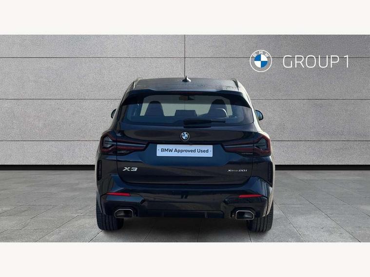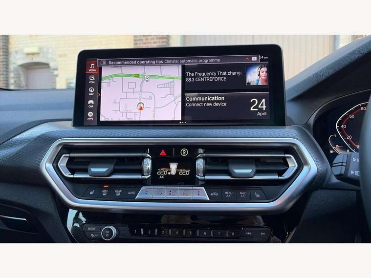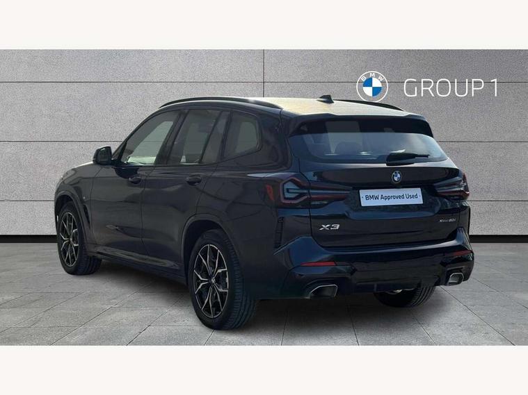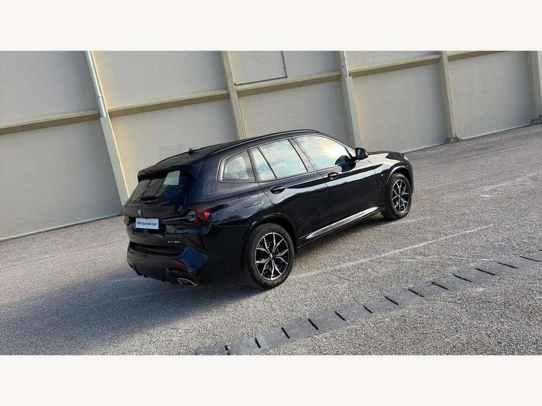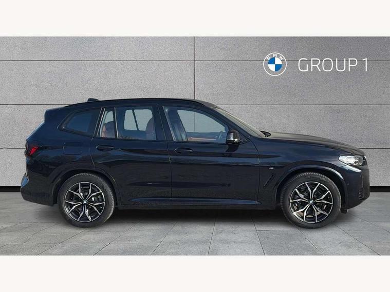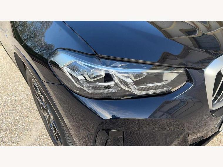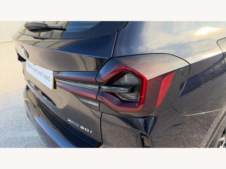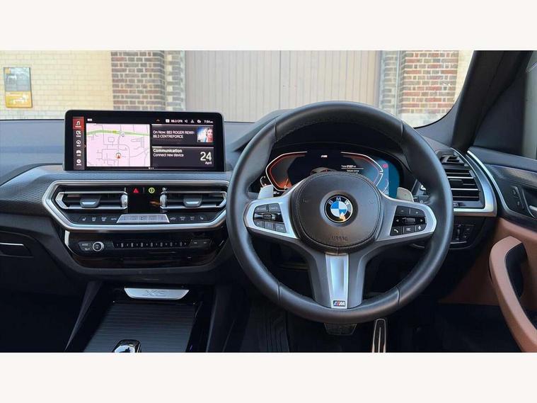 Active Guard, Attentiveness assist, BMW Live Cockpit Professional nav system including 12.3" instrument display + 12.3 high resolution control display, BMW Online services, BMW Teleservices, Brake pad wear indicator in front and rear, Check Control warning system for monitoring of lights and door/luggage compartment open warning, Condition based service - BMW service history, electronic service booklet, integrated owner's handbook, Connected drive services, Electric boot lid, Front/rear Parking distance control, iDrive touch controller with 8 favourite buttons, Instrument cluster with speedometer with mph readout, tachometer, fuel gauge and oil temperature gauge, Lights on warning by audio warning signal when ignition is switched off, Oil sensor for level and grade, warning by check control system, On board computer - average speed+fuel consumption, service interval, clock/date, odometer/trip meter, outside temperature display and ice warning, Optimum shift indicator, Personal Profile - automatic lock when driving away selectable, Run flat indicator, Stop/start system, Variable sports power steering with drive performance control Sport+ mode, Automatic transmission with gearshift paddles, Incorrect fuelling protection, M sport suspension, Multi-link rear suspension, BMW professional radio/CD/MP3, DAB tuner, Acoustic glazing, Automatic windscreen wipers and automatic headlight, Black finish on B pillars, Body colour door handles, Body colour electric adjust heated aspherical door mirrors, Body colour roof mouldings, Body coloured bumpers, Direction indicator, side repeaters, integrated in exterior mirrors, Dynamic brake lights, Exhaust tailpipes - dual, round, split left and right with chrome finisher, Fingertip control / anti-trap function on electric window, Folding wing mirrors with auto dimming, Follow me home headlights, Front and rear bumper system with replaceable deformation elements, Front and rear electric windows, Gloss chrome tailpipes finishers, Green tinted heat insulating glass, Heated windscreen washer jets, High beam assistant, High gloss black shadow line roof rails, High gloss shadowline exterior trim in decorative moulding side frame/recess cover/guide rail/B, C pillars/mirror frame and triangle with mirror base, High level 3rd brake light incorporating LED Technology, Interior rear view electrochromatic mirror with automatic anti dazzle function, LED tail lights, Lightweight engineering, M aerodynamic bodystyling, M Sport entry door sill strips, Model designation, Rain sensor, Rear side wing doors, Rear wing door, Rear wiper, Shark fin antenna, Side exterior M designation badges, Visible VIN plate, Welcome lighting, Windscreen wipers with adjustable interval, 12V power point in luggage area, 12V power socket in front centre console, 2 x USB Type C ports for charging and data transmission (front centre console) and 2 x USB Type C ports for charging (rear centre console), 3 rear headrests, 3 seat bench in 2nd row, 3 zone automatic air conditioning, 4 lashing points to secure luggage, 40:20:40 split folding rear seat with loading system, Ambient lighting, Anthracite headlining, Automatic interior light when door is opened/ignition switched off or via remote key, Floor mats in velour, Foldable storage floor with compartment, Four grab handles integrated in roof lining, Front and rear bottle holders integrated into door trim storage compartments, Front and rear side armrests integrated into door trim, Front centre armrest with storage compartment, Front footwell lights, Front head restraints, Front passenger seat, Front sports seats, Front/rear courtesy lights with soft on/off dimming, Front/rear reading lights, Heated front seats, Isofix rear child seat preparation, Leather gear knob, Lockable glove compartment, Luggage area underfloor compartment, Luggage compartment lighting, M sport leather steering wheel, Multifunction steering wheel, Parcel shelf removeable and storable under boot floor, Reach and rake adjustable steering column, Rear centre armrest with 2 cupholders, Removable / retractable luggage cover, Slope adjustable rear seats, Storage compartment in rear centre console and front/rear door trims, Sun visors with vanity mirrors and ticket pocket, Toolkit located in luggage compartment, Two front cupholders with removable oddments tray/lid, Connected pro pack - X3, ADB - Automatic Differential Brake, Anti-lock braking system (ABS) with brake assist, Automatic Stability Control (ASC), Battery safety cut-off, BMW emergency call, Brake drying, Brake energy regeneration, Braking pre-tensioning, Child locks on rear doors, Cornering brake control (CBC), Crash Sensor - activation of central locking release, hazard warning light and interior lighting, Deactivation of fuel pump in the event of a crash, Driver and front passenger front and side airbags with passenger deactivation and ITS front and rear head airbags, Driver and front passenger knee airbag, DSC+, Dynamic brake control, Dynamic Traction Control - DTC, Electromechanical parking brake, Hill descent control, Hill start assist, Seatbelt security check for front seats, Side impact protection, Three point seatbelts to all seats with front and outer rear pyrotechnic belt tensioners and seat belt force limiters, Two tone horn, Tyre pressure sensor, Ventilated front and rear disc brakes, Warning triangle and first aid kit, Central locking switch for all doors, fuel filler cap and luggage compartment, Electronic engine immobiliser, Locking wheel nuts, Remote control including two integrated key - one button for open/close all lockable content, windows and separate button for open luggage compartment, Remote control Thatcham category 1 alarm, Start/stop button with Comfort Go keyless engine start and auto Start/stop deactivation button, Low rolling resistance tyres,