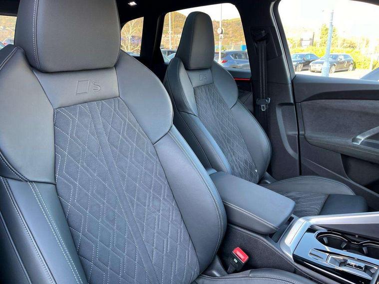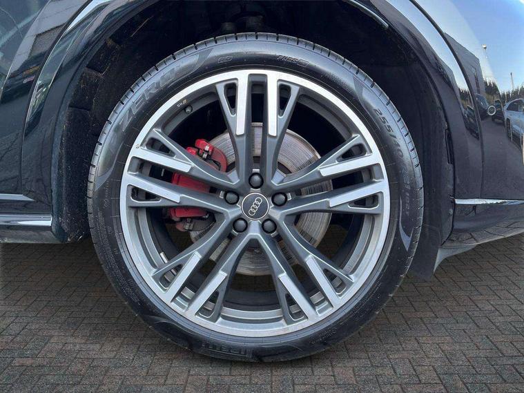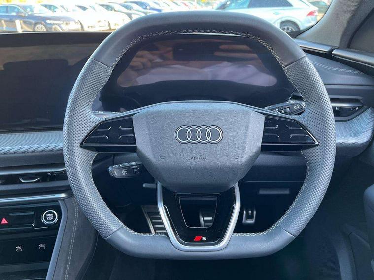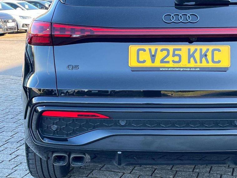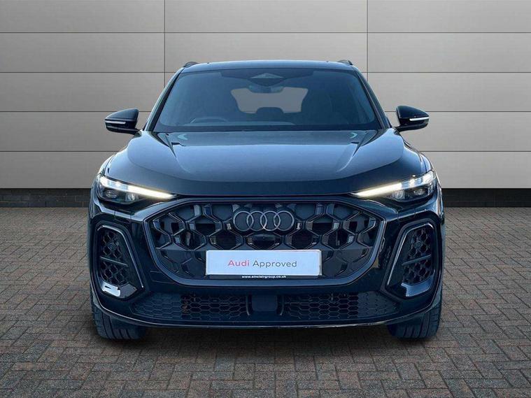 Adaptive cruise control, Advanced driver attention alert, Audi application store, Audi connect emergency call and service, Audi drive select, Audi smartphone interface, Audi virtual cockpit plus with 11.9" OLED colour display, Camera based traffic sign recognition, Fatigue monitor, Front cross traffic intersection assist, Lane change assistant with exit warning system, rear cross traffic alert and rear turn assist, Lane departure warning with emergency assist, MMI 10.9" front passenger touch display, MMI navigation plus with high resolution 14.5" OLED touchscreen colour display, Park assist plus, Parking system plus with 360 display, PAS, Reversing camera, Swerve assist and turn assist, Top view camera, Traffic sign based speed limiter, 2 USB-C ports in both the front and rear, Audi sound system impressive sound with 10 loudspeakers including centre speaker and subwoofer, 6-channel amplifier with a total output of 180 watts, DAB Digital radio, Smartphone compartment with wireless charging, Active digital light signatures - Six additional combinations of active daytime running light signature, Auto dimming rear view mirror, Black roof rails, Coming/leaving home lighting function, Electrically adjustable heated and folding + automatically dimming exterior mirrors, Exhaust tailpipes in dark chrome, Front and rear electric windows, Front door sill trims with aluminium inlays, illuminated with 'S' logo, Full body paint finish, Grill frame, inlay and front air inlets in matt anthracite chrome, Headlight cleaning system, Heated rear window, High beam assist, High gloss window surrounds, LED rear lights pro incl. dynamic rear indicators and illuminated light strip with animated coming and leaving home function, Logo projection light in exterior mirrors, Matrix LED headlights, Memory function for door mirrors, Privacy glass, Projection third brake light for rear window in LED, Radiator grille in phantom black, Rear and side windows with heat insulating glass, Rear honeycombe grille in matt black with inlay in matt anthracite chrome, Rear side wing doors, Rear wash/wipe, S Line badge on the front wings, Towbar preparation, Windscreen with acoustic glazing, 3 rear head restraints, 3 seat bench in 2nd row, 3 spoke leather steering wheel with multi-function buttons with touch control, flattened on top and bottom, with S badging and contrast stitching, 4 way electric lumbar support for driver and front passenger, 40:20:40 split folding rear seat bench with centre armrest and cup holders, Comfort centre armrest front, Deluxe 3 zone electronic climate control, Dinamica microfiber/leather upholstery, Electrically adjustable front seats with memory function for driver's side, Front and rear floor mats, Front sport seats with integrated head restraints, Headlining in black cloth, Heated front seats, i-Size child seat mounting on the front passenger side and outer rear seats, i-Size and top tether on the outer rear seats, Interior trim in aluminium look, Luggage compartment lid, electrically opening and closing, Manual steering column adjustment, Single front passenger seat, Softwrap in Dinamica, Stainless steel pedals and footrest, Steering wheel grips in perforated leather and shift paddles, Ambient lighting package plus - Q5, Black styling package plus - Q5, Storage and luggage compartment pack - Q5, 3x3 point rear seatbelts, ABS, Acoustic vehicle alerting system, Convenience key with safelock, Driver and front passenger airbag with passenger airbag deactivation, Electric child safety locks, First aid kit with warning triangle and high visibility vests, Front emergency brake assist, Front side airbags with head airbag system and front interaction airbag, Hill hold assist, Occupant detection in rear seat area, Proactive passenger protection system for front, sides and rear, Red brake calipers, Side airbags in front and rear with head airbag system and front interaction airbag, Tyre pressure loss indicator, Anti theft alarm, Anti-theft wheel bolts, Remote control key with SAFELOCK and keyless go, Accent surfaces and control buttons in gloss black, Black dashboard with contrast stitching, Steel grey seat stitching, Upper and lower interior elements in dinamica microfiber, Tyre repair kit,