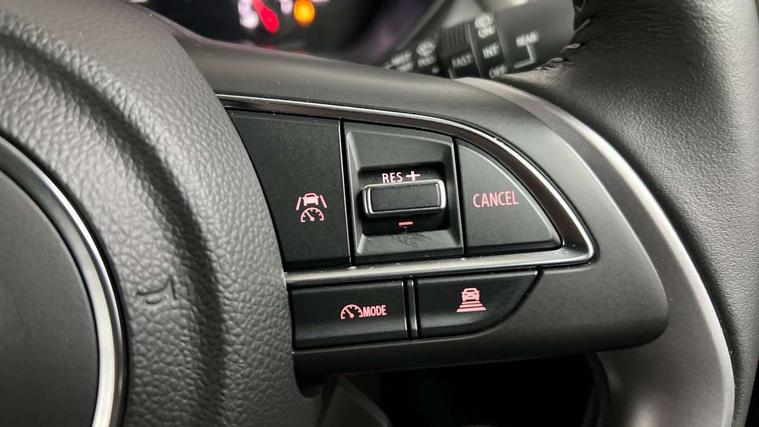 Adaptive cruise control with Stop and Go, Automatic start/stop system, Blind spot monitoring, Colour LCD information display, Digital clock, Driver monitoring system, eCall, Fuel consumption display (average/instantaneous) and range display, Intelligent speed control support, Lane departure prevention, Lane departure warning system, Lane keeping assist (LKA), Low fuel level warning light, Navigation system, Outside temperature display, PAS, Rear cross traffic alert, Rear parking camera, Rear parking sensors, Remote fuel cap release, Smartphone integration with Apple CarPlay and Android auto, Suzuki connect, Tailgate, Traffic sign recognition, Weaving alert, 4 speakers + 2 tweeters, 9-inch infotainment display, Auxiliary input socket, Bluetooth audio streaming, DAB Digital radio, Steering wheel audio controls, USB Type A and C, 'Guide me home' headlamps, 1 speed with intermittent rear wiper + washer, 2 speeds front wiper with intermittent + washer, Automatic headlights, Black coloured A & B pillars, Black Upper and lower front grille, Body colour door mirrors and handles, C pillar trim moulding, Electric door mirrors, Electric front windows, Electric rear windows, Green tinted glass, Heated door mirrors, High beam assist, LED daytime running lights, LED High mounted stop light, LED position lamps, LED projector headlamps, LED rear combination lamp, Manual headlamp level control, Rain sensor, Rear fog lights, Rear privacy glass, Rear side wing doors, Rear spoiler, Side spoiler, 1 cup holder in rear, 12V Accessory socket in front console, 2 cup holders in front, 2 Isofix seat anchors, 3 bench rear seats in 2nd row, 3 rear head restraints, 3 spoke leather covered steering wheel, 60/40 split rear seats, Accessory socket, Centre console storage, Centre lower box, Child seat tether anchorages x 2, Chrome handbrake release button, Chrome interior door handles, Cloth upholstery, Door pockets with bottle holder, Driver/passenger sunvisors with ticket holders + vanity mirrors, Front cabin lights, Front headrests, Front map light, Front passenger side assist grip, Glovebox, Heated front seats, Heater, Height adjustable driver's seat, Luggage area lamp, Manual air conditioning with digital control panel, Material door trim ornament, Parcel shelf, Passenger seat back pocket, Pollen filter, Single front passenger seat, Tilt adjustable steering wheel, Tilt/telescopic adjustable steering wheel, 3 point ELR seatbelts for centre seat, 3 point ELR seatbelts front and rear, ABS+EBD+Brake assist, Curtain airbags, Driver airbag, Dual sensor brake support, ESP + traction control, Front and rear seatbelt reminder, Front passenger airbag, Front passenger airbag deactivation, Front seatbelt pretensioners with force limiters, Hill hold control, Rear child proof door locks, Rear seatbelts with pre-tensioners and load limiters, Side airbags with incorporated into front seats, Tyre pressure indicator, Deadlocks, Freewheeling key cylinders, Immobiliser, Keyless entry and start, Light - on and Key in reminder, Locking wheel nuts, Remote central locking, Painted instrument panel ornament, 16" Painted alloy wheels,
