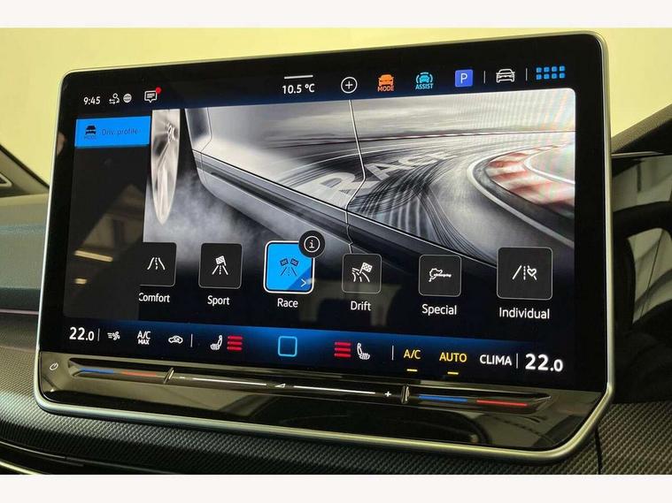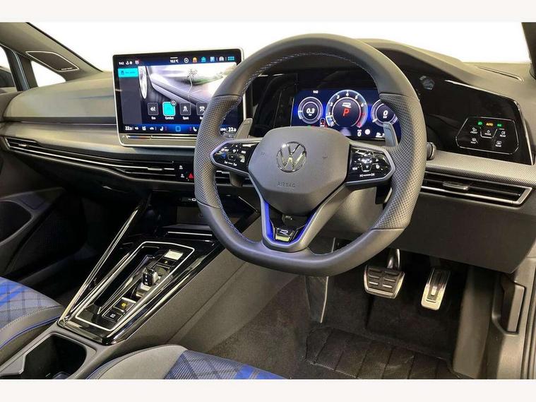 Activated carbon canister, Adaptive cruise control (ACC), Advanced driver attention and drowsiness monitor, Dynamic road sign display, E-Sim card for online connectivity, eCall emergency call system, Electronic maximum speed limit increased to 270 km/h, includes driving Modes 'drift' and 'special', larger roof spolier and GPS laptimer + G-Meter, Multi-color Digital cockpit pro, selection of different info profile possible, Multifunction front facing camera for distance control, Navigation system, Oncoming vehicle braking when turning including swerve support, Progressive steering, Side assist blind spot lane change system, rear traffic alert and exit warning system, Speed limiter, Speedo, rev counter, electronic odometer, trip, service interval display, exterior temperature and fuel gauge, Traffic jam assist, Voice enhancer and voice control, Warning signal and warning light for front and rear seatbelts not fastened, We connect plus preparation, We connect preparation, Wireless app connect, All wheel drive - 4Motion, Petrol Particulate Filter, Start-stop system with battery regeneration (recuperation - energy recovery during braking), XDS electronic differential lock for improved traction and handling, 2 USB C ports in front, 2 USB charging sockets on the centre console in the rear charging capacity upto 45W, Digital radio reception (DAB), Diversity antenna for FM reception, Gaming platform via car app, Infotainment system with 12.9" display, Mobile phone interface with inductive charging feature, 3rd brake light, Auto dimming rear view mirror, Automatic headlamp activation with Coming home and Leaving home feature, Black badge on B-pillar, Black mirror caps, Black strips on radiator grille and headlights, Body colour door handles, Darkened headlights, Darkened R Logos and VW logos in front, rear and on fender, Exterior mirrors convex on the left and aspherical on the right, Front and rear electric windows, Front fog lamps and cornering light, Heat insulating windshield made of laminated glass, Illuminated lighting animation with wake up/goodbye scenario, LED matrix headlights with ambient light V2, advanced high beam, dynamic range contol with cornering, LED rear lamp with indicator, poor weather, LED separate daytime running light, Light assist with High beam control, R name plate, Rain sensor, Rear fog light on one side and reversing lights on both sides, Rear side wing doors, Rear tinted glass 65% light absorbing from B pillar backwards, Rear windscreen washer and wiper with interval delay, Remote electrically foldable door mirrors, puddle lights and reverse activated passenger's door mirror, Welcome light with surround lighting, 12V socket in front centre console, 12V socket in luggage compartment, 3 rear head restraints, 3 seat bench in 2nd row, 30 colour ambient lighting, illuminated center console storage compartment in front, Air care climatronic 3 Zone automatic climate control with rear air conditioning control panel, Aluminium gearshift handle, Brushed stainless steel pedals, Chrome plated radiator grille inserts, air vent surrounds and light switch surrounds, Entry lights, Front + rear black carpet mats, Front centre armrest, Integrated front head restraints, ISOFIX anchors for child seats on outer rear bench seats and on front passanger seat compatible for i-Size, Luggage compartment lighting, Rear cupholder and loadthough, Single front passenger seat, Soul black instrument panel, Soul black roof lining, Split folding backrest with centre armrest and unsplit rear seat bench, Sun visors with illuminated vanity mirrors, Driver assistance pack - Golf Estate/Hatchback Auto, R styling pack - Golf, Technology park and comfort pro package - Golf Hatchback, 3 point height adj front seatbelts + pretensioners, 3 rear three point seatbelts, ABS, Autonomous emergency braking front assist with pedestrian and cyclist monitoring, Child locks on rear doors, Driver and front passenger airbag with front passenger airbag deactivation, Electronic parking brake with auto hold, ESC (Electronic Stability Control), Extended pedestrian protection measures, Front and rear black brake calipers with darkened R-logo, Hill start assist, Rear disc brakes, Two tone horn, Tyre pressure loss indicator, Volkswagen roadside assistance, Anti theft wheel bolts, Preparation for alcohol interlock, Sporty vehicle dynamics, Tool kit for tyre mobility set, Tyre mobility kit Includes 12V compressor and tyre sealant, Wheel hub cover with darkened R-logo,
