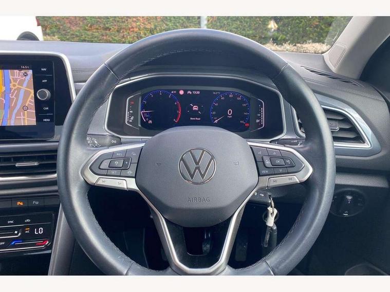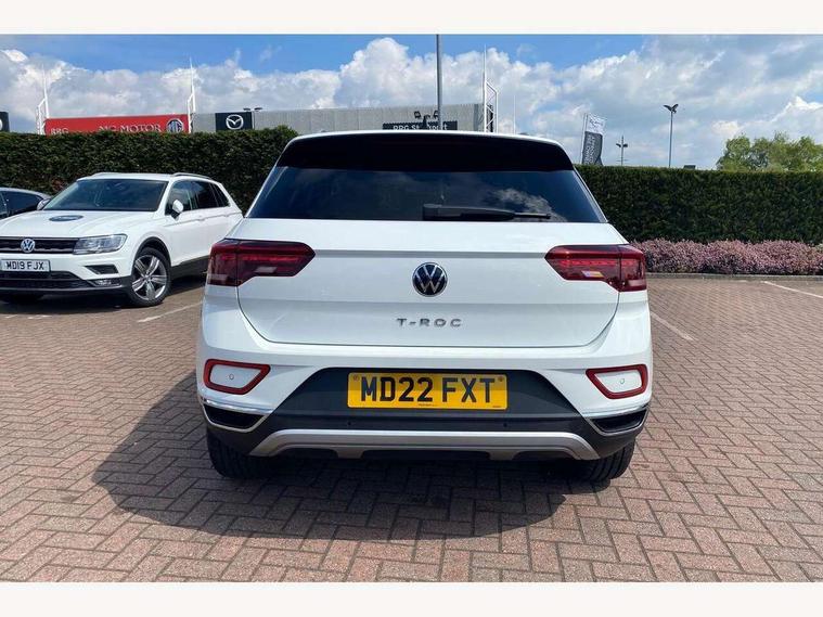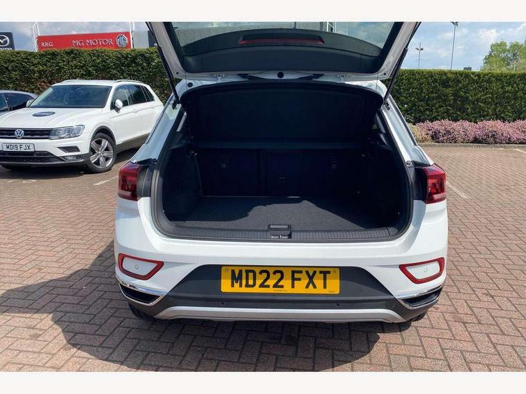 10.25" Digital cockpit pro, Bluetooth mobile phone interface, Driver alert system with fatigue detection, Driver tips and journey analysis, Emergency call service, Lane keeping system Lane Assist, Modified key software - reduce switch off time for key status change to Long no motion, Online services, Park assist including front and rear parking sensors, Service interval indicator, Tailgate/trunk lid release from outside, Think blue trainer driver tips and journey analysis, Warning sound and light for front seatbelts unfastened, Wireless app connect, Battery regeneration during braking, Start/stop function with battery regeneration, Diversity antenna for FM reception, Front and rear 6 speakers, Music playback - MP3, WMA and AAC files, Premium USB cable in choice of either Apple or Android smartphone compatibility, SD card slot, Simultaneous pairing of 2 compatible mobile devices, Title and cover art display, We Connect and We Connect Plus functionality, 3rd brake light, Auto dimming interior rear view mirror, Automatic hazard lights activation under emergency braking, Automatic headlight control with LED separate daytime running lights with coming/leaving home function, Body colour sports bumpers with silver metallic underbody fascia, Dynamic headlight range control with self adjusting whilst driving, Extended roof spoiler, Exterior mirrors aspherical on driver side, convex on front passenger side, External USB type C socket and charging sockets, Front windscreen wiper with intermittent wipe and 4 position delay, Heated rear window, LED Plus headlamps, LED rear combination lamps, LED rear number plate lights, LED tail lamp rear comination lamps, Light mode for poor weather, rain, fog or snow, Power windows with comfort operation and circuit breaker, Rain sensor, Rear exhaust tailpipe, Rear fog light on one side and reversing lights on both sides, Rear side wing doors, Rear wash/wipe with intermittent wipe setting, Remote electrically foldable door mirrors, puddle lights and reverse activated passenger's door mirror, 12V power socket in centre console, 3 rear head restraints, 3 seat bench in 2nd row, 4 load lashing points in luggage compartment, Air care climatronic air conditoning system with active combination filter and 2-zone temperature control, Chrome plated radiator grille inserts, air vent surrounds and light switch surrounds, Door and side trim panel with leatherette insert, Drawer under drivers seat, Front + rear carpet mats, Front centre armrest, Front comfort sports seats, Front cupholders x 2, Front footwell illumination, Instrument lighting, white adjustable panel illumination, Interior ambient lighting and surround lighting, Interior light delay, Isofix child seat preparation, Leather gearshift handle, LED interior light with switch off delay/dimmer and 2 front/rear LED reading lights, Load-through provision with cup holder when folded down ('Unsplit rear seat bench, split folding backrest, with centre armrest), Luggage compartment lighting, Non-folding front passenger seat backrest, Single front passenger seat, Storage compartment in left and right luggage area, Storage compartment in rear doors, Storage compartments in driver and front passenger doors, Sunvisors with illuminated vanity mirrors, Variable boot floor, height adjustable and removable, Driver assistance pack without proactive passenger protection - T-Roc, 3 point height adj front seatbelts + pretensioners, 3 point seatbelts in outer rear with ECE label, ABS, Child locks on rear doors, Driver and front passenger airbag with front passenger airbag deactivation, Driver and front passenger safety-optimised head restraints, Drivers seatbelt reminder, Electronic parking brake, Electronic Stability Control (ESC) inc EDL (Electronic Differential Lock) and ASR (Traction Control), Front and rear passengers curtain airbag system including front side airbags, Front assist with city emergency braking and pedestrian monitoring, Front seat side impact airbags, Predictive pedestrian protection, Rear disc brakes, Single tone horn, Tyre pressure loss indicator, Volkswagen roadside assistance, Alarm with interior protection, Anti-theft alarm system with interior monitoring, backup horn, and towing protection, Remote central locking with SAFELOCK, radio remote control with 2 remote control folding keys, Trims for alloy wheels,