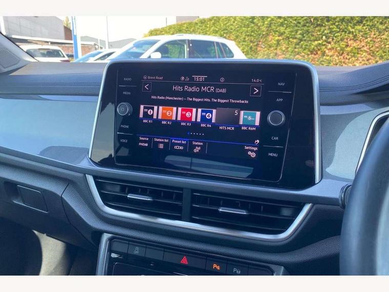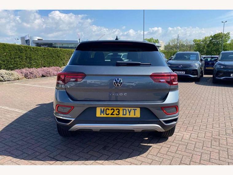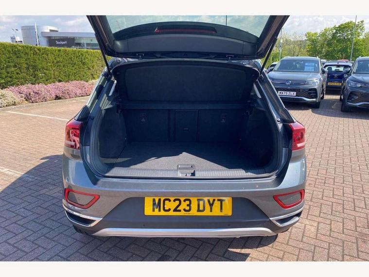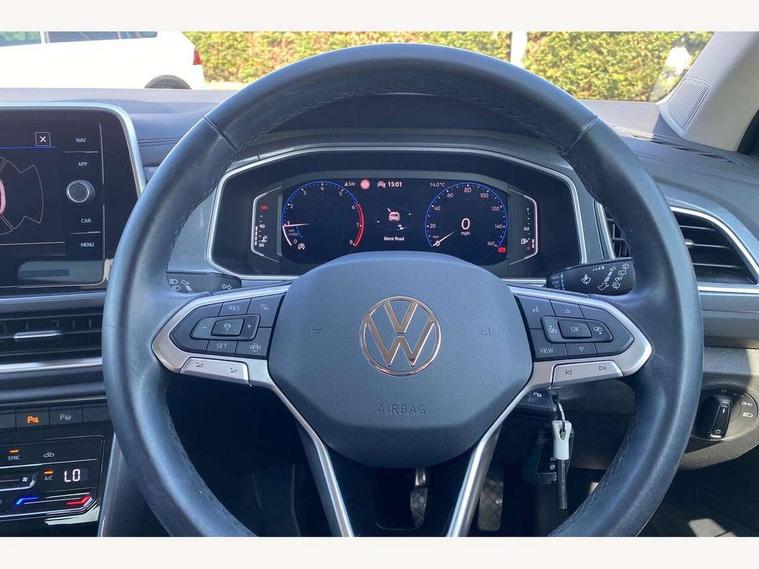 10.25" Digital cockpit pro, Bluetooth mobile phone interface, Driver alert system with fatigue detection, Driver tips and journey analysis, Emergency call service, Lane keeping system Lane Assist, Modified key software - reduce switch off time for key status change to Long no motion, Online services, Park assist including front and rear parking sensors, Service interval indicator, Tailgate/trunk lid release from outside, Think blue trainer driver tips and journey analysis, Warning sound and light for front seatbelts unfastened, Wireless app connect, Battery regeneration during braking, Start/stop function with battery regeneration, Diversity antenna for FM reception, Music playback - MP3, WMA and AAC files, Premium USB cable in choice of either Apple or Android smartphone compatibility, SD card slot, Simultaneous pairing of 2 compatible mobile devices, Title and cover art display, We Connect and We Connect Plus functionality, 3rd brake light, Auto dimming interior rear view mirror, Automatic hazard lights activation under emergency braking, Automatic headlight control with LED separate daytime running lights with coming/leaving home function, Body colour sports bumpers with silver metallic underbody fascia, Dynamic headlight range control with self adjusting whilst driving, Extended roof spoiler, Exterior mirrors aspherical on driver side, convex on front passenger side, External USB type C socket and charging sockets, Front windscreen wiper with intermittent wipe and 4 position delay, Heated rear window, LED rear combination lamps, LED rear number plate lights, LED tail lamp rear comination lamps, Light mode for poor weather, rain, fog or snow, Power windows with comfort operation and circuit breaker, Rain sensor, Rear exhaust tailpipe, Rear fog light on one side and reversing lights on both sides, Rear side wing doors, Rear wash/wipe with intermittent wipe setting, Remote electrically foldable door mirrors, puddle lights and reverse activated passenger's door mirror, 12V power socket in centre console, 3 rear head restraints, 3 seat bench in 2nd row, 4 load lashing points in luggage compartment, Air care climatronic air conditoning system with active combination filter and 2-zone temperature control, Chrome plated radiator grille inserts, air vent surrounds and light switch surrounds, Door and side trim panel with leatherette insert, Drawer under drivers seat, Front + rear carpet mats, Front centre armrest, Front comfort sports seats, Front cupholders x 2, Front footwell illumination, Instrument lighting, white adjustable panel illumination, Interior ambient lighting and surround lighting, Interior light delay, Isofix child seat preparation, Leather gearshift handle, LED interior light with switch off delay/dimmer and 2 front/rear LED reading lights, Load-through provision with cup holder when folded down ('Unsplit rear seat bench, split folding backrest, with centre armrest), Luggage compartment lighting, Non-folding front passenger seat backrest, Single front passenger seat, Storage compartment in left and right luggage area, Storage compartment in rear doors, Storage compartments in driver and front passenger doors, Sunvisors with illuminated vanity mirrors, Variable boot floor, height adjustable and removable, Driver assistance pack without proactive passenger protection - T-Roc, 3 point height adj front seatbelts + pretensioners, 3 point seatbelts in outer rear with ECE label, ABS, Child locks on rear doors, Driver and front passenger airbag with front passenger airbag deactivation, Driver and front passenger safety-optimised head restraints, Drivers seatbelt reminder, Electronic parking brake, Electronic Stability Control (ESC) inc EDL (Electronic Differential Lock) and ASR (Traction Control), Front and rear passengers curtain airbag system including front side airbags, Front assist with city emergency braking and pedestrian monitoring, Front seat side impact airbags, Predictive pedestrian protection, Rear disc brakes, Single tone horn, Tyre pressure loss indicator, Volkswagen roadside assistance, Anti-theft alarm system with interior monitoring, backup horn, and towing protection, Remote central locking with SAFELOCK, radio remote control with 2 remote control folding keys, Trims for alloy wheels,