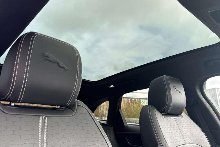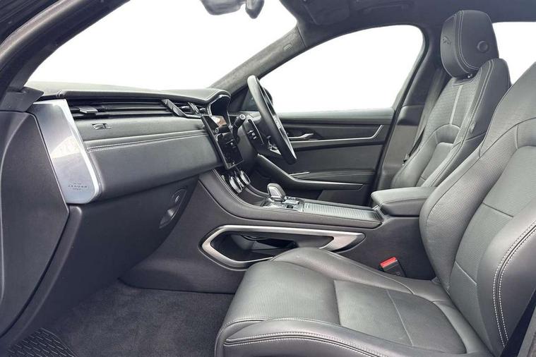 11.4" touchscreen, Adaptive cruise control with steering assist, Android Auto, Apple car play, Blind spot assist, Bluetooth connectivity, Clear exit monitor, Driver alert system, Driver condition monitor, eCall emergency call system, Eco driving style assistant, Electric power assisted steering, InControl remote, Interactive driver display digital with 12" TFT display, Jaguar Toggle shift selector, Lane departure warning system, Lane keep assist, Outside temperature gauge, Personalisation profile management, Pivi pro connected navigation system with app interface and media storage, Pro services and wifi hotspot, Push button starter, Rear collision monitor, Rear traffic monitor, Service interval indicator, Speed proportional steering, Start up sequence with movement in dials and lighting, Traffic sign recognition with adaptive speed limiter, Trip computer, Voice control system, Wireless device charging, 8 speed automatic transmission, Adaptive dynamics, All terrain progress control, All Wheel Drive (AWD), Configurable dynamics, Open differential with torque vectoring by braking, AM/FM radio, Bluetooth streaming, DAB Radio (Digital Audio Broadcasting), Dynamic volume control, InControl apps, InControl protect, iPod integration, 3 flash lane change indicators, AHBA and animated directional indicators, Approach Illumination, Auto dimming rear view mirror, Automatic headlights, Electric heated/power fold memory door mirrors with approach lights and auto dimming driver side, Electric windows with one touch open/close and anti trap, F-Pace and R Dynamic badge, Green tinted glass, Heated front windscreen + heated washer jets, Heated rear window with timer, Illuminated metal tread plates with Jaguar script, Jaguar script and leaper, LED High level third brake light, LED tail lights, Metal load space scuff plates, Non acoustic front windscreen, Privacy glass (rear side windows and rear screen), R Dynamic badge on side door, Rain sensor windscreen wipers, Rear fog lights, Rear metal tread plates, Rear side wing doors, Rear wiper, Trailer stability assist, Variable front intermittent wipers, 12V power point front, 3 rear headrests, 3 seat bench in 2nd row, Additional power sockets - Two additional USB sockets in rear centre console and one 12V socket in trunk, Air distribution speed, Bright metal foot pedals, Centre armrest console, Centre console with side storage, Configurable cabin lighting, Deletion loadspace storage rails, Door sill tread plates, Ebony suede cloth headlining, Electrically adjustable steering column, Fold flat front seats, Front centre armrest with storage compartment, Front door storage space, Glovebox finisher with jaguar script, Heated steering wheel, Hooks in loadspace, Illuminated glovebox, Interior front door handles with separate locking switches, ISOFIX on outer rear seats, Jaguar sense, Leather steering wheel, Luggage tie downs in loadspace, Mist sensing, Multifunction steering wheel, Overhead lighting console, Overhead stowage for sunglasses, Passive front head restraints, Premium carpet mats, Rear air vents, Rear armrest with twin cupholders, Rear centre headrest, Rear door storage space, Reversible boot floor, Satin chrome gearshift paddles, Shopping bag hook, Single front passenger seat, Sunvisors with illuminated vanity mirrors, Twin front cupholders with cover, Online Pack with data plan - F-Pace, 355mm front brakes and 325mm rear brakes, 3x3 point rear seatbelts, ABS, All surface progress control (ASPC), Brake pad warning light, DSC - Dynamic Stability Control, Electric parking brake (EPB), Emergency brake assist, Front airbags with passenger seat occupant detector, Front and rear seatbelt reminder, Front side airbags, Full length side window curtain airbag, Hill launch assist, Power operated child locks, Traction control, Tyre pressure monitoring system, Immobiliser, Keyless entry, Keyless Start, Locking wheel nuts, Perimeter alarm, Remote central locking, Valet mode,