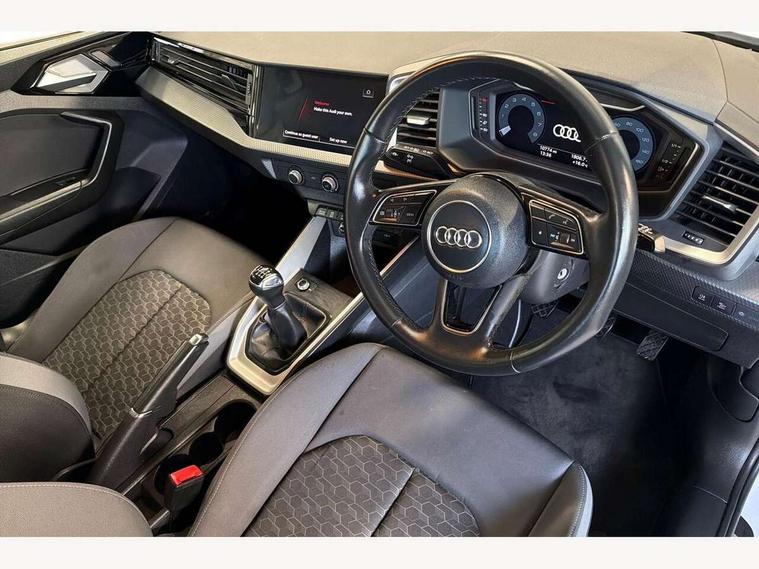 10.25" Digital instrument cluster display classis style instrument dials + speed, odometer, time, outside temperature, telephone menu + fuel level warning, Audi connect safety emergency and service including E-call, Audi drive select - power steering assistance + engine, Audi smartphone interface with connect compatible smartphone via USB directly MMI display + Nav, music, third party apps controlled via MMI controller, Automatic start/stop system, Bluetooth interface, Cruise control, Driver's information system, Electromechanical power steering, Emergency services call system, Lane departure warning system, Service interval indicator, Speed limiter, Voice control system, Washer fluid level indicator, Dynamic suspension, 1 x SDXC card reader, 2 x USB type C connection points, DAB Digital radio, MMI radio plus with 8.8" colour MMI display screen and MMI touch, Auto dimming rear view mirror, Body coloured bumpers, Body coloured door mirrors, Electric front and rear windows, Electrically adjustable, heated, folding door mirrors with integrated LED side indicator, Front side air inlets in grained matt black and C frame in titanium black, Heat insulating glass windscreen and side windows, Heated rear windscreen, High level LED brake light, LED headlights with LED rear lights + dynamic rear indicators + headlight adjustment and high beam, turning light + LED daytime running lights, Radiator grille and rear diffuser in matt titanium black, Radiator protective grille frame in matt aluminium silver, Rain and light sensors, Rear fog lights, Rear side wing doors, Rear wing door, Rear wiper, Side front spoiler lips in grained matt black, 12V socket in centre console with two cup holders, 3 rear seats with headrests, 3 seat bench in 2nd row, 40:60 Split folding rear seat or folded fully, Door sill trims with aluminium inlay, Driver and passenger seat with manual height adjust with forward and backwards adjustment, Front head restraints, Front passenger seat, Front/rear floor mats, Height and reach adjustable steering wheel, ISOFIX child seat mounting for front passenger and outer rear seats including top tether attachment point of outer rear seats, Leather gear knob with aluminium trim, Leatherette handbrake grip, Luggage compartment light with front and rear reading lights, Manually adjustable lumbar support in front seats, Novum cloth upholstery with front sport seats, Titanium grey cloth headlining, Luggage compartment pack - A1, 3x3 point rear seatbelts, Audi pre-sense front with pedestrain and cyclist recognition, Brake assist function, Driver and front passenger airbag with front side and head airbags, Electronic Stability Control including ABS, EBD, ASR and EDL, Front passenger airbag deactivation switch, Hill hold assist, Manual rear child locks, Seatbelt height adjustment for front seats, Seatbelt monitoring, Tyre pressure warning light, Warning triangle and first aid kit, Anti theft alarm, Anti theft wheel bolts and loose wheel warning, Immobiliser, Remote central locking with 2 foldaway keys, Aluminium trim for control switches, air vents and digital instrument cluster, Silver grey accent areas including air vents, door handle recesses and centre console in diamond paint finish, Slate grey inlays polygon structure in fine paint finish,