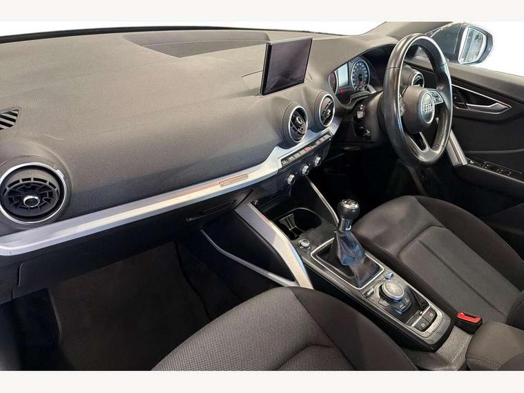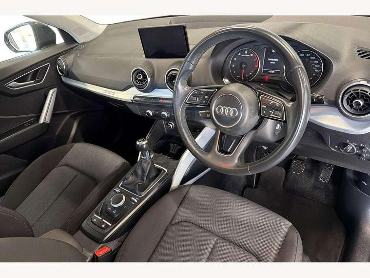 Audi drive select, Audi smartphone interface, Automatic start/stop system with recuperation, Bluetooth interface includes bluetooth audio streaming, Cruise control, MMI - Multi Media Interface control system, MMI SD card integrated nav with 3D map display, dynamic route guidance with TMC, MMI search, natural voice recognition and myAudi special destinations, Power operated tailgate, Progressive steering, Service interval indicator, Dynamic suspension, 2 x SDXC card reader, Audi music interface - apple iPod, apple iPhone, USB storage media, compatible MP3 players, 2 x USB charging points and 1 x Aux-in, CD Drive, DAB digital radio and AM/FM radio, MMI radio plus with 7" colour MMI screen and MMI controller, Air inlet in manhattan grey metallic, Black window trims, Body colour door mirrors, Chrome exhaust tailpipe, Electrically adjustable and heated door mirrors with integrated LED side indicators, Front and rear electric windows, Front underbody guard and rear diffuser trim in selenite silver, Front windscreen with grey tinted sunband, Halogen headlights including headlight range adjustment, High gloss black radiator grille, Interior mirror, LED indicator lights, Manual folding door mirrors, Rain and light sensors, Rear wiper, Side skirts in manhattan grey, Wheel arch trims in manhattan grey, 60/40 split folding rear seat bench, Door sill trims with aluminium inlay, Electronically operated child locks, Front centre armrest, Front headrests, Front sports seats, Front/rear floor mats, Height/reach adjust steering wheel, ISOFIX child seat mounting for front passenger with airbag deactivation and outer rear seat including top tether attachment point for outer rear seats, Manual seat adjustment including seat height adjustment for front seats, Storage compartments - Glovebox, cupholder compartment in centre console, storage compartment in rear centre console, front and rear door pockets, Three rear headrests, Titanium grey cloth headlining, Non smoking pack - Q2, 3x3 point rear seatbelts, 6 airbags - Front, curtain and front side airbags, Electromechanical parking brake, Electronic stabilisation control including ABS, ASR and EDL, Extended and proactive pedestrian protection, Hill hold assist, Multi collision brake assist, Pre-sense front with pedestrian recognition, Seatbelt monitoring, Tyre pressure warning light, Warning triangle and first aid kit, Anti theft alarm, Anti theft wheel bolts, Central locking system with remote control key, Aluminium interior element,