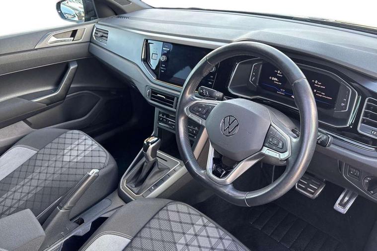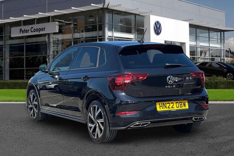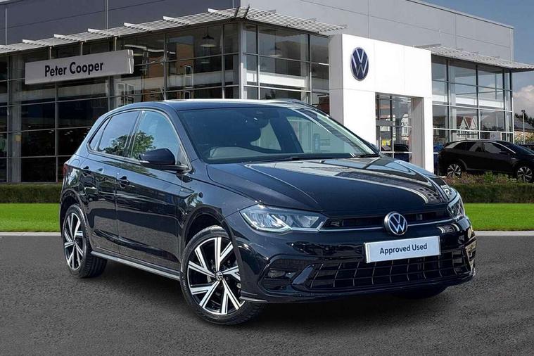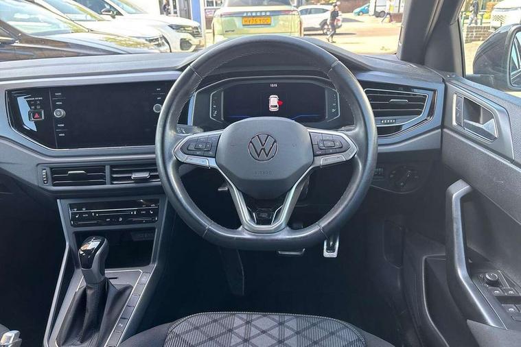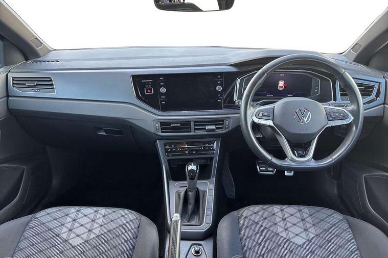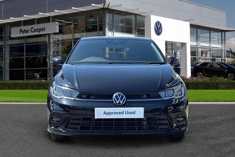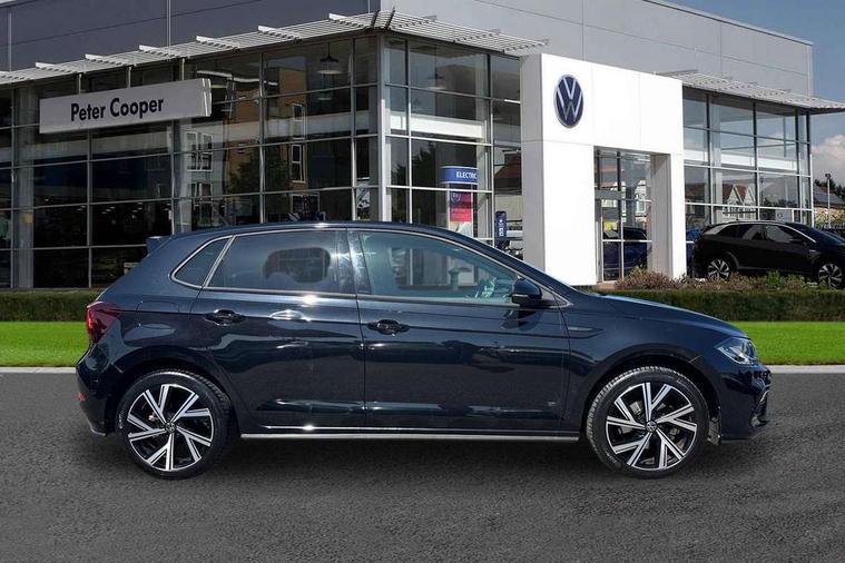 Adaptive cruise control with follow-to-stop and speed limiter, Bluetooth mobile phone interface, Digital Cockpit Pro with 10.25" Display, Driver alert system, Dynamic road sign display, Emergency call service, Power assisted speed sensitive steering, Preparation for We connect and We connect plus, Speedo and rev counter, electronic odometer, trip, service interval display and fuel gauge, Standard rear axle, Travel Assist - Lane keeping system and traffic jam assist, Travel assist including emergency assist, Trip computer, Warning signal and warning light for front and rear seatbelts not fastened, Washer fluid level indicator, Wireless app connect, Front wheel drive, Rear shock absorpion, Start-stop system with battery regeneration (recuperation - energy recovery during braking), DAB Digital radio, Diversity antenna for FM reception, Front and rear 6 speakers, Body colour bumpers, Body colour door handles, Body colour door mirrors, Electric front windows, Front scuff plates with R-Line logo, Heat insulating darkened glass in side and rear windows, Heat insulating glass windscreen, Power folding adjustable/heated exterior mirrors and front passenger exterior mirror lowering function, Rear electric windows, Rear fog light, Rear side wing doors, Rear tinted glass from B-pillar backwards approx 65% tinted, Rear windscreen washer and wiper with interval delay, Third brake light, 12V power socket in centre console, 2 USB-C ports in the front, 2 USB-C charging sockets on the center console in the rear, 3 rear head restraints, 60/40 split folding rear seat and rear seat bench not split, Air care climatronic air conditoning system with active combination filter and 2-zone temperature control, Black roof lining, Ceramique headliner, Chrome plated radiator grille inserts, air vent surrounds and light switch surrounds, Door and side trim panel, Driver and front passenger seat height adjustment, Driver/passenger sunvisors with illuminated vanity mirrors, Front + rear carpet mats, Front centre armrest, Front footwell illumination, Front seat backrest storage pockets, Front sports comfort seats, Handbrake lever handle in leather, Isofix child seat preparation easy-fit (for two outer rear seats, and front passenger seat) compatible with I-size, Karoso artvelours cloth upholstery, Leather trimmed gear knob, LED interior light with switch off delay and dimmer, 2 reading lights front and rear, Luggage compartment cover, Luggage compartment floor, Luggage compartment lighting, Lumbar adjustment for front seats, Single front passenger seat, Stainless steel pedals, Standard pedal cluster, Three spoke leather wrapped multifunction steering wheel with shifting paddles, Light and sight pack - Polo R-Line/Black Edition, 3 point height adj front seatbelts + pretensioners, 3x3 point rear seatbelts, ABS, Driver and front passenger airbag with front passenger airbag deactivation, Drivers and front passengers safety optimised head restraints, ESC (Electronic stability control) + EDL (Electronic Differntial lock) and ASR (Traction control), Extended and predictive pedestrian/ cyclist protection, Front curtain and side airbags with center airbag, Front/rear disc brakes, Hill hold control, Manual child lock in rear doors, Single tone horn, Tyre pressure loss indicator, Alarm with interior protection, Anti-theft alarm system with interior monitoring, backup horn, and towing protection, Anti-theft wheel bolts, Electronic engine immobiliser, Chrome applications on rotary light, mirror adjustment, window regulator switches, outlet with frame in black, Dark grey anodised matt decorative inserts in dash and front door panels, Low rolling resistance tyres,