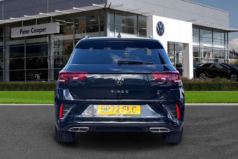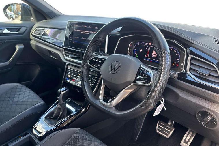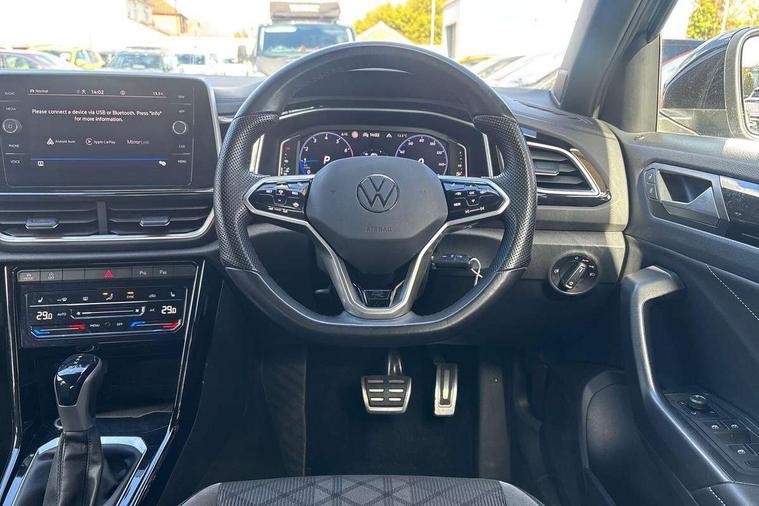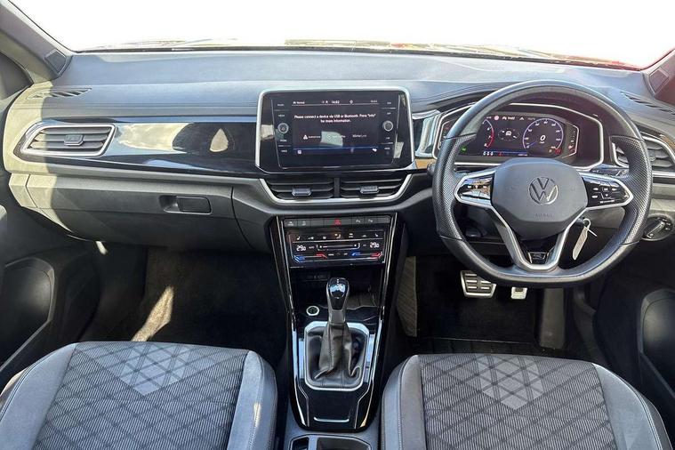 10.25" Digital cockpit pro, Bluetooth mobile phone interface, Driver alert system with fatigue detection, Driver tips and journey analysis, Emergency call service, Lane keeping system Lane Assist, Modified key software - reduce switch off time for key status change to Long no motion, Online services, Park assist including front and rear parking sensors, Service interval indicator, Tailgate/trunk lid release from outside, Think blue trainer driver tips and journey analysis, Warning sound and light for front seatbelts unfastened, Wireless app connect, Battery regeneration during braking, Start/stop function with battery regeneration, Diversity antenna for FM reception, Front and rear 6 speakers, Music playback - MP3, WMA and AAC files, Premium USB cable in choice of either Apple or Android smartphone compatibility, SD card slot, Simultaneous pairing of 2 compatible mobile devices, Title and cover art display, We Connect and We Connect Plus functionality, 3rd brake light, Auto dimming interior rear view mirror, Automatic hazard lights activation under emergency braking, Automatic headlight control with LED separate daytime running lights with coming/leaving home function, Extended roof spoiler, Exterior mirrors aspherical on driver side, convex on front passenger side, External USB type C socket and charging sockets, Front windscreen wiper with intermittent wipe and 4 position delay, Heated rear window, LED Plus headlamps, LED rear combination lamps, LED rear number plate lights, LED tail lamp rear comination lamps, Power windows with comfort operation and circuit breaker, R-Line design body coloured bumpers, Rain sensor, Rear exhaust tailpipe, Rear fog light on one side and reversing lights on both sides, Rear side wing doors, Rear wash/wipe with intermittent wipe setting, Remote electrically foldable door mirrors, puddle lights and reverse activated passenger's door mirror, 12V power socket in centre console, 3 rear head restraints, 3 seat bench in 2nd row, 4 load lashing points in luggage compartment, Air care climatronic air conditoning system with active combination filter and 2-zone temperature control, Black roof lining, Chrome plated radiator grille inserts, air vent surrounds and light switch surrounds, Door and side trim panel with leatherette insert, Drawer under drivers seat, Front + rear carpet mats, Front centre armrest, Front cupholders x 2, Front footwell illumination, Front reading light, Front scuff plates with R logo, Instrument lighting, white adjustable panel illumination, Interior ambient lighting and surround lighting, Interior light delay, Isofix child seat preparation, Leather gearshift handle, Load-through provision with cup holder when folded down ('Unsplit rear seat bench, split folding backrest, with centre armrest), Luggage compartment lighting, Single front passenger seat, Stainless steel pedals, Storage compartment in left and right luggage area, Storage compartment in rear doors, Storage compartments in driver and front passenger doors, Sunvisors with illuminated vanity mirrors, Variable boot floor, height adjustable and removable, Driver assistance pack without proactive passenger protection - T-Roc, 3 point height adj front seatbelts + pretensioners, 3 point seatbelts in outer rear with ECE label, ABS, Child locks on rear doors, Driver and front passenger airbag with front passenger airbag deactivation, Driver and front passenger safety-optimised head restraints, Drivers seatbelt reminder, Electronic parking brake, Electronic Stability Control (ESC) inc EDL (Electronic Differential Lock) and ASR (Traction Control), Front and rear passengers curtain airbag system including front side airbags, Front assist with city emergency braking and pedestrian monitoring, Front seat side impact airbags, Hill start assist, Predictive pedestrian protection, Rear disc brakes, Single tone horn, Tyre pressure loss indicator, Volkswagen roadside assistance, Alarm with interior protection, Anti-theft alarm system with interior monitoring, backup horn, and towing protection, Remote central locking with SAFELOCK, radio remote control with 2 remote control folding keys, Trims for alloy wheels,