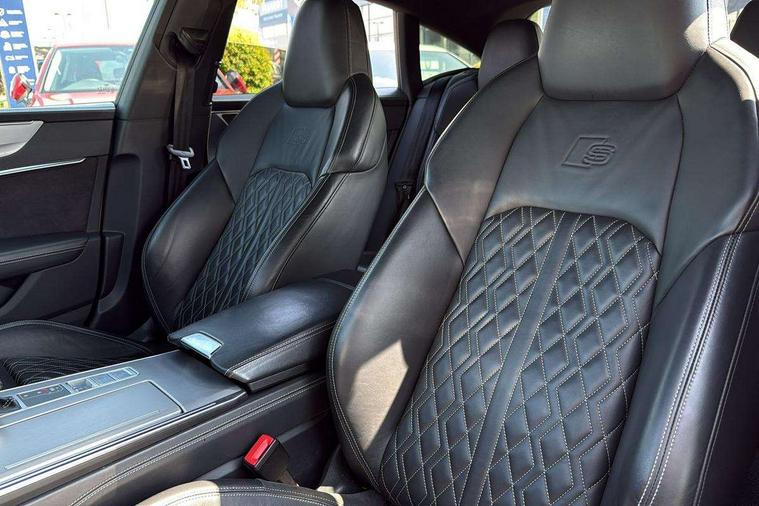 Audi connect safety and service (e-call), Audi drive select, Audi parking system plus - acoustic and visual park assist system for front and rear, Audi phone box with wireless charging, Audi smartphone interface, Audi virtual cockpit - 12.3" high resolution LCD digital instrument cluster display, Automatic start/stop system with coasting functionality, Colour driver's information system display, Electric boot lid release, Lane departure warning system, MMI nav plus with MMI touch + 10.1" and 8.6" HD haptic touch screen/3D city models/country information/online map/route info and personal route assist, Operating buttons in black gloss, Power operated tailgate, Rear view camera, Service indicator, Voice control system, 24 litre AdBlue tank, 73 litre fuel tank, Diesel particulate filter, Audi music interface - 2 USB ports with charger and data functions, Audi sound system with 6 channel amplifier, 180 watt amplifying capacity and 10 loudspeakers including subwoofer, Auxiliary input socket, DAB digital radio module, Aluminium exterior mirror housings, Audi Beam uses LEDs to project the Audi Sport logo, Body colour S specific rear diffuser, Coming/leaving home animations in front and rear, Electrically adjustable, heated and folding door mirrors with driver memory function and integrated LED indicators, Frameless auto dimming interior rear view mirror, Front and rear electric windows, HD Matrix LED headlights with dynamic front and rear indicators, Headlight washers, Heat insulating darkened glass in side and rear windows, High gloss black radiator grille with chrome single frame surround, LED rear lights, Privacy glass with dark tinting on rear side windows and rear window, Rain and light sensors, Retractable rear boot spoiler, S air inlet in titanium black, S front and rear bumpers, S Line badge on front fender, S line badge on front grille, S Line side skirts, Signature LED daytime running lights, Windscreen with acoustic glazing, 4 zone deluxe automatic climate control, 4-way electric lumbar support, 40/20/40 split folding 3 seater rear seat bench with rear centre armrest, Aluminium gear knob, Black cloth headlining, Electrically adjustable front seats - driver seat with memory, Front and rear headrests, Front centre armrest, Heated front seats, Height/reach adjust steering wheel, Illuminated door sill trims with S logo, Illuminated sun visors with vanity mirrors, ISOFIX child seat mounting and Top Tether with front passenger airbag deactivation, Leatherette upper instrument panel and door shoulders, S line front and rear floor mats with contrast stitching, Stainless steel pedals and foot rest, Tool kit and car jack, Valcona leather upholstery with diamond stitching and super sport seats S embossed logo, LED interior ambient lighting pack - A7, Non smoking pack - A7, Storage pack - A7, 3 point seatbelts on all seats, Audi pre-sense front, Driver and passenger airbags, Electromechanical parking brake, Electronic stabilisation control including ABS, ASR and EDL, Extended pedestrian protection measures, Hill hold assist, Seatbelt monitoring, Tyre pressure warning light, Warning triangle and first aid kit, Anti theft alarm with tow away protection, Anti-theft wheel bolts and wheel loosening detection, Immobiliser, Keyless Go, Preparation for tracking system, Remote central locking,