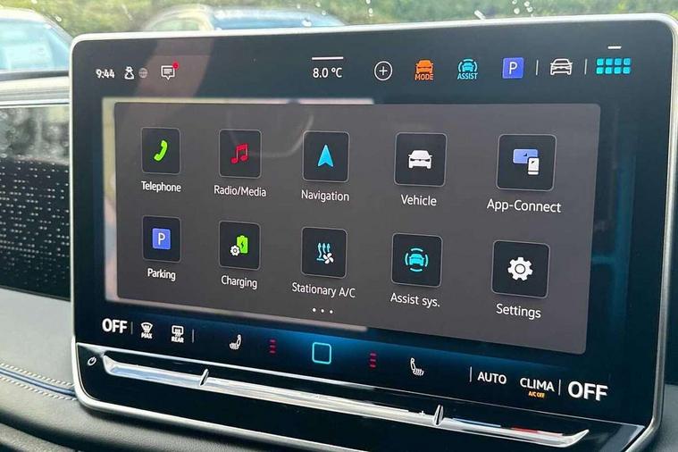 Adaptive cruise control (ACC), Advanced driver attention and drowsiness monitor, Bluetooth mobile phone interface, Digital Cockpit Pro - 10.25" high resolution dash display screen with customisable menus and information, Driving profile selection, Dynamic road sign display, E-Sim card for online connectivity, Easy Open and Close Electric tailgate with virtual pedal activation, eCall emergency call service, Extended safety system (proactive passenger protection system), Front Assist - Autonomous emergency braking with pedestrian and cyclist monitoring, IDA voice assistance with ChatGPT, Inductive smartphone charging without external antenna connection, Lane change system, Side assist, Rear traffic alert and Exit warning system, Multifunction front facing camera, Navigation system, Oncoming vehicle braking when turning including swerve support, Park assist plus with park distance control, Power assisted steering with speed sensitive, Progressive steering, Start/stop system with regenerative braking, Tailgate/trunk lid unlocking from outside, Warning signal and warning light for front and rear seatbelts not fastened, Wireless App-Connect, Adaptive chassis control DCC pro includes driving mode selection, Charging cable Mode 2 Type 2 / G (10A), Charging cable Mode 3 Type 2 / 3 (32A), Front shock absorption G08, Front wheel drive, Rear shock absorption, 12.9" infotainment display, Digital radio reception (DAB), Diversity antenna for FM reception, 3D rear combination light special signal pattern, Ambient lighting with logo projection, Auto dimming interior rear view mirror, Automatic headlight control system, Body coloured door handles, Chrome moldings on the side windows, Coming/leaving home lighting function, Dynamic headlight range control with dynamic cornering light, Exterior mirrors convex on the left and aspherical on the right, Heat insulating glass in side and rear windows, Heat insulating windshield, High Beam Assist, automatic sensing for switching between dipped and main beam, High level 3rd brake light, Highway light, Illuminated door handle recesses, Illuminated lightline between headlamps, Illuminated logo front and rear, Laminated safety glass windshield, LED headlamps, LED separate signature day time running light, Poor weather light, Rain sensor windscreen wipers, Rear fog light on one side, reversing light on both sides, Rear side wing doors, Rear wiper, Remote electrically foldable door mirrors, puddle lights and reverse activated passenger's door mirror, 12V outlet in center console rear and in luggage compartment, 12V socket in centre console, 2 USB-C ports in the front, 2 USB-C charging sockets on the centre console in rear, charging capacity up to 45 W, 3 bench rear seats in 2nd row, Air care climatronic 3 zone air conditioning system with rear air conditioning control panel, Black roof lining, Brushed stainless steel pedals, Carpet mats, front and rear, Centre console with illuminated storage compartment with sliding cover and two drinks holders, Chrome elements on the mirror switch and power window switches and door pulls, Door and side trim panel insert in Art velour, Drivers seat with manual adjustment of seat travel and height and backrest angle with thigh support longitudinally sliding, Front centre armrest, Front integrated head restraints, Front massage seats, Front scuff plates in aluminium, Front seats with manual height adjustment, Greyson sports cloth upholstery with inner side bolsters in artvelours, Interior ambient lighting with 30 colour options, ISOFIX anchors for child seats on outer rear seats and front passenger seat compatible with i-Size, Leather wrapped heated multifunction steering wheel with touch control and paddle shift, Mechanical rear seat release, Power adjustable lumbar support in front, Rear bench seat, split folding, longitudinally movable and folding with load-through hatch and centre armrest, Safety optimised front head restraints, Single front passenger seat, Sports comfort seats in front, Sun visors with illuminated vanity mirrors, Three rear head restraints, 3 point seat belt for centre rear seats, 3 Point seat belts in front with pretensioners, 3 point seatbelts in outer rear with ECE label, Driver and front passenger airbag with front passenger airbag deactivation, Electronic parking brake with auto hold, First aid kit with warning triangle and safety vest, Front and rear curtain airbags, Front centre airbag, Front disc brakes, Hill start assist, Manual child proof rear door locks, Rear disc brakes, Rear side airbags, Two tone horn, Tyre pressure monitoring system, Alarm with interior protection, Central locking system keyless entry, Interior door handle in matte chrome, Soul instrument panel, Tyre mobility kit including compressor and sealing foam,