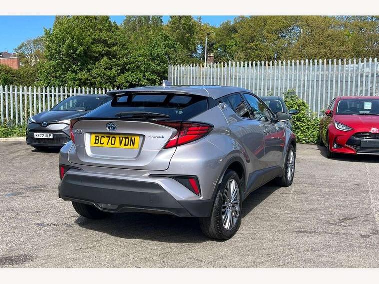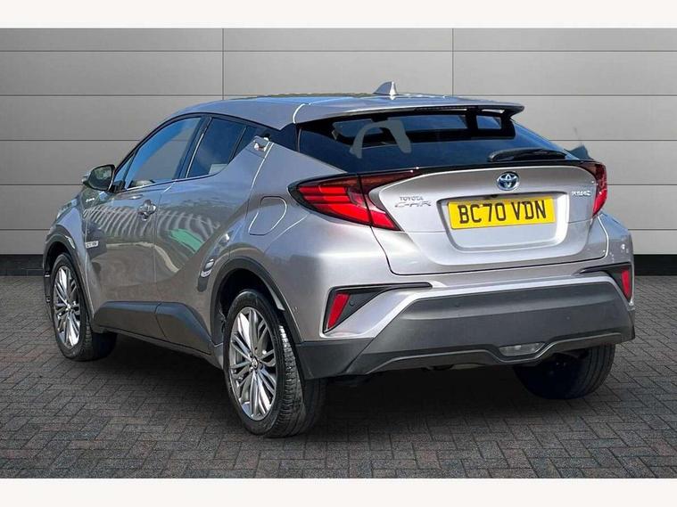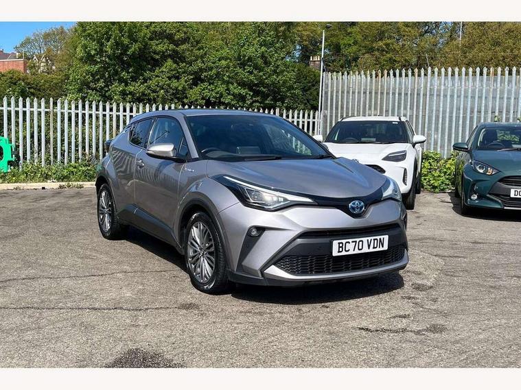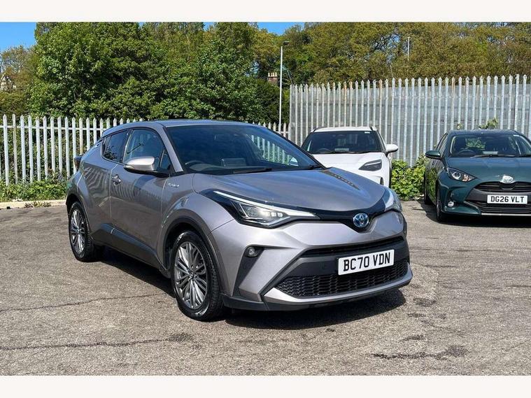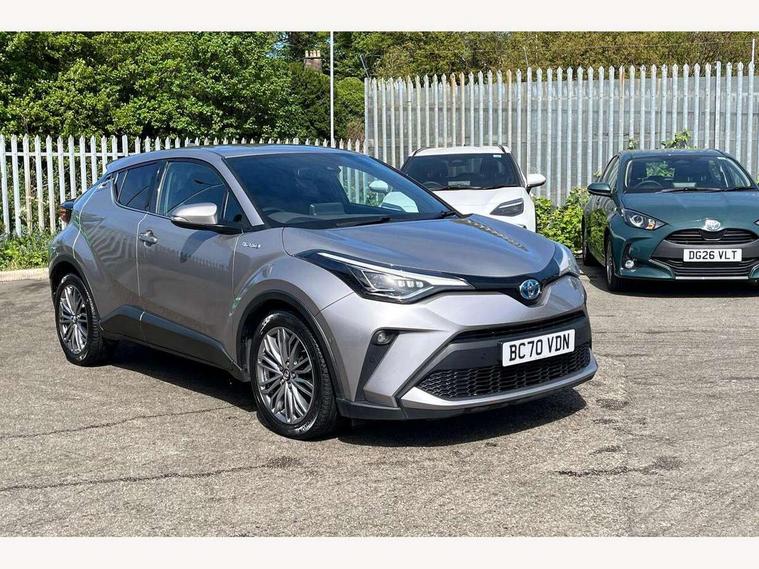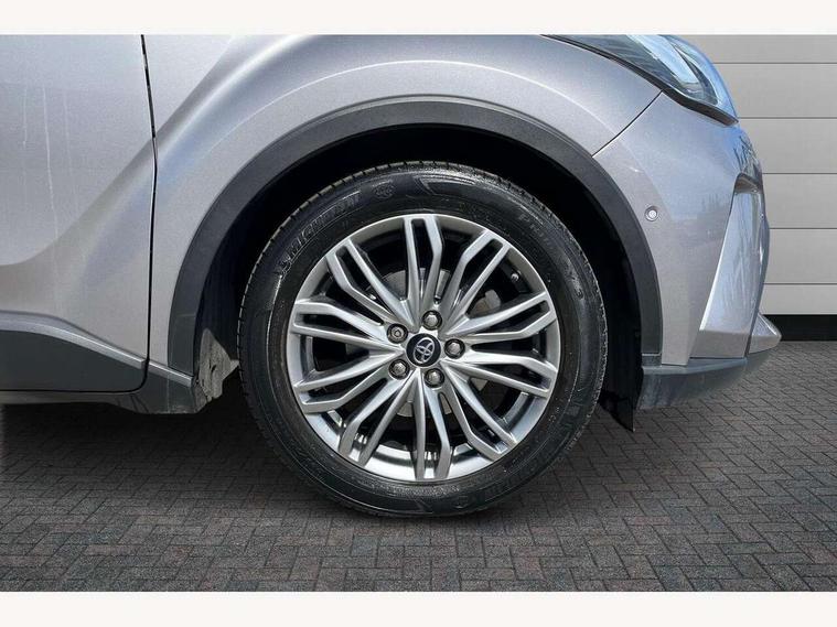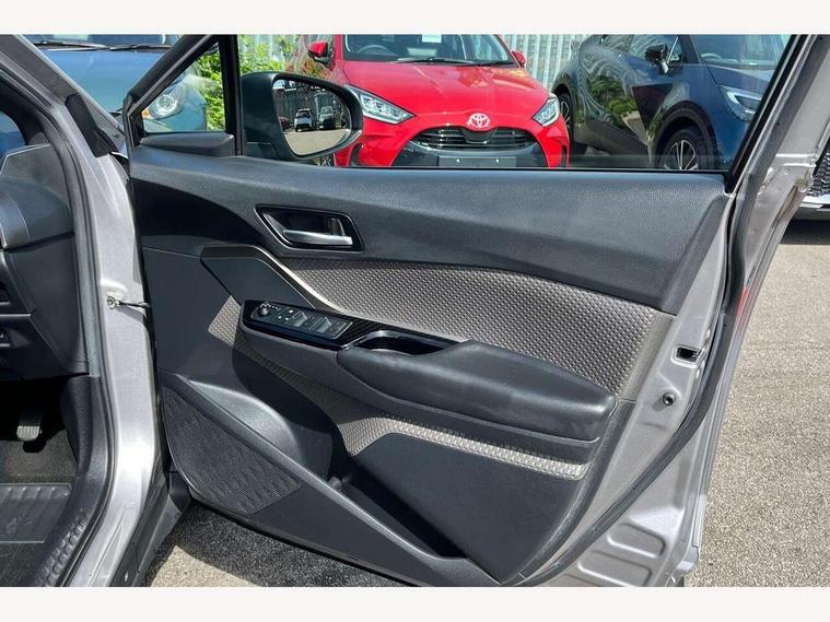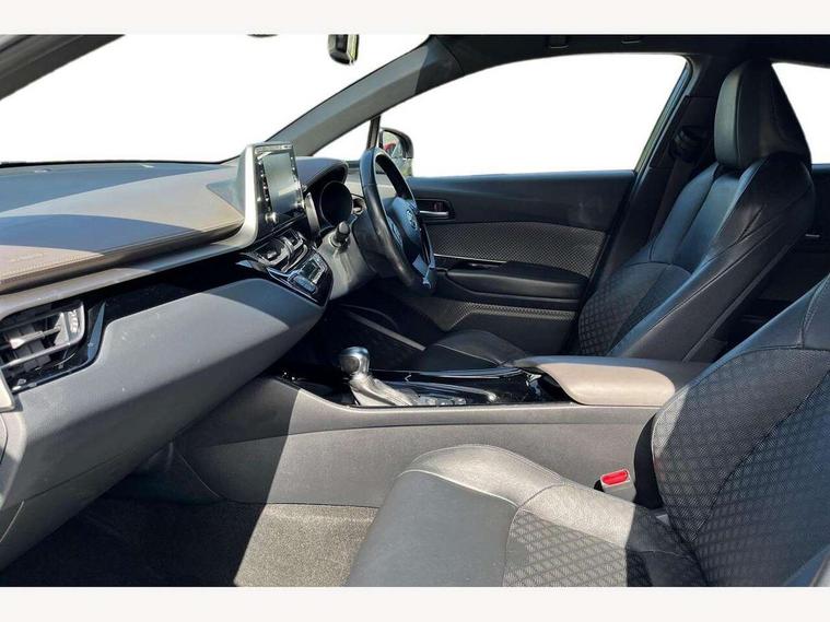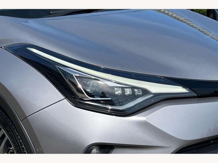 4.2" coloured TFT screen for multi-information display, Adaptive cruise control, Bluetooth connectivity, Electric power steering, Hybrid system indicator, Lane departure alert with steering control, Remote boot door release in cabin, Remote boot door release in key, Reversing camera, Road sign assist - RSA, Simple Intelligent parking assist, Touch 2 Go navigation system, Trip computer, Voice recognition, Vehicle Stability Control (VSC), 6 speakers, Aux connectors + 12V front outlet, DAB Radio (Digital Audio Broadcasting), Toyota touch 2 multimedia system with 8" display, USB connector integrated with radio and CD player, Wi-fi connectivity, Adaptive front light system, Adaptive LED Headlights, Anti-jam protection on power windows, Auto high beam, Auto up and down function on all power windows, Automatic headlight levelling, Automatic headlights, Automatic headlights cut-off, Black and body coloured rear bumper, Black front bumper, Black upper front grille, Body colour door handles, Body colour door mirrors, Boot door release with push button, Electric heated door mirrors, Follow me home headlights, Front and rear power windows, Front spoiler, Honeycomb lower front grille, LED daytime running lights, LED fog lights, LED front light guide, LED High mounted stop light, LED rear brake lights, LED rear combination lights, Noise reduction layer on front windows and windscreen, Power adjustable door mirrors, Privacy glass, Rear spoiler, Rear tailgate, Rear window defogger, Rear window wiper, Shark fin antenna, UV-filter on driver and passenger windows, UV-filter on rear windows, 12v power outlet - front, 3 rear headrests, 3 spoke leather steering wheel, 60/40 split folding rear seat, Adjustable rear headrests, Adjustable speed limiter switch on steering wheel, Assist grips front and centre pillar, Audio and telephone switches on steering wheel, Black front door assist grips, Blue ambient lighting on front cup holders, Blue ambient lighting on front doors, Boot light, Chrome interior door handles, Driver and front passenger personal light, Driver and front passenger Whiplash Injury Lessening seats, Driver and passenger seatback pockets, Dual zone automatic air conditioning, Front cupholders, Front head restraints, Front sports seats, Glovebox with internal light, Hard tonneau cover, Heated driver and front passenger seats, Heated steering wheel, Hooks for luggage holding net, Humidifying Nanoe air purifier, Illuminated entry system, Isofix attachments on rear seats, Leather gearshift, Light on driver sun visor, Light on passenger sun visor, Manual telescopic steering wheel, Manual tilt steering wheel, Microphone on front personal light, Mirror on driver sun visor, Mirror on passenger sun visor, Multimedia switches on steering wheel, Pollen filter, Power adjustable lumbar support on driver seat, Power tilting cushion on driver seat, Shopping bag hooks, Slow opening on lower glovebox, Voice recognition switch on steering wheel, Leather pack - C-HR, Tech with parking sensor pack - C-HR, 16 Disk front wheel brake, 3x3 point rear seatbelts, ABS+EBD+Brake assist, Electronic parking brake, ESP + traction control, Front and rear seatbelt reminder, Front passenger airbag on/off switch, Hill start assist control (HAC), Pre collision system with pedestrian detection, Pre-tensioners and force limiters, Rear door child safety locks, SRS Airbags - Driver + Front passenger, front side, front and rear curtain and driver's knee airbags, Toyota safety sense, Tyre pressure monitoring system, Glass-breaking alarm sensors, Immobiliser, Intrusion alarm, Intrusion sensor, Motion sensor alarm, Power door locks, Power passenger window lock, Remote central locking, Remote door lock, Black lower dashboard, Black lower driver dashboard, Dark brown upper dashboard, Piano black console, Silver deco line on upper dashboard, Tyre repair kit,