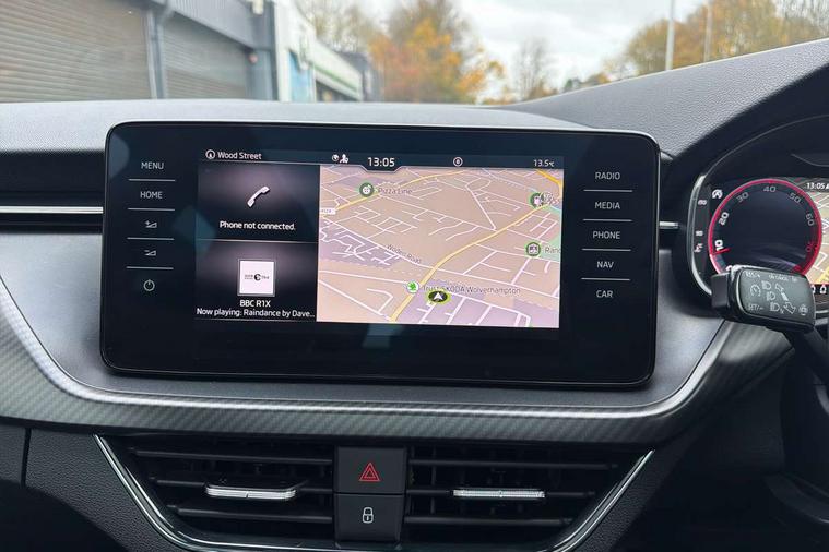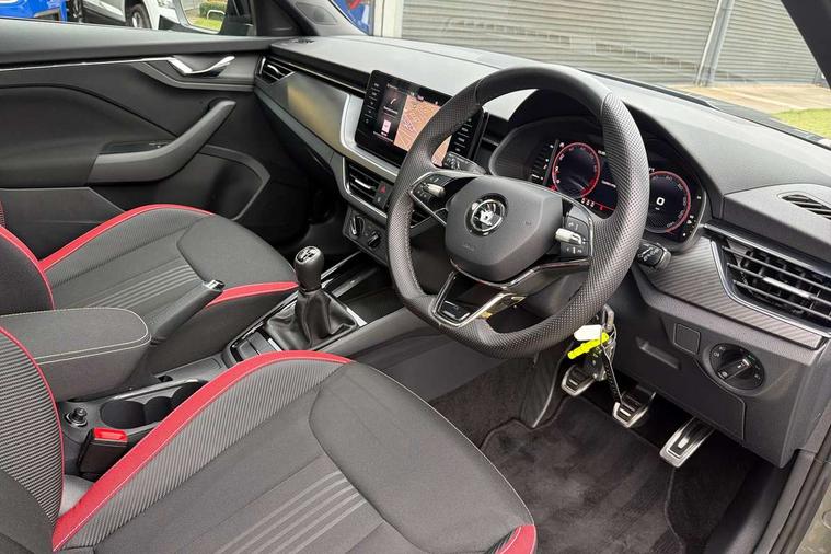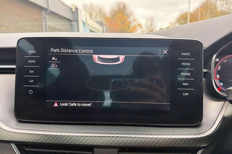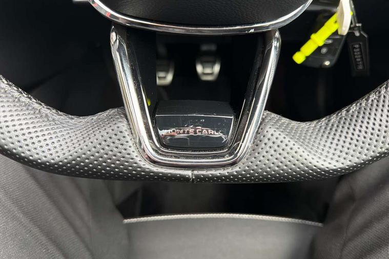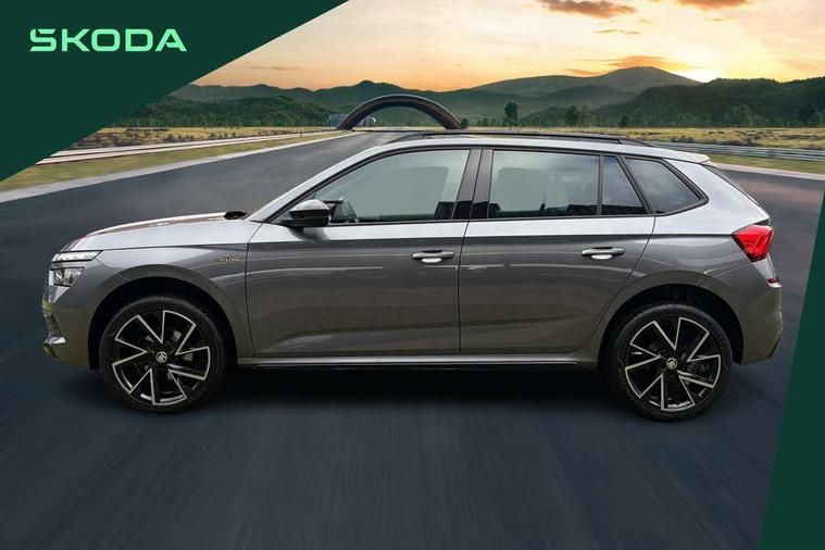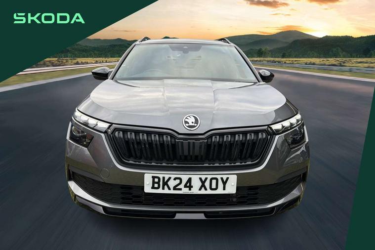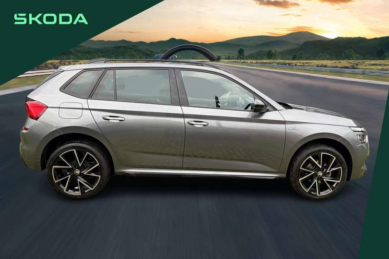 Amundsen satellite navigation with 9.2" glass colour touchscreen display, web radio, voice control and traffic sign recognition, Bluetooth system, E-call, Front assist system, Gesture control, PAS, Service indicator, Speed limiter, Wireless Smartlink for Apple CarPlay (wired for Android Auto), 8 Speakers, Auxiliary input socket, DAB Digital radio, Black door mirrors, Black radiator grille, Black rear diffuser, Body colour bumpers, Body colour door handles, Body colour roof spoiler, Boot lettering in black, Chrome grille surround, Dimming rear view mirror with black surround, Electrically adjustable and heated door mirrors, Fixed panoramic sunroof with black roof rails, Front and rear electric windows, Front sport bumper, Full LED headlights with adaptive front light system, cornering function, fog lights and dynamic indicators, Headlight range control, Heated rear window, High functionality rear led lights with dynamic indicators, KAMIQ Door sills, LED daytime running lights, LED third brake light, Light sensors, Monte carlo plaque, Privacy glass, Rain sensor, Rear fog lights, Rear side wing doors, Rear wiper, 12V Accessory socket in centre console, 3 seat bench in 2nd row, Aluminium pedals, Black ceiling for black/beige interior, Black roof lining, Chrome inner door handles, Cloth upholstery, Front head restraints, Glove compartment with illumination, Height adjustable front passenger seat, Ice scraper, Isofix child seat fittings on outer rear seats, ISOFIX on front passenger seat, Leather gear lever, Manual lumbar support for front seats, Rake/reach adjustable steering wheel, Reading lights, Single front passenger seat, Sports seats, Sun visors with illumination on front passenger, Textile floor mats, Third rear headrest, Top tether for front passenger seat, Umbrella in driver's door, 3x3 point rear seatbelts, Airbags - driver and front passenger, ESP, Front passenger airbag deactivation switch, Front side airbags with curtain airbags, Hill hold control, Manual parking brake, Manual rear child locks, One tone horn, Rear disc brakes, Seatbelt reminder for driver an co-driver, Traction control, Tyre pressure monitor, Anti-theft alarm system with interior monitoring, backup horn, towing protection and remote central locking with SAFE system, Anti-theft wheel bolts, Electronic engine immobilizer, Chrome air vent surrounds, 18" Vega alloy wheels in black,