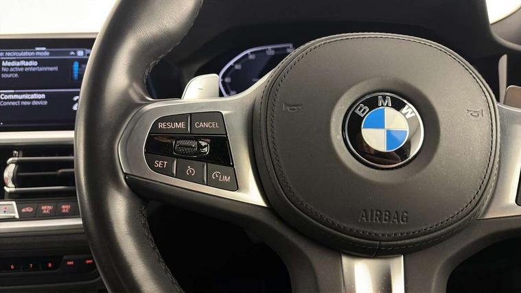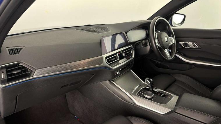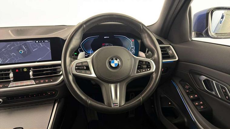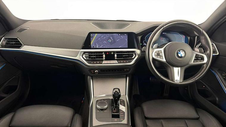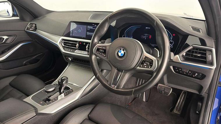Active guard plus, Attentiveness assist, Auto start-stop, BMW iDrive controller on centre console, BMW Live Cockpit Professional Nav with 12.3" instrument display + 10.25" display, Intelligent Voice Assist, BMW OS 7, HDD, 2USB, 4G LTE connect, BMW service history, BMW Teleservices, Brake pad wear indicator in front and rear, Check Control warning system for monitoring of lights and door/luggage compartment open warning, Condition based service, Electric power steering, Electric power steering with Servotronic steering optimised at all speed ranges, Instrument cluster with speedometer with mph readout, tachometer, fuel gauge and oil temperature gauge, Integrated owners handbook, Oil sensor for level and grade, warning by check control system, On board computer - average speed+fuel consumption, service interval, clock/date, odometer/trip meter, outside temperature display and ice warning, Optimum shift indicator, Personal Profile - automatic lock when driving away selectable, Balanced 50/50 weight distribution, Battery cut-out switch, Drive performance control - ECO PRO, comfort and sport modes, Electronic differential lock control (EDLC), Petrol Particulate Filter, Sport automatic transmission with steering-wheel mounted gearshift paddles and launch control, Stroke dependent dampers, DAB tuner, Electronic service booklet, Acoustic glazing, Automatic headlight beam throw control with load dependent regulating reaction, dynamic compensation of braking dive and acceleration squat, Black roof mouldings, Body colour door handles, Body colour fuel filler flap, Body colour mirror caps, Dynamic brake lights, Electric windows - front and rear, with open/close fingertip control, anti-trap facility and comfort closing, Exhaust tailpipe - split left and right, Exterior mirrors - electrically folding with anti-dazzle, Fading support, Front and rear bumper system with replaceable deformation elements, Front black door sill finishers with BMW designation, Green tinted heat protection glazing, High gloss shadow line exterior trim, Interior rear view electrochromatic mirror with automatic anti dazzle function, LED daytime running lights, LED front fog lights, Lightweight engineering, M designation on front side panels, left and right, Matt black exterior B pillar, Model designation on right side of tailgate, Rain sensor with automatic headlight activation, Shark fin antenna, Two part LED tailights in L-shape with components in smoked glass, brake light, LED turn indicator and rear fog light, Visible VIN plate, Welcome lights in interior and door handle area, Windscreen wipers with integrated washing jets, 12V power socket in front storage compartment, 2 front cupholder in centre console with clamping elements and matt black inlay, 3 rear seats with non folding headrests with 3 point seat belts, 3 zone automatic air conditioning, 4 pieces lashing eyelets in luggage compartment, 40:20:40 split folding rear seat with loading system, Ambient lighting with welcome carpet light, Anthracite headlining, Armrest integrated in front and rear door trim + front centre console armrest, Centred top Luggage compartment lights, Four grab handles integrated in roof lining, Front and rear door exit lighting (left / right), Front and rear door pockets, Front and rear reading lights, Front and rear velour floor mats, Front head restraints, Front sport seats, Heated driver and front passenger seats, Height adjustable mechanically and infinitely variable steering column, Illuminated armrest storage compartment, Illuminated glove compartment with separate small compartment, Interior lighting - front centre over interior mirror with soft light, rear centre and front and rear footwell lighting, M Sport multifunction leather steering wheel, Make-up mirror lights, Rear centre armrest with 2 cupholders, Rear centre console with storage compartment and ventilation grille, Sunvisors with vanity mirrors and ticket pocket, Toolkit located in luggage compartment, Connected pack professional - 3 Series Saloon/Touring, M Aerodynamics pack - 3 Series Saloon/Touring, 2 tone horn, BMW emergency call, Brake energy regeneration, Braking pre-tensioning, Child proof locking system in rear door, Child seat ISOFIX attachment rear outer seats, Coasting in idle in ECO PRO mode, Crash sensor activating of airbags, Unlocking doors, hazard warning lights, interior light, safety battery terminal, Driver and front passenger side airbags, integrated in the door side seat backrest bolsters for all seat variants, Driver/Front Passenger airbags, Dry braking, Dynamic brake control, Dynamic stability control + (DSC+) - Anti-lock Braking System (ABS) with brake assist and cornering brake control + Automatic Stability Control (ASC), Dynamic Traction Control - DTC, Electric parking brake including automatic hold function and automatic release of the parking brake when driving off, Front passenger manual airbag deactivation, Head airbags for all 4 outer seats, Hill start assist, Seat belt security check for driver and front passenger, Side impact protection, Three 3 point seat belts on all seats including front belt stopper, pyrotechnic belt tensioners and belt force limiters, Tyre pressure monitoring with three level warning strategy, Ventilated front and rear disc brakes, Warning triangle and first aid kit, Alarm system (Thatcham 1) with remote control and electronic engine immobiliser, Central locking switch for all doors, fuel filler cap and luggage compartment, Remote control with integrated key one button open/close vehicle and windows, sole opening of the luggage compartment lid and panic mode, Start/stop button with Comfort Go keyless engine start and auto Start/stop deactivation button, Vehicle key with M specific designation, Reduced rolling resistance tyres,