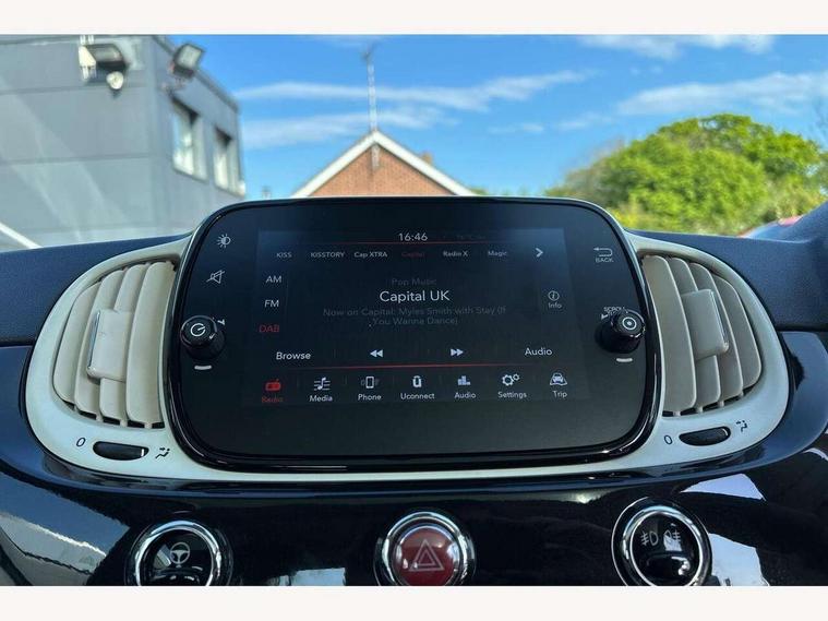 Apple car play/Android Auto, Cruise control, E-call, External temperature gauge, Power assist steering, Rear parking sensor, Speed limiter, Stop/start system, Trip computer, 4 speakers, 7" HD Touchscreen Radio, Bluetooth, USB and DAB, Rear speakers, 3rd brake light, Auto headlights, Body colour bumpers, Body coloured electrically adjustable door mirrors, Chrome plated exterior door handles, Dolcevita badge on fender, Dusk and rain sensors, Electric front windows, Fixed glass sunroof with sunblind, Front fog lights, Halogen headlamps, Heat insulated glass, Heated rear windows with wash wipe, LED daytime running lights, Rear side wing doors, Rear wiper, 1 passenger grab handle, 2 seat bench in second row, 50/50 split folding rear seats with height adjustable rear headrests, Air conditioning, Auxilliary 12V power socket, Chrome kit, Front headrests, Height adjustable drivers seat, Height adjustable steering wheel, Isofix child seat preparation, Single front passenger seat, Techno leather steering wheel with audio controls, 7 airbags - Driver, passenger, side, window and drivers knee airbags, ABS/EBD, ESC + ASR/MSR + HBA + Hill holder, Manual passenger airbag deactivation function, Traction control, Tyre pressure monitoring system, Automatic door locking, Immobiliser, Locking fuel filler cap, Remote central locking, 15" Alloy wheels,