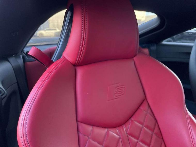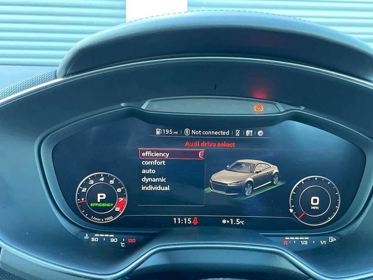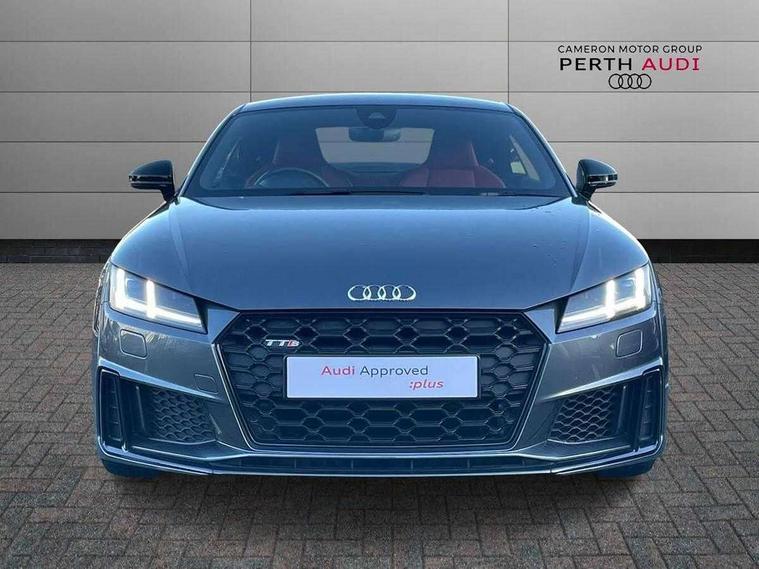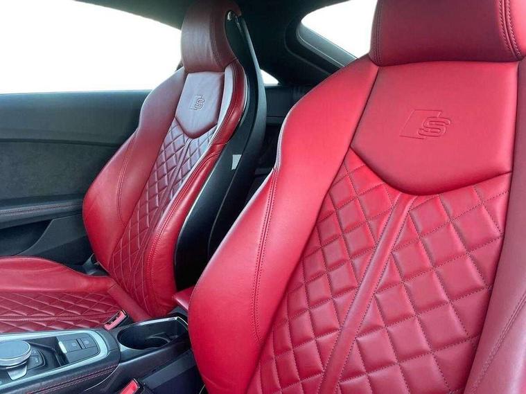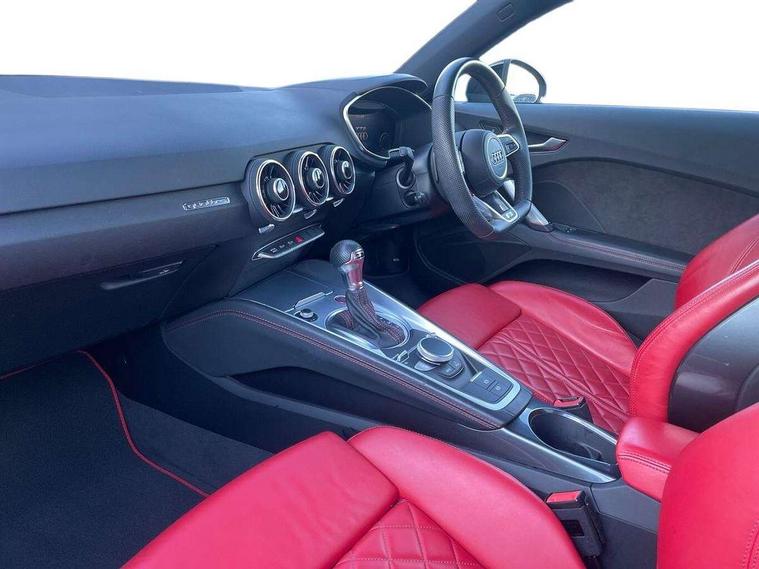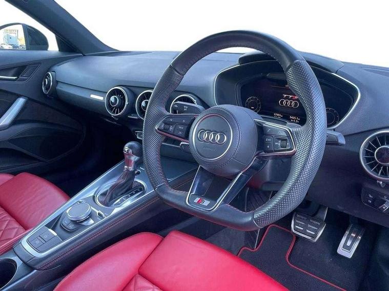 Extended aluminium look with stainless steel pedals, Matt brushed aluminium inlays, Black styling pack - TT, Leather pack - TTS, LED interior light pack - TT/TT RS, Non smoking pack - TT/TT RS, 3 point front seat belts, ABS, ASR traction control, Brake energy regeneration, Curtain airbags, Driver and front passenger airbag with front passenger airbag deactivation, EDL traction control, Electromechanical parking brake, ESP, First aid kit, Front side airbags, Head airbags, Hill hold assist, Seatbelt warning, Tyre pressure warning, Warning triangle, Tyre repair kit, Anti theft alarm, Anti theft wheel bolts, Immobiliser, Keyless Go, Remote central locking, Audi magnetic ride, TTS suspension, AM/FM radio, Audi music interface, Bluetooth audio streaming, DAB Digital radio, MMI Radio with CD player and SD/XC card slot, Audi Beam uses LEDs to project the Audi Sport logo, Auto dimming rear view mirror, Auto headlight range control, Black chrome tailpipe, Black door mirrors, Dark privacy glass from B-pillar backwards, Door sill trims with aluminium inlay and TTS logo, Dynamic rear indicators, Electric folding door mirrors, Electric front windows, Green tinted heat insulating glass, Headlight wash system, LED daytime running lights, LED headlights with LED rear lights + dynamic rear indicators, Light and rain sensors, Platinum grey rear diffuser, S body styling, Sunband for windscreen, 12V socket, 3 spoke flat bottomed high multi-function leather sport steering wheel with gearshift paddles, 4 way electric lumbar support for driver and front passenger, Black headlining, Chrome slate grey interior trim, Deluxe auto air conditioning with integrated digital display, Front centre armrest, Heated front seats, Height adjustable driver's seat, Height adjustable front head restraints, Height/reach adjust steering wheel, Interior elements in quartz anthracite, ISOFIX child seat mounting for front passenger seat with airbag deactivation, Perforated leather gearknob, Rear head restraints, Rear top tether child seat ISOFIX attachment, Split folding rear seat, Tool kit, Top tether anchor plate for isofix child seat, Audi active lane assist, Audi connect, Audi drive select with 4 Pre configured modes, Audi phone box, Audi Virtual Cockpit with sport gauge, Cruise control + speed limiter, MMI Navigation plus, MMI touch panel, Mobile phone preparation with bluetooth interface, Progressive power assisted steering, Service interval indicator, Start/Stop system with energy recuperation, TP memo,