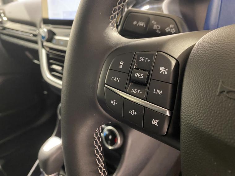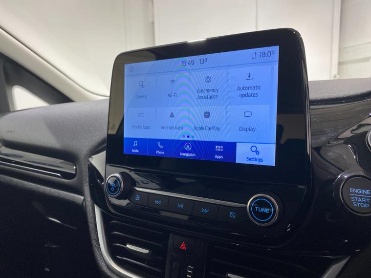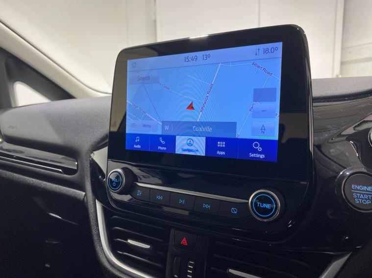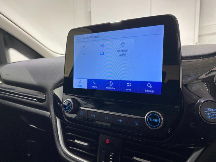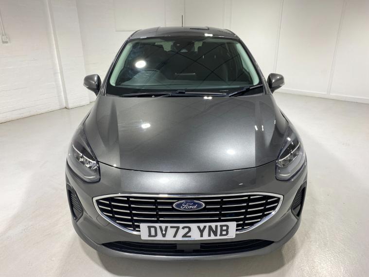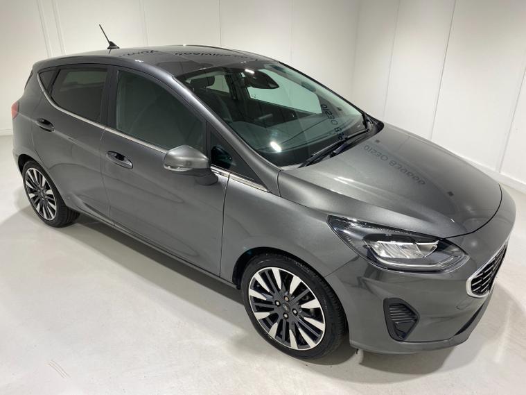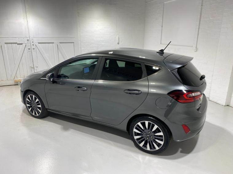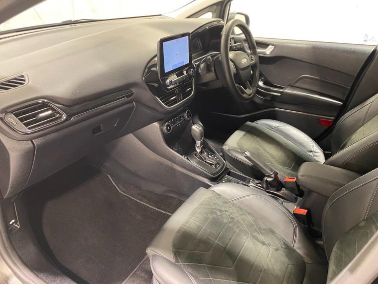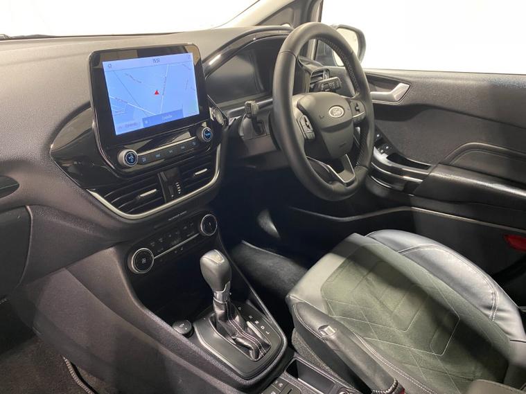 2022 72 Reg Fiesta 1.0 EcoBoost MHEV (155PS) Automatic TITANIUM X 5dr. Magnetic Grey metallic with Ebony part LEATHER interior, SYNC 3 DAB SATELLITE NAVIGATION with 8 inch touch screen, 17 inch alloys, DRIVERS ASSISTANCE PACK with adaptive cruise control with traffic sign recognition, intelligent speed assist, drivers impairment monitor, HEATED FRONT SEATS and STEERING WHEEL, REAR PARKING SENSORS with REAR VIEW CAMERA, EATC AIR CON, LED night signature rear lights, PRIVACY GLASS, KEYLESS entry and start with FORD power start button, auto light and rain sensing wipers, centre console with arm rest, tyre pressure monitoring system, Thatcham alarm, NCAP Pack (lane-keeping alert & lane-keeping aid, speed limiter, rear seat belt minder, rear centre head restraint & auto-headlamps), front fog lamps with cornering lights, heated front screen, remote central locking, electric front and rear windows, ESP, Hill start assist, trip computer, ambient lighting, 21, 428 miles (DV 72 YNB).