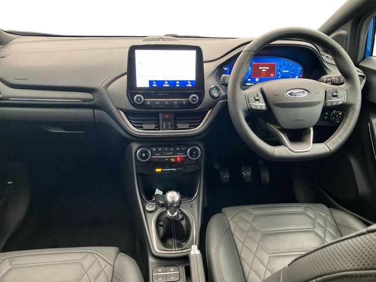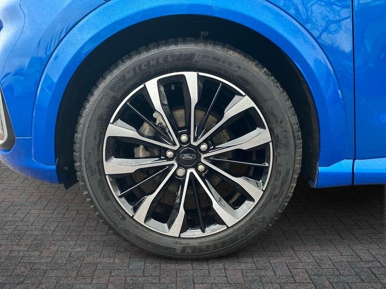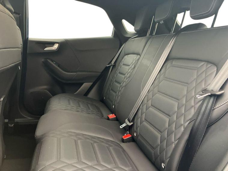 - slippery) Speed sign recognition Automatic headlights with auto high beam Automatic rain sensing wipers Bodyside chrome styling Fixed LED signature headlamps Front fog lamps Gloss black with chrome elements on front and rear bumpers High chrome waistline LED daytime running lights LED rear lamps Power foldable heated door mirrors with puddle lamps and puma logo protection Privacy glass to side rear windows and tailgate glass Quickclear heated windscreen Rear side wing doors Rear wiper Third brake light Vignale body styling kit with unique grille and large body colour rear spoiler 3 seat bench in 2nd row Centre console with armrest and stowage Electronic automatic temperature control (EATC) Ford megabox extended bootspace Front and rear floor mats Front and rear head restraints Manual 4 way driver seat adjust with lumbar adjustment and massage function Manual 4 way passenger seat adjust with lumbar adjustment and massage function Premium sensico leather upholstery with metal grey stitching Premium sensico perforated flat bottomed steering with metal grey stitching Premium sensico wrapped instrument cluster Single front passenger seat Wireless charging pad with electronic air temperature control (EATC) Carbon look interior deco spears B&O Premium Audio system + Ford SYNC 3 navigation pack - Puma Driver assistance pack with Lane departure warning - Puma Winter pack - Puma Keyless entry and power start button Thatcham alarm