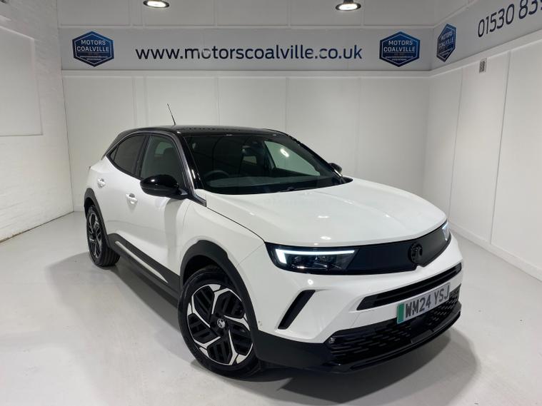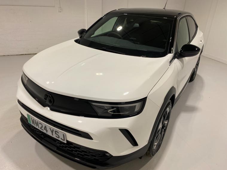 2024 24 Reg Vauxhall Mokka-e 54kWh (156PS) EV LONG RANGE Automatic ULTIMATE 5dr. Arctic White with black Alcantara interior, 18 inch alloy wheels, TOUCHSCREEN SATELLITE NAVIGATION, Bluetooth USB, Android Auto, Apple CarPlay, DAB, wireless charger, LED HEADLIGHTS, CLIMATE CONTROL, HEATED FRONT SEATS and STEERING WHEEL, electrically adjustable, heated and power folding mirrors, rain sensing wipers, auto lights, keyless entry and start, privacy glass, BLIND SPOT ALERT, ADVANCED PARK ASSIST with FRONT and REAR PARKING SENSORS and REAR CAMERA, ADAPTIVE CRUISE CONTROL, hill start assist, forward collision alert, traffic sign recognition, lane departure warning, ABS, ESP, 5, 950 miles (WM 24 YSJ).