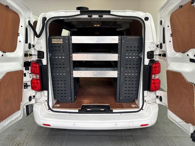 This Scudo comes equipped with 17'' Alloy Wheels, Start/Stop Technology, Lane Departure Warning, Air Conditioning, Rear Parking Sensors, Cruise Control, and a touchscreen infotainment system with Apple CarPlay & Android Auto. Satellite Navigation, Reversing Camera, Half Leather Interior, Ply Lining, Bespoke Shelving Unit, Dual sliding side doors and wide rear access enhance loading and unloading efficiency.