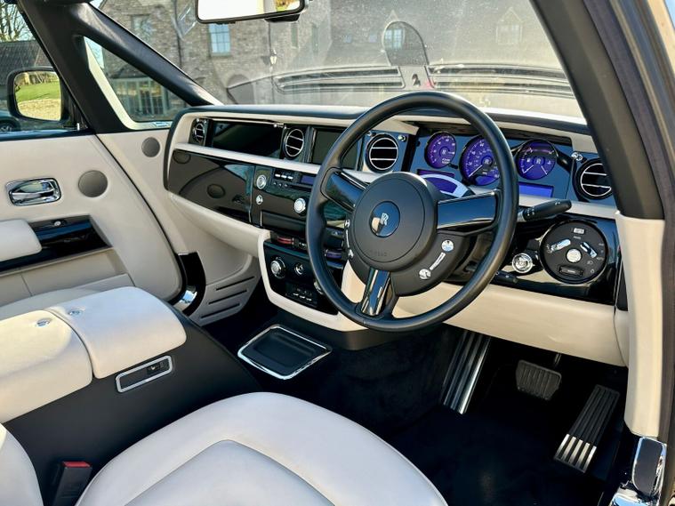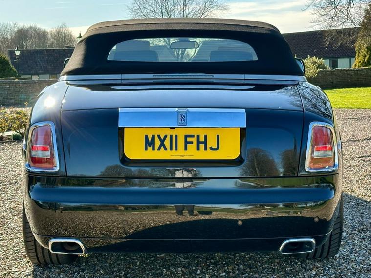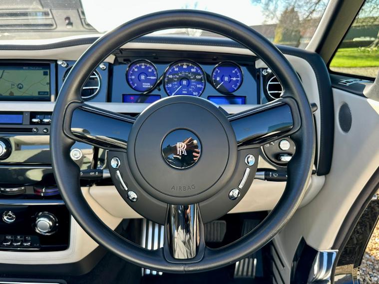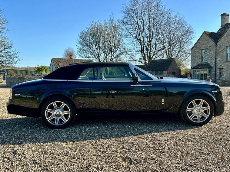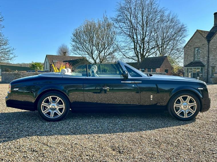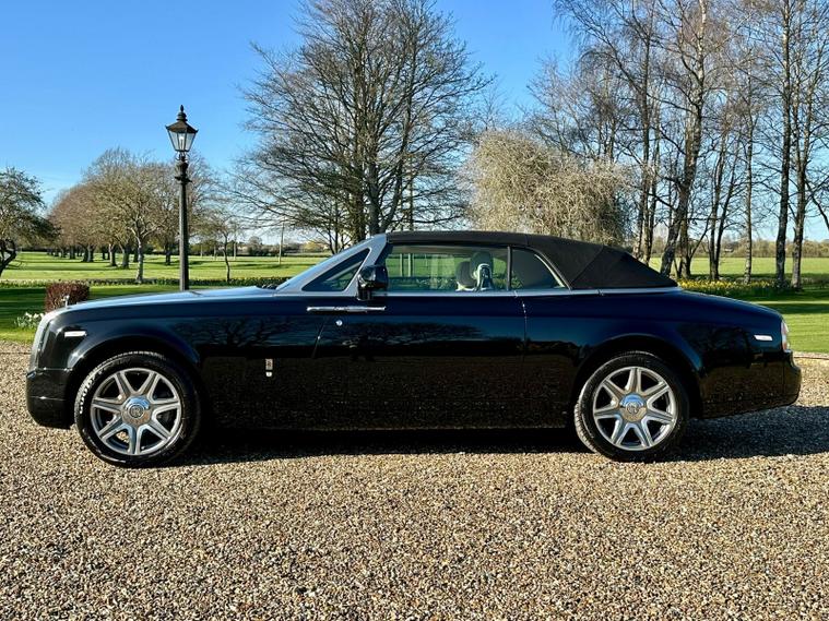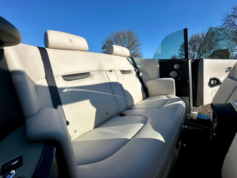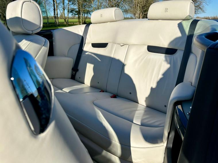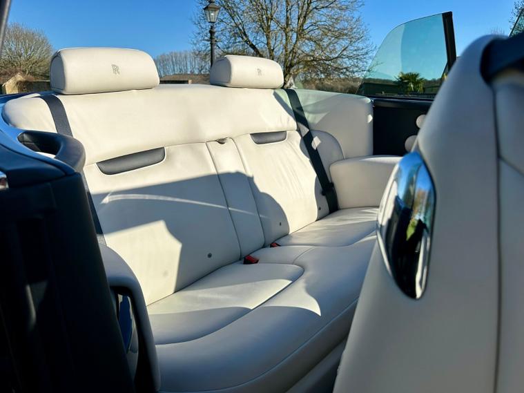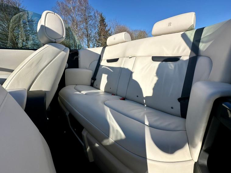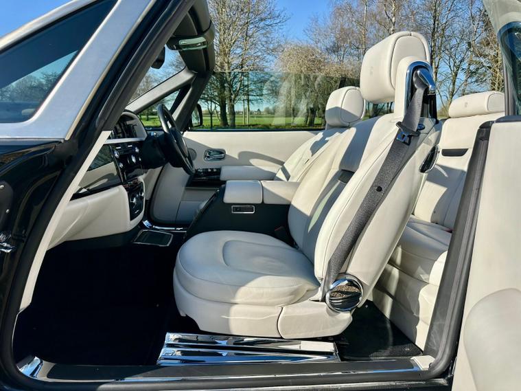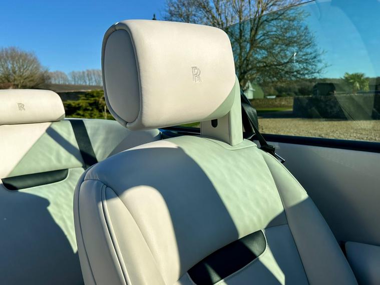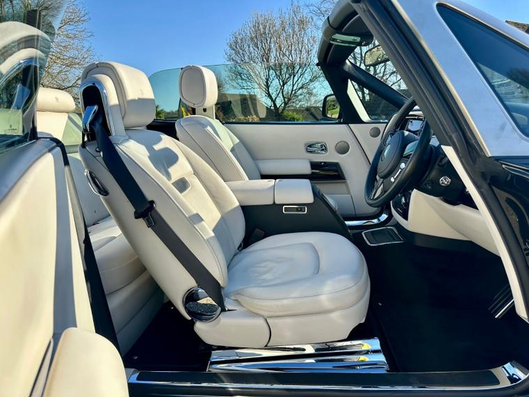 Powered by the iconic 6.7-litre naturally aspirated V12 engine paired with a smooth automatic transmission, the Drophead Coupé provides serene, effortless performance with the signature Rolls-Royce “wafting” driving experience. Its convertible design features a fully powered soft-top roof, seamlessly integrating into the car’s timeless silhouette.