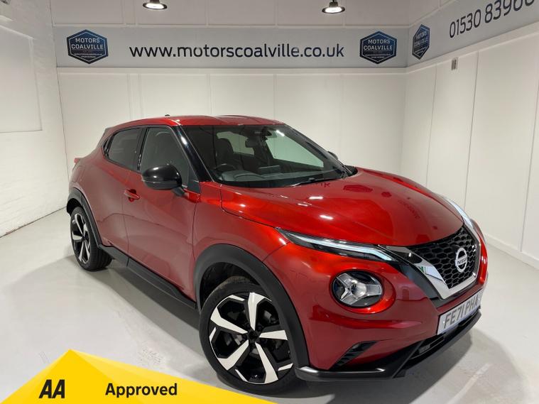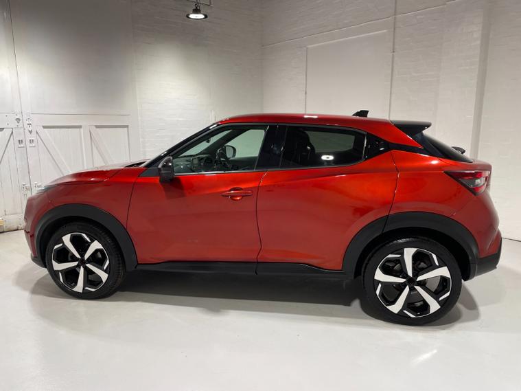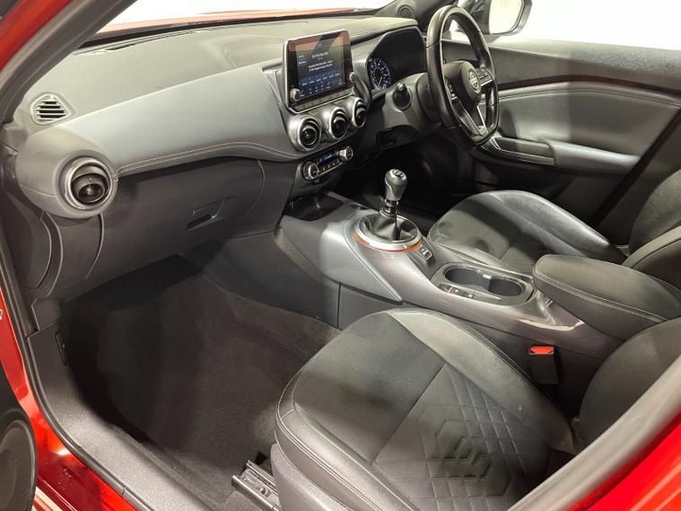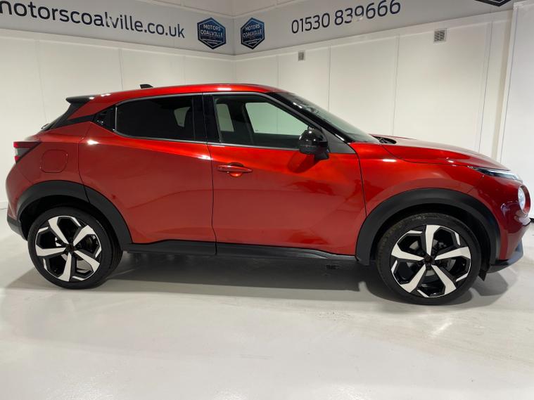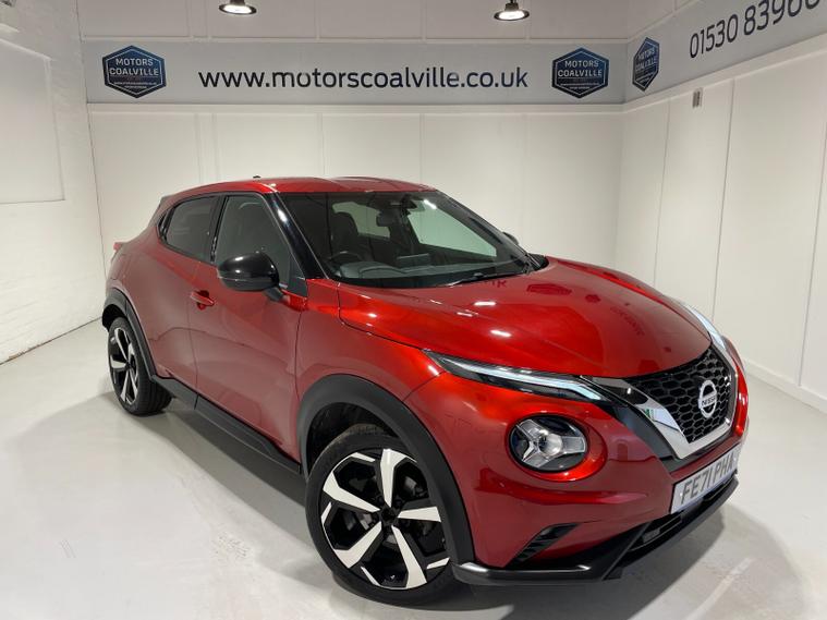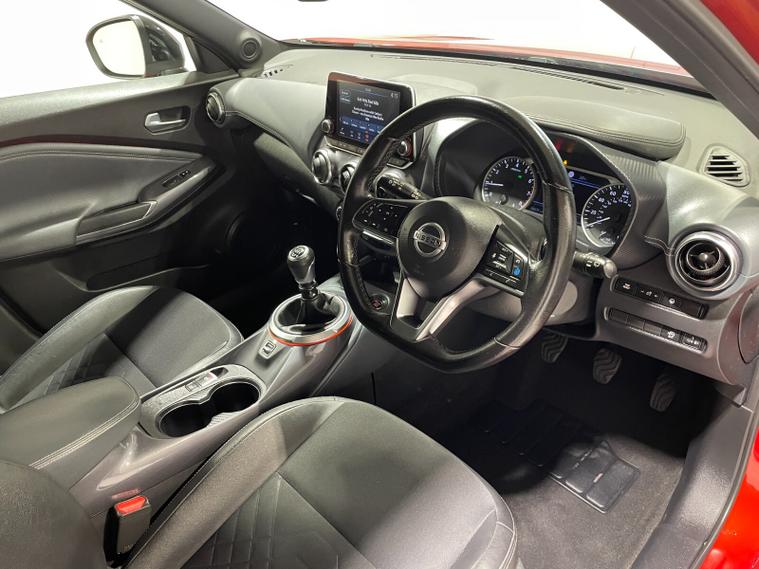 2022 71 Reg Nissan Juke 1.0 DIG-T (114PS) TEKNA 6spd Manual 5dr. Fuji Sunset Red pearl metallic with Black cloth interior, 19 inch alloy wheels, TOUCHSCREEN SATELLITE NAVIGATION with Bluetooth USB, Apple CarPlay, Android Auto, DAB, BOSE premium audio system, HEATED FRONT SEATS, CLIMATE CONTROL AIR CON, 360 degree AROUND VIEW MONITOR with REAR CAMERA, FRONT and REAR PARKING SENSORS, LED headlights, intelligent cruise control, BLIND spot information with cross traffic alert, traffic sign recognition, intelligent key, push button start, high beam assist, auto lights, rain sensing wipers, lane keeping aid, privacy glass, intelligent emergency braking, cruise control, push button start, front and rear electric windows, electrically operated mirrors, hill start assist, tyre pressure monitoring, 28, 617 miles (FE 71 PHA).