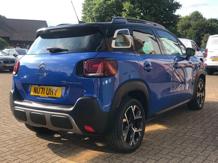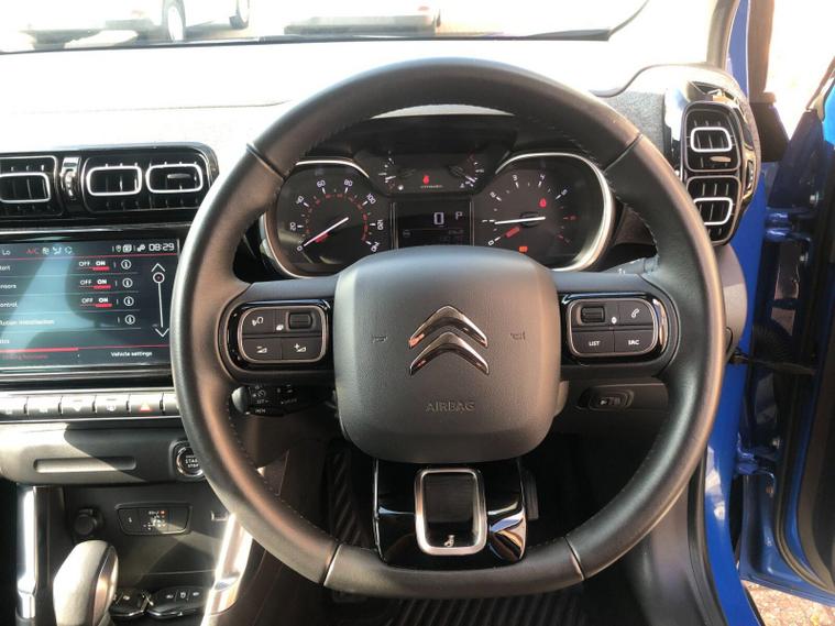 With only 12182 miles on the clock, this 2021 Citroen C3 Aircross Shine Plus is practically brand new. As a Citroen manufacturer-approved vehicle, you can be sure of its quality and reliability. The 1.2L petrol engine is Euro 6 compliant. The Shine Plus trim comes with a host of features designed to make every journey a pleasure, including keyless entry and start, automatic air conditioning with climate control, and Citroen Connected Nav with 3D Navigation, which includes Android Auto, Apple CarPlay, and Bluetooth connectivity. Manoeuvring is made easy with rear parking sensors and a top rear vision reversing camera.