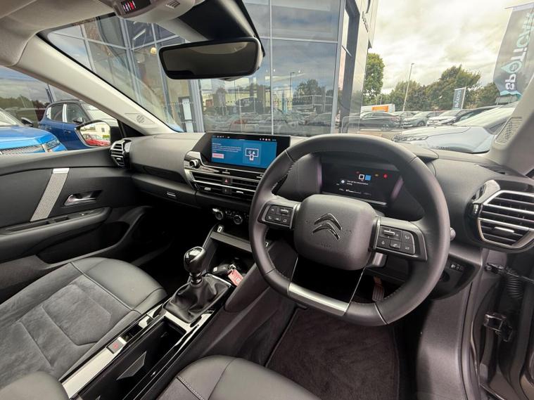This 2024 Citroen C4 MAX is a Citroen manufacturer approved vehicle with a full service history and a 12 month warranty, offering excellent peace of mind. It features a responsive 1.2 litre petrol engine, meeting Euro 6 emissions standards, and has covered a low mileage of just 12, 700 miles for its age. Inside, you'll find a Head Up Display, Active Blind Spot Detection, and Automatic Dual Zone Air Conditioning for a comfortable and safe journey. The My Citroen Drive Plus system, complete with Android Auto and Apple CarPlay, keeps you connected, while front, rear, and lateral parking aids make manoeuvring effortless.