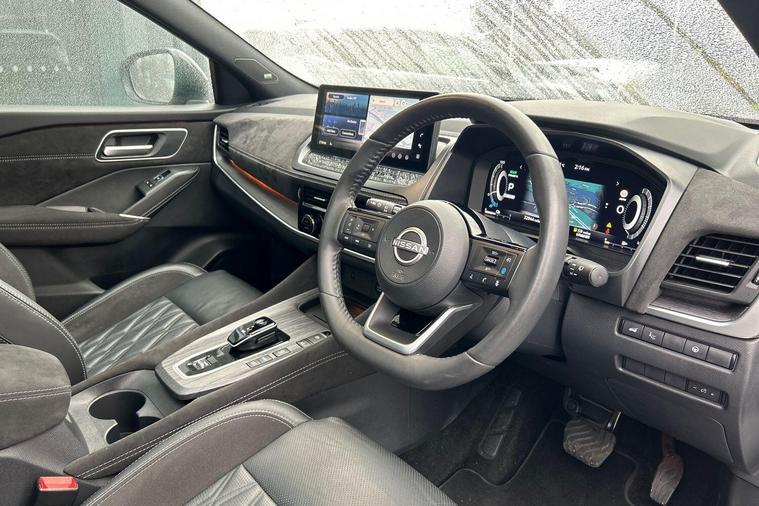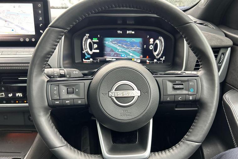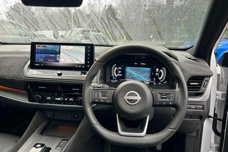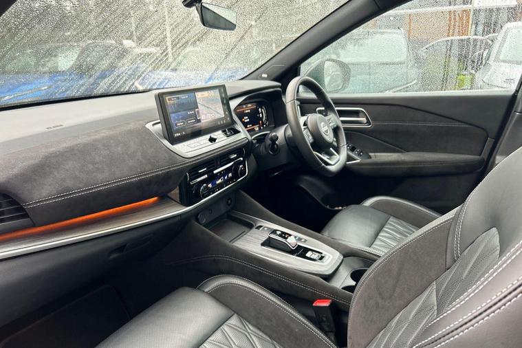 This 2024 Nissan Qashqai h e-POWER Tekna+ is a Nissan manufacturer approved vehicle, offering a blend of advanced technology and efficient performance. As a Euro 6 compliant model, it features a 1.5 litre petrol hybrid engine. The Tekna+ trim level ensures a premium experience, enhanced by notable features such as a heated steering wheel and heated front seats for added comfort. Navigating with confidence is made easier with Blind Spot Warning, while the convenience of a wireless charging pad and adaptive LED headlights with adaptive driving beam further elevate the driving experience.
