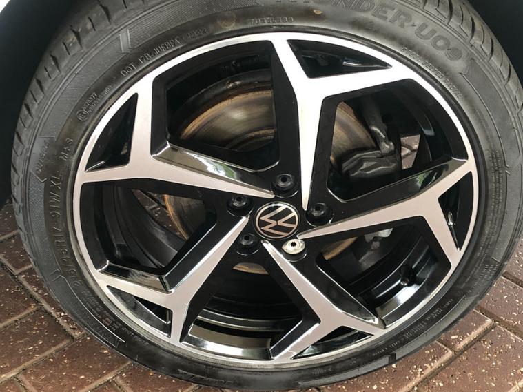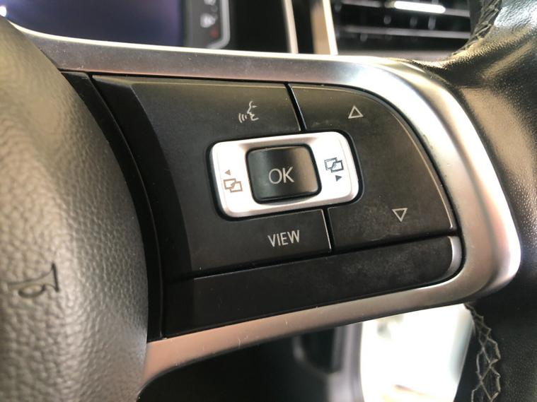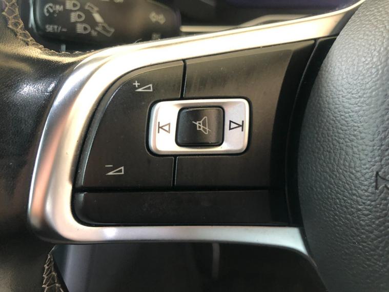 - Three spoke leather trimmed multifunction steering wheel with aluminium inserts and R Line Logo