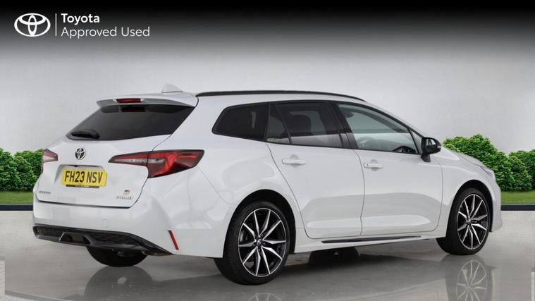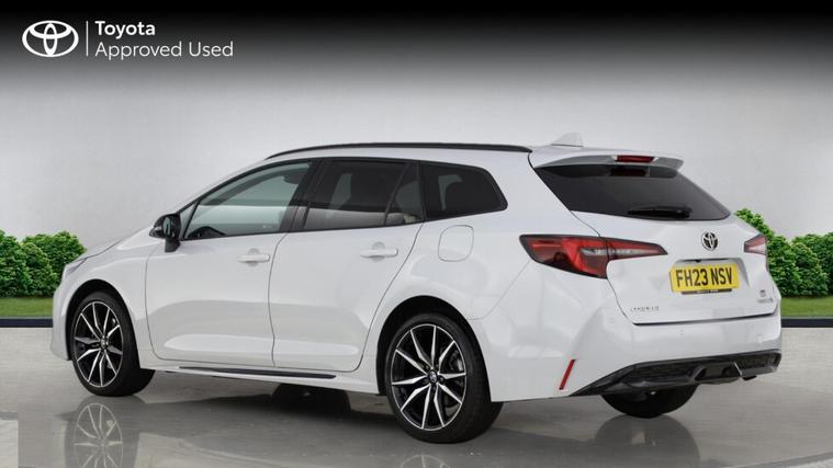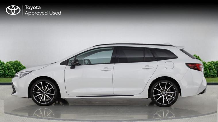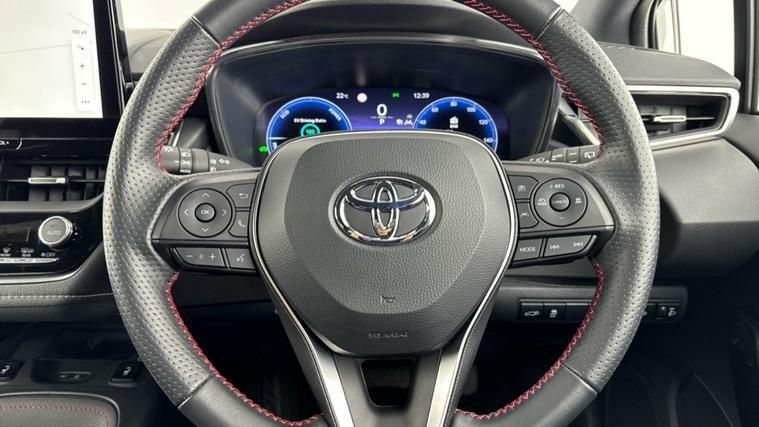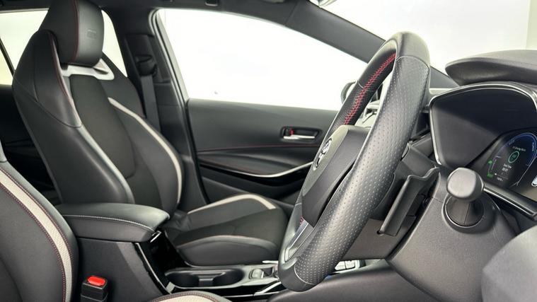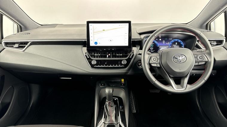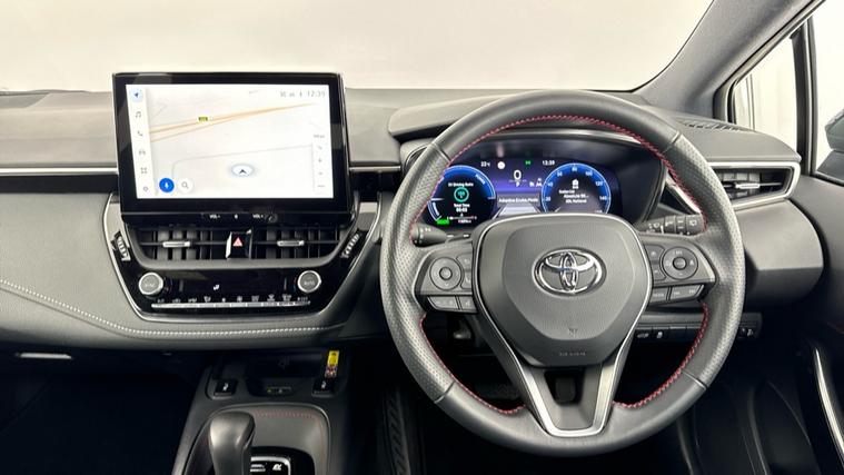 The Toyota Corolla 2.0 Hybrid GR Sport 5dr CVT is a sporty and efficient hatchback, combining hybrid power with a dynamic design. It features a 2.0-litre hybrid engine delivering 196hp, paired with a CVT automatic gearbox for smooth performance. The GR Sport trim adds sporty styling elements like 18-inch alloy wheels, GR badging, and sports seats. It offers low emissions (~105-120 g/km CO₂) and impressive fuel efficiency (~50-60 mpg). Tech highlights include a 10.5-inch touchscreen, digital driver display, wireless Apple CarPlay/Android Auto, and Toyota Safety Sense. Ideal for those wanting a sporty, efficient, and well-equipped hybrid.