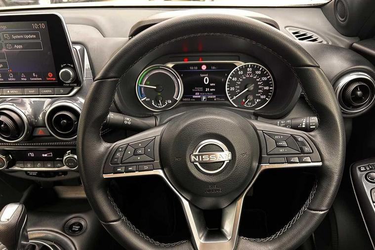 This 2022 Nissan Juke N Connecta offers exceptional value with its remarkably low mileage of just 14728 miles, a testament to its careful ownership. As a Nissan manufacturer approved vehicle, you can be assured of its quality and reliability. This stylish Juke is powered by an efficient 1.6 litre petrol hybrid engine, meeting Euro 6 emission standards. Keyless entry is a breeze with the Intelligent Key and Start Push Button, featuring walk away lock and approach unlock functions. Inside, you'll appreciate the comfort of automatic climate control and stay connected on the go with seamless integration of Apple CarPlay and Google Android Auto.