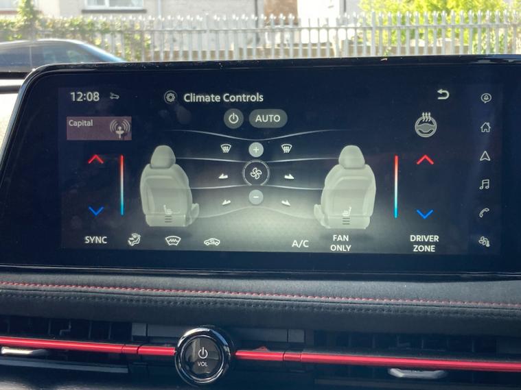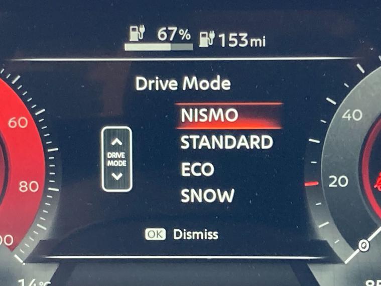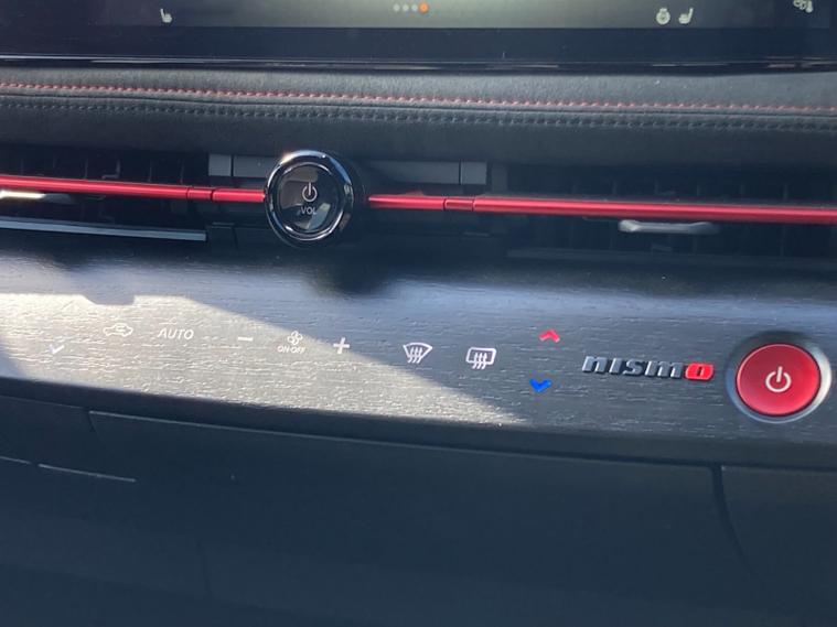 Inside, the cabin blends advanced technology with NISMO exclusivity. Red “ANDON” ambient lighting, NISMO-embroidered suede and leather seats, and a unique leather steering wheel set the tone, while comfort is assured with heated front seats, heated steering wheel, dual-zone climate, and a panoramic digital interface combining twin 12.3" displays with head-up display. Wireless Apple CarPlay, Android Auto, Amazon Alexa integration, and a BOSE premium audio system keep you connected and entertained.