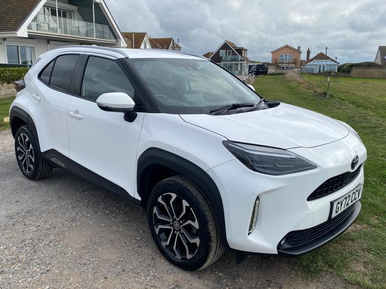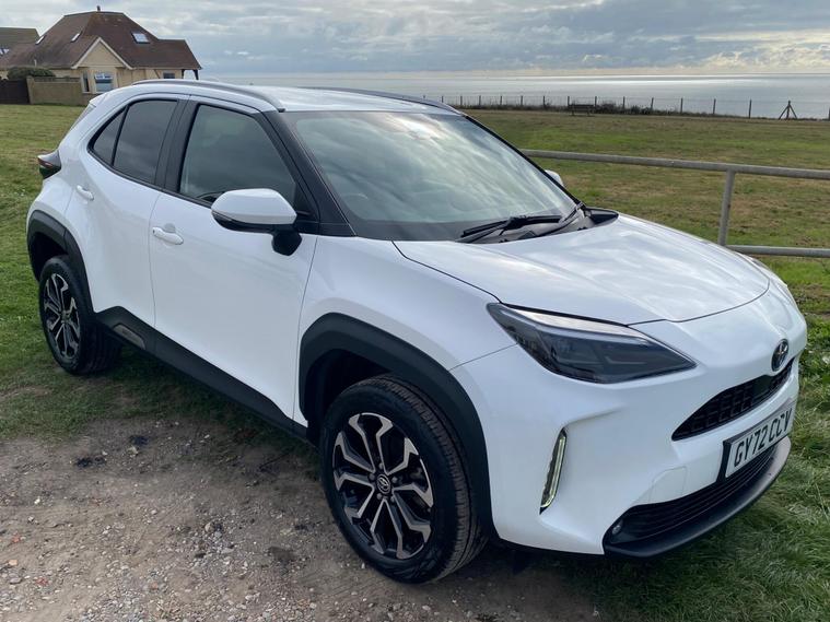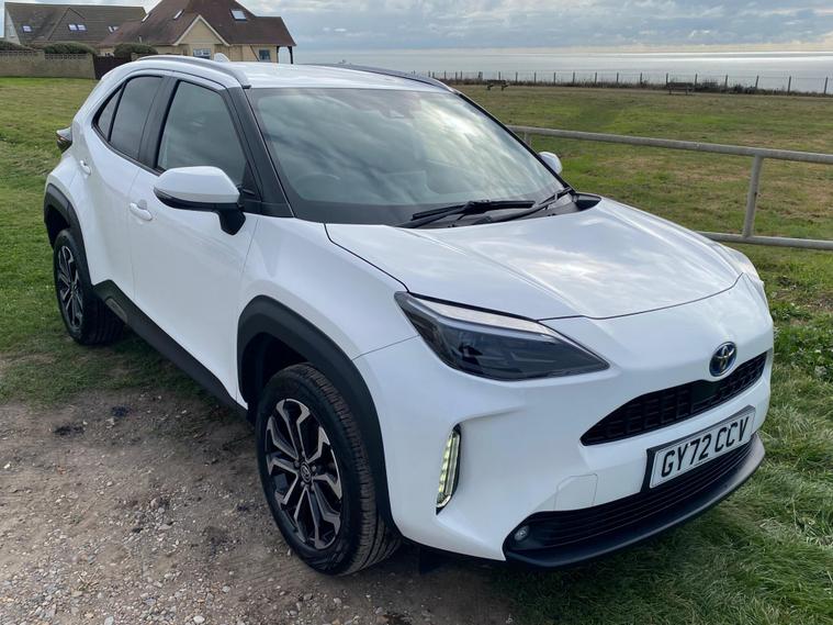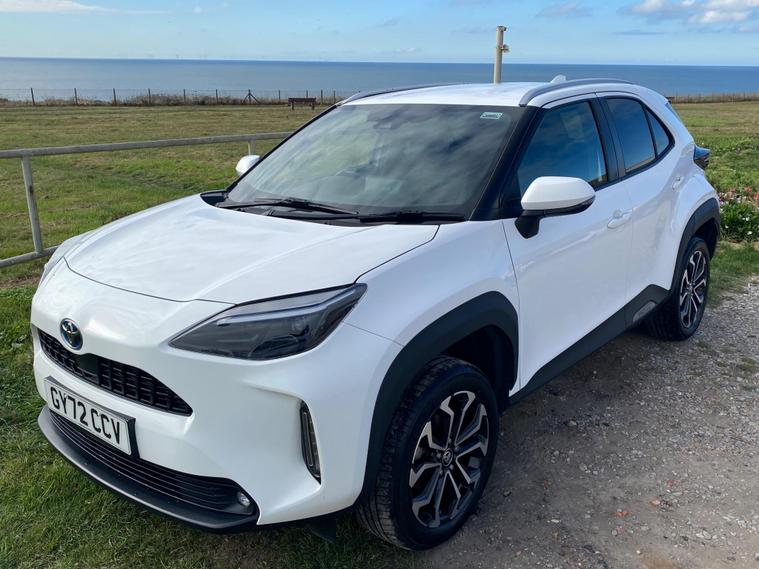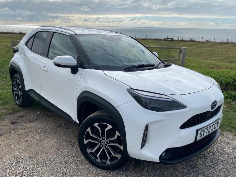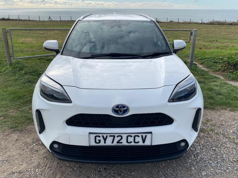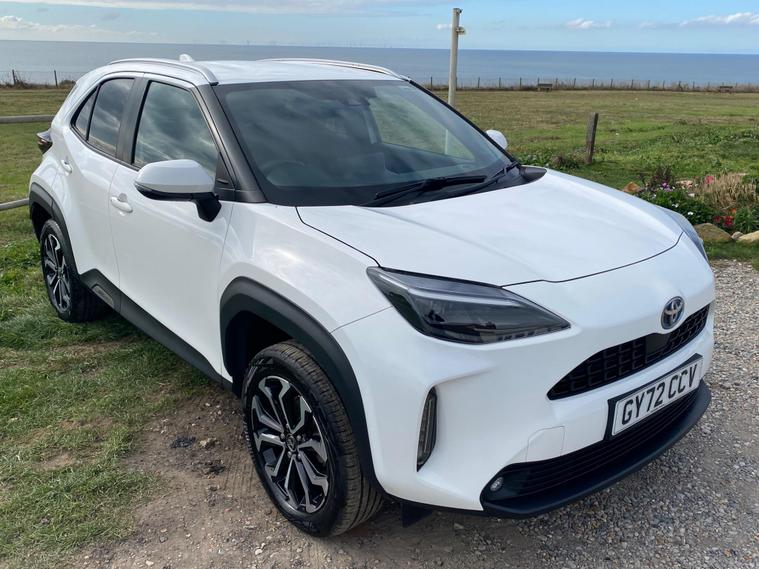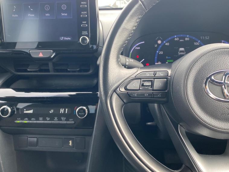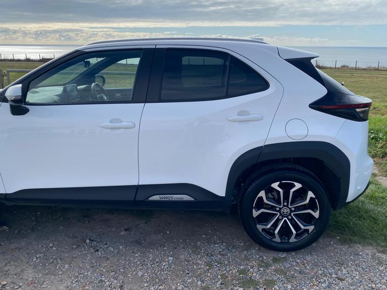 This 2022 Toyota Yaris Cross VVT-h Design is a Toyota manufacturer approved vehicle with a full service history, having had only one owner. It boasts a 1.5L Petrol Hybrid Engine and is Euro 6 compliant. The car comes with a 12 month warranty and a 12 month MOT provided on purchase, with its last service completed on 2025-09-20 at 24358 miles. Notable features include Bluetooth connectivity, intelligent adaptive cruise control, a reversing camera, smart entry and push button start, and automatic headlights.