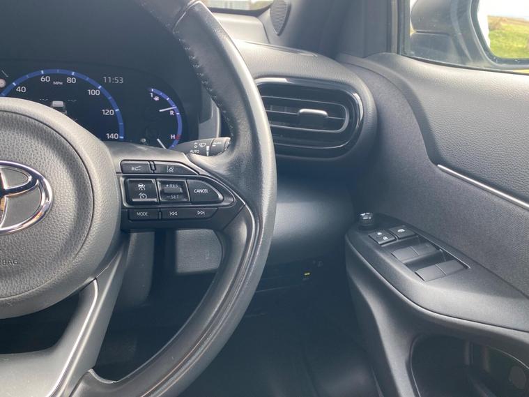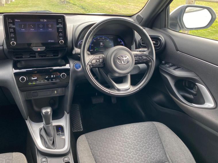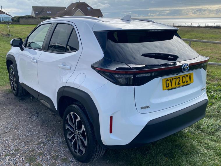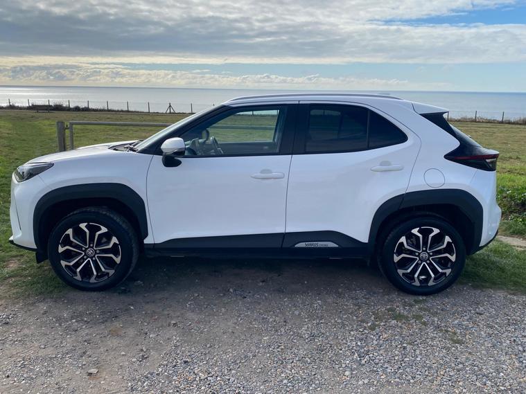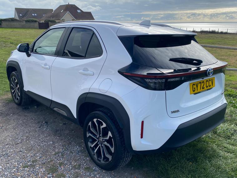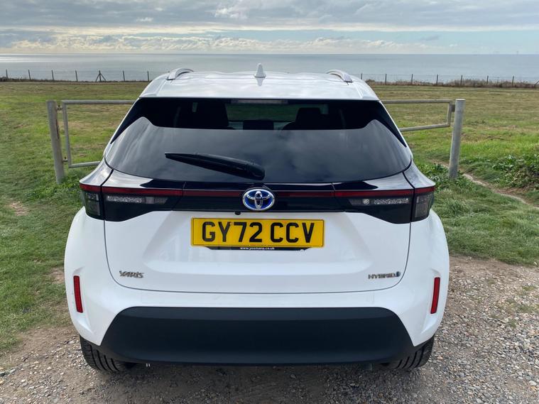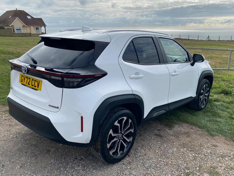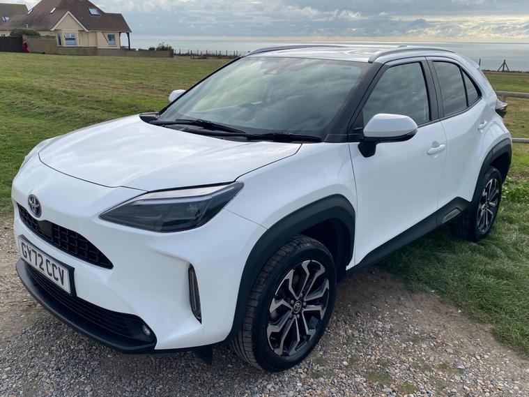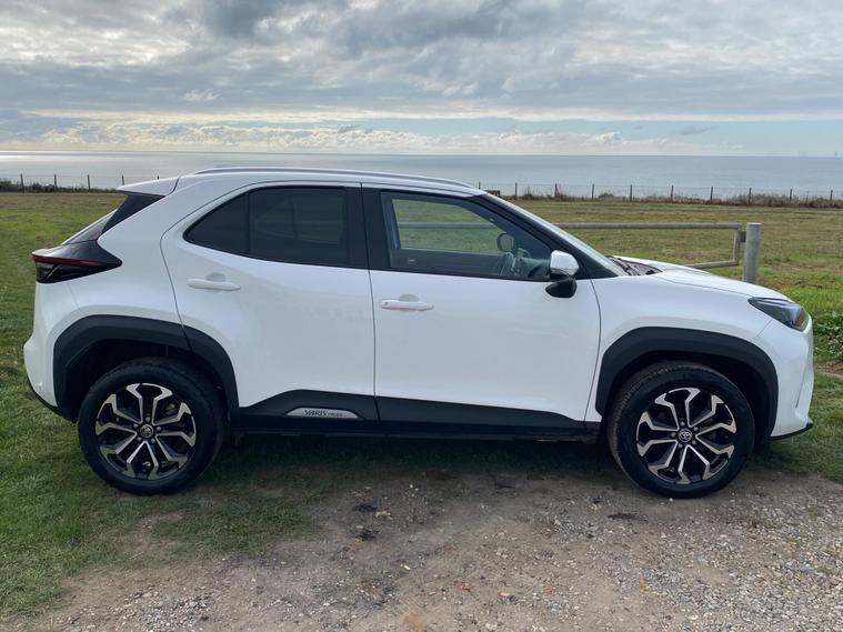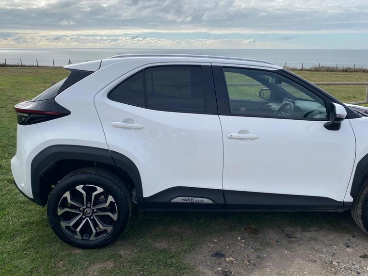 This 2022 Toyota Yaris Cross VVT-h Design is a Toyota manufacturer approved vehicle with a full service history, having had only one owner. It boasts a 1.5L Petrol Hybrid Engine and is Euro 6 compliant. The car comes with a 12 month warranty and a 12 month MOT provided on purchase, with its last service completed on 2025-09-20 at 24358 miles. Notable features include Bluetooth connectivity, intelligent adaptive cruise control, a reversing camera, smart entry and push button start, and automatic headlights.