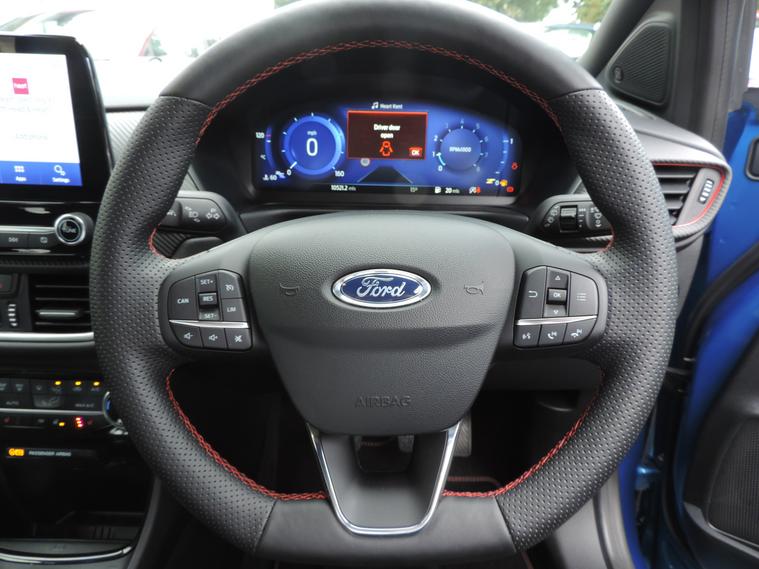 - ST-Line flat bottomed sensico leather steering wheel with leather handbrake and aluminium gear knob