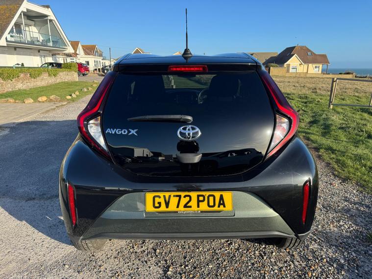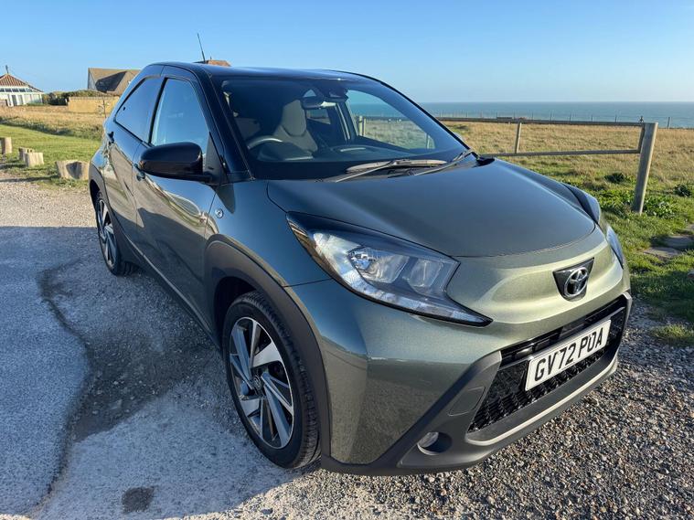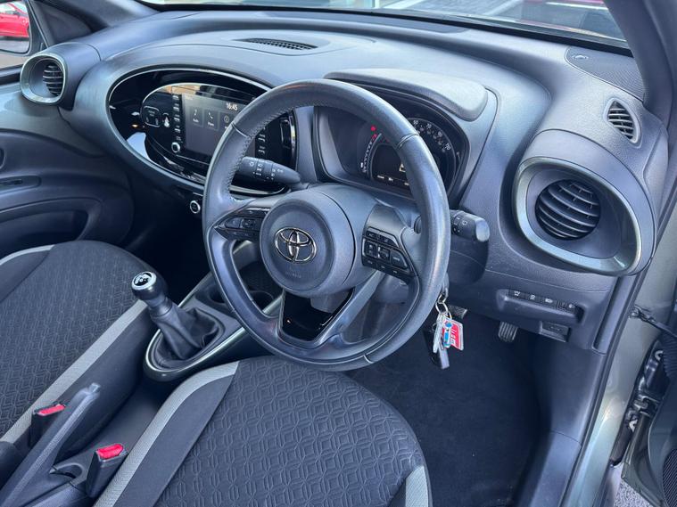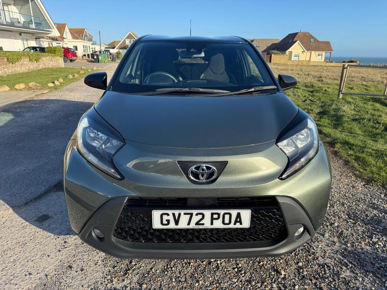 This 2023 Toyota Aygo X VVT-i Edge is a Toyota manufacturer approved vehicle with a full dealership service history, having last been serviced at 18, 723 miles on 23rd September 2025, and benefits from a 12 month warranty and 12 months MOT provided on purchase, having had only one owner from new. This Euro 6 compliant 1.0L petrol model is equipped with Intelligent Adaptive Cruise Control, a reversing camera, Toyota Safety Sense, auto headlights, and automatic air conditioning.