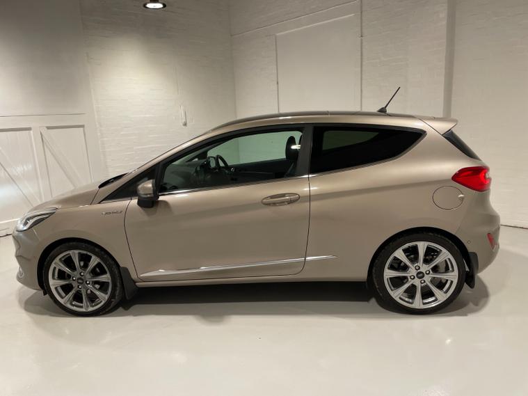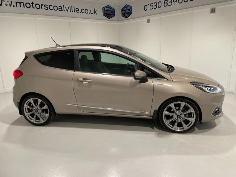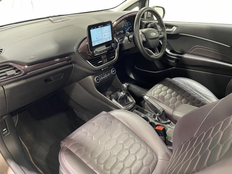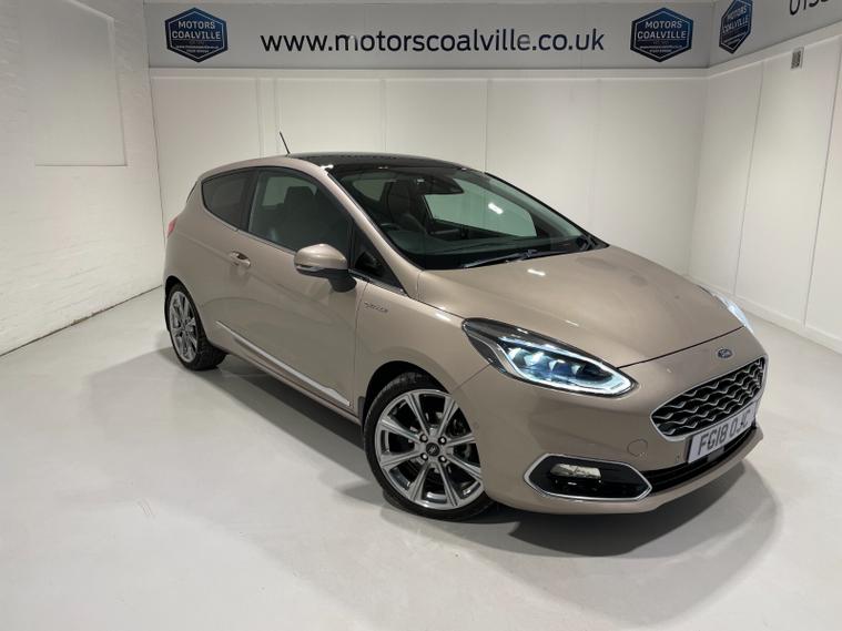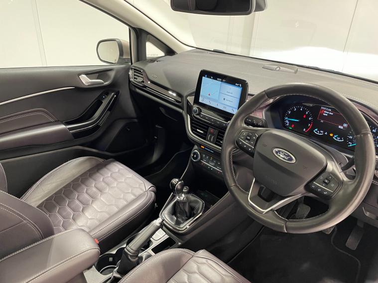 2018 18 Reg Fiesta 1.0 Turbo Ecoboost (140PS) 6 spd VIGNALE EDITION 3 dr. Milano Grigio, Vignale Black LEATHER interior with heated seats and heated steering wheel, SYNC 3 DAB SATELLITE NAVIGATION with 8 inch touch screen, ACTIVE PARK ASSISTANCE PACK with FRONT PARKING SENSORS, REAR VIEW CAMERA, VIGNALE 18 inch 10 spoke ALLOYS, FULL LED Headlamps, DRIVERS ASSISTANCE PACK with AUTONOMOUS EMERGENCY BRAKING, Adaptive Cruise Control, KEYLESS ENTRY, B&O PREMIUM SOUND 360 degree sound with 675 watts of power amplifier and digital sound, EATC AIR CON, PRIVACY GLASS, Drivers Assistance features to include traffic sign recognition, auto high beam & driver alert, KEYLESS start with FORD power start button, auto light and rain sensing wipers, tyre pressure monitoring system, Thatcham alarm, NCAP Pack (lane-keeping alert & lane-keeping aid, speed limiter, rear seat belt minder, rear centre head restraint & auto-headlamps), front fog lamps with cornering lights, heated front screen, remote central locking, electric front windows, ESP, Hill start assist, 54, 345 miles (FG 18 OJC).