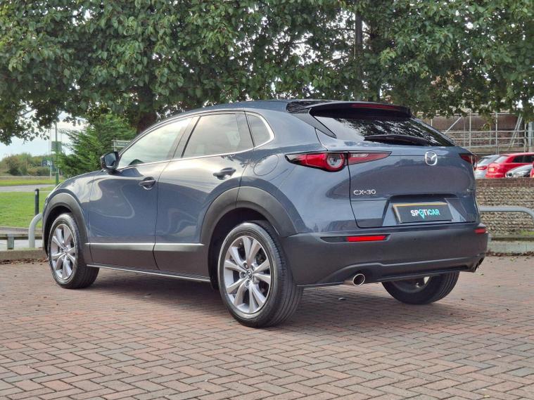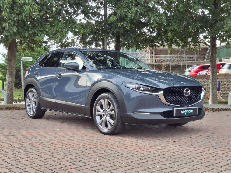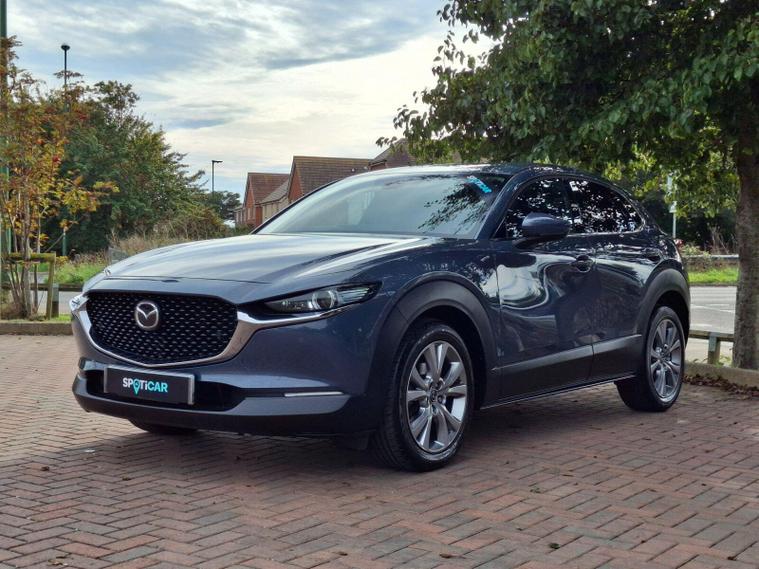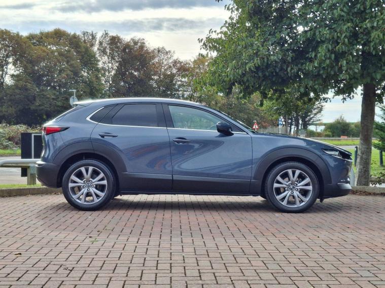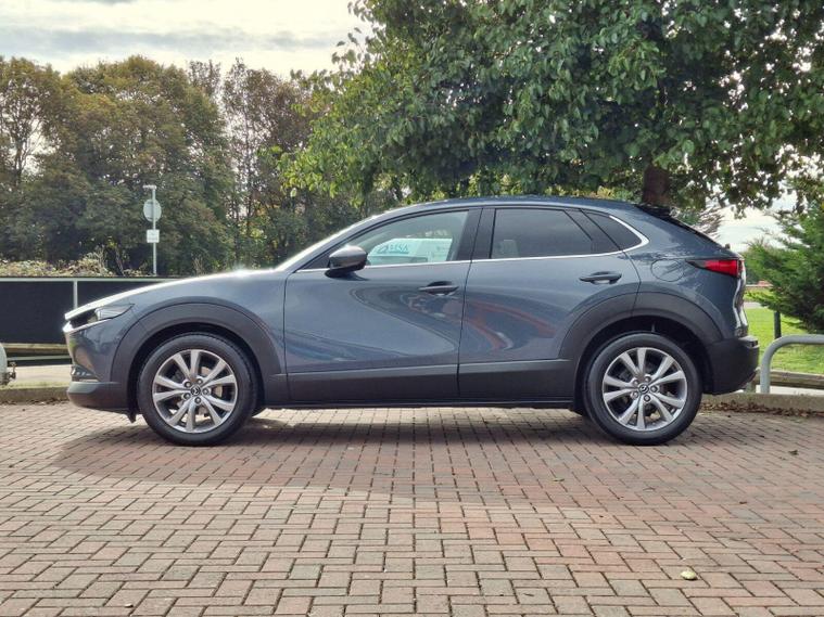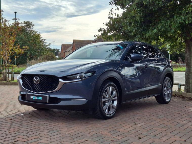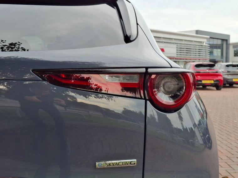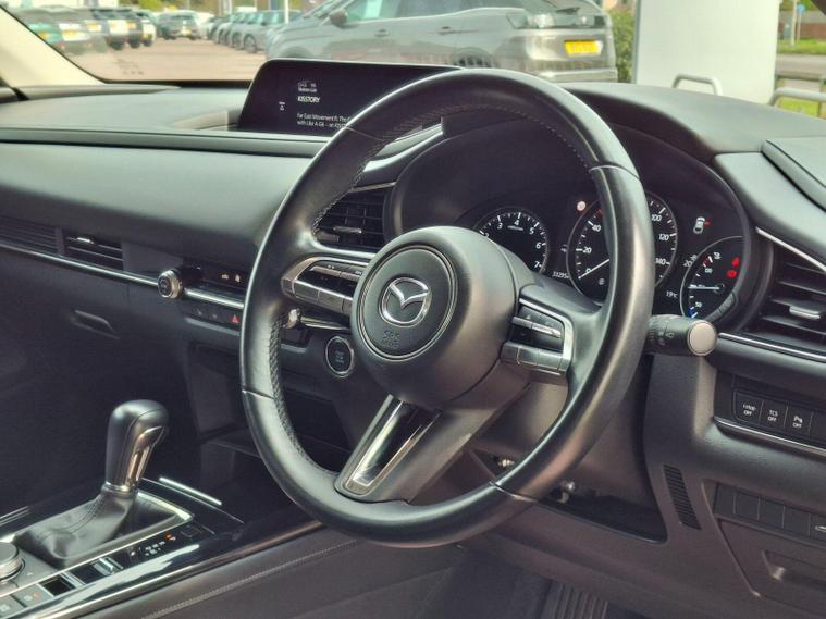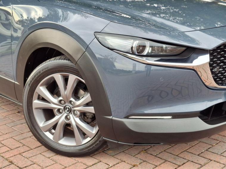 This 2022 Mazda CX-30 e-SKYACTIV G Sport Lux is a superb example, boasting a full service history and having had only one owner from new. This stylish SUV features a responsive 2.0L petrol engine, meeting Euro 6 emissions standards. The Sport Lux trim offers a refined driving experience, enhanced by notable features such as Blind Spot Monitoring with Rear Cross Traffic Alert, ensuring greater awareness of your surroundings. For comfort, enjoy the three stage heated front seats and dual zone climate controlled air conditioning with rear vents. Long journeys are made effortless with Mazda Radar Cruise Control, and the integrated Bluetooth system keeps you connected.