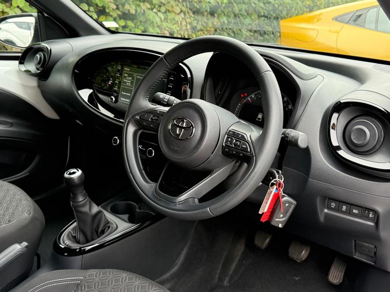 This 2023 Toyota Aygo X VVT-i Edge is a superb example, having had only one owner since new. This stylish compact car boasts a responsive 1.0L Petrol Engine and meets Euro 6 emissions standards. Inside, you'll find a host of convenient features including Bluetooth connectivity for seamless calls and music, auto headlights that adjust to light conditions, and a reversing camera to aid with parking. For added peace of mind and comfort on longer journeys, it comes equipped with Intelligent Adaptive Cruise Control, accessible via the steering wheel, and is part of the comprehensive Toyota Safety Sense suite.